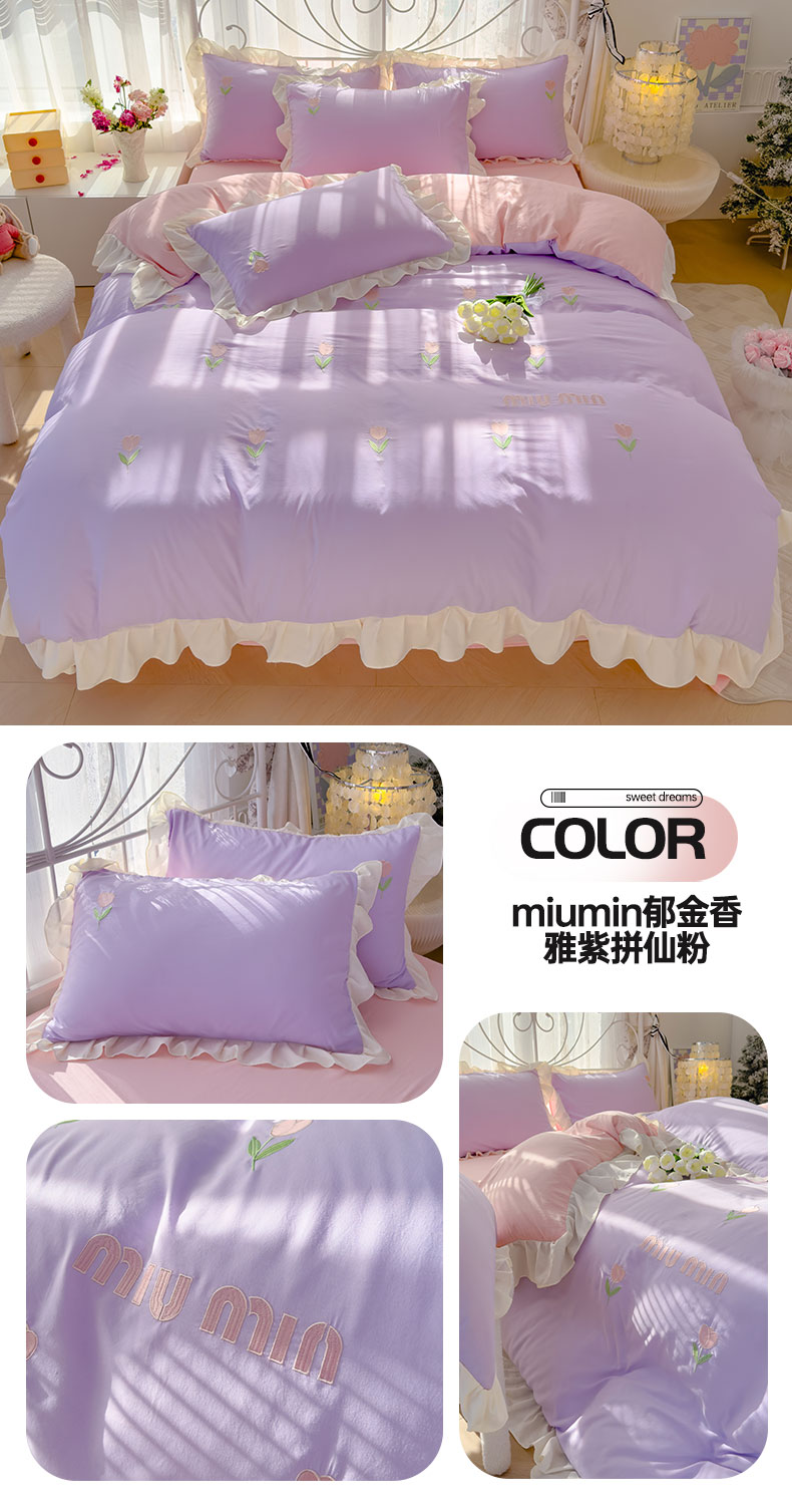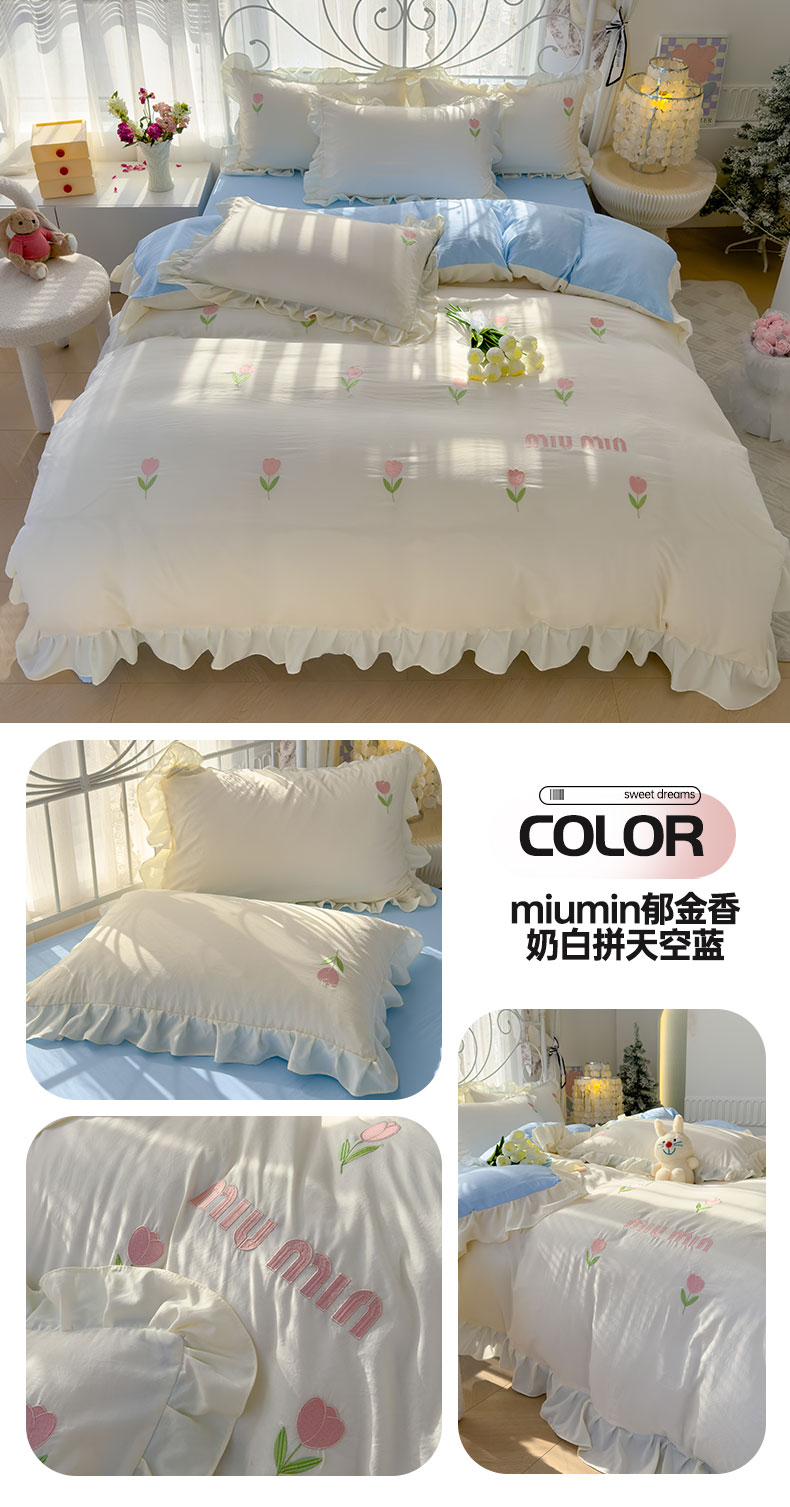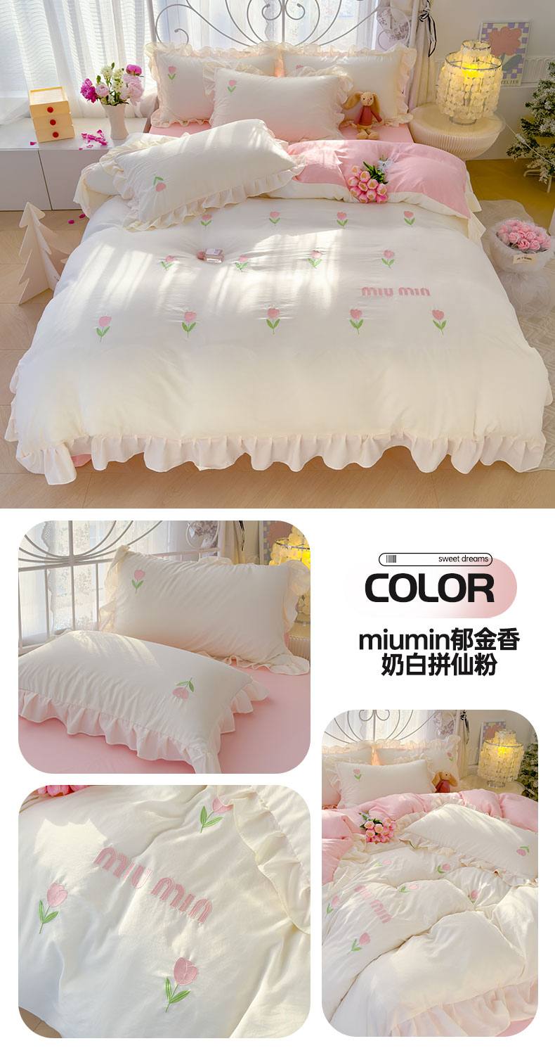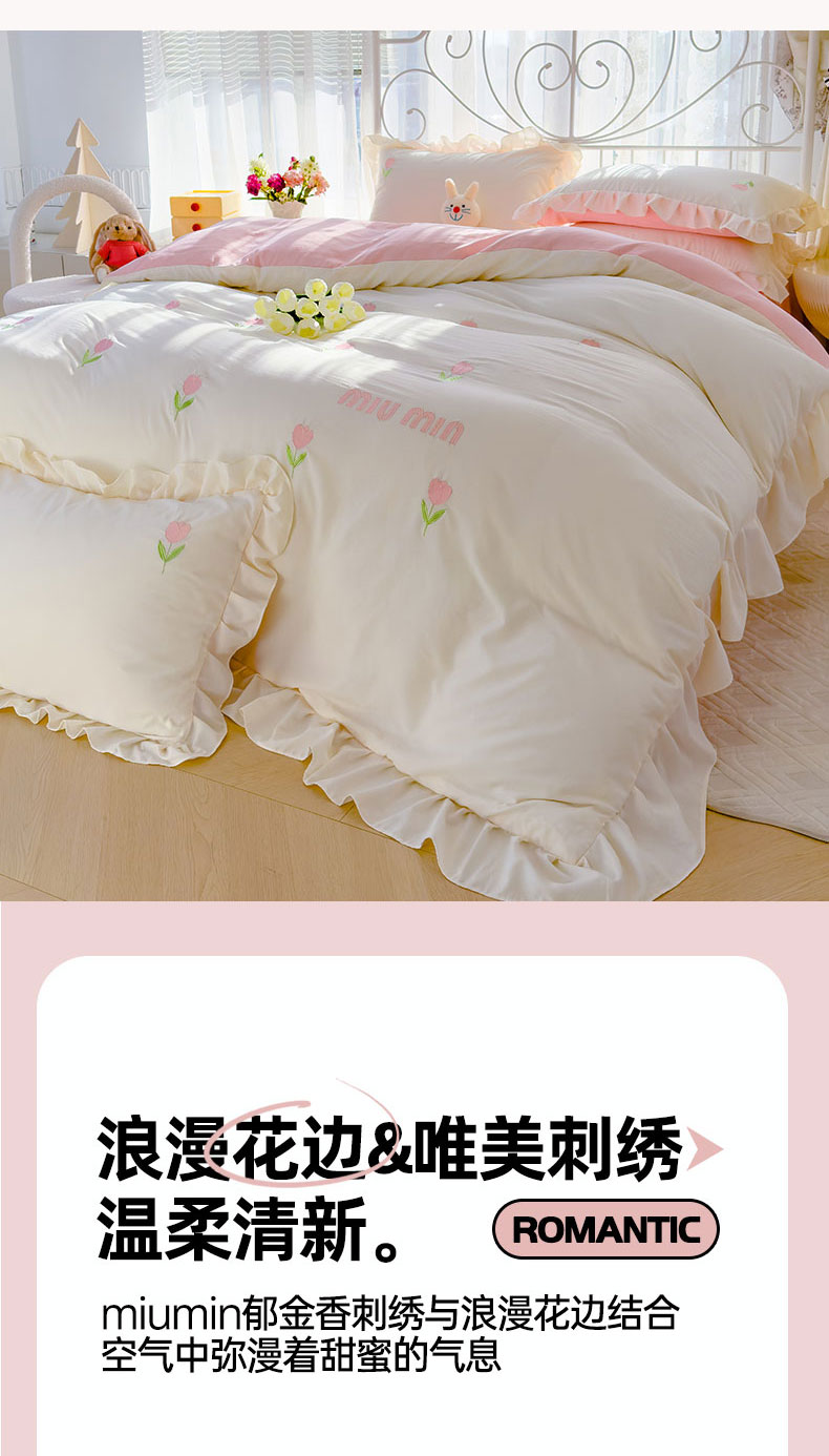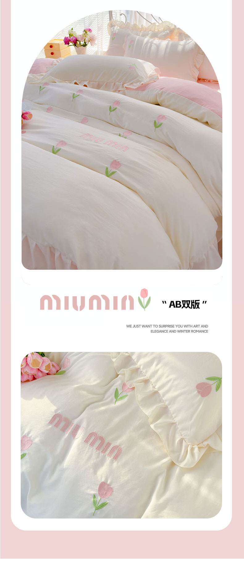 (总)灰鲸 2025新款水洗双层纱miumin郁金香刺绣四件套