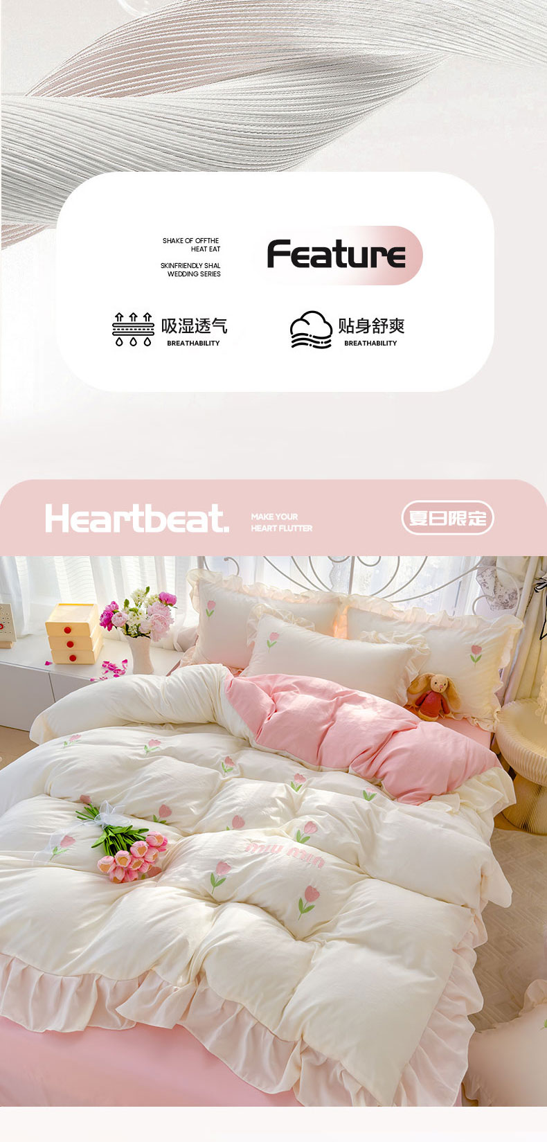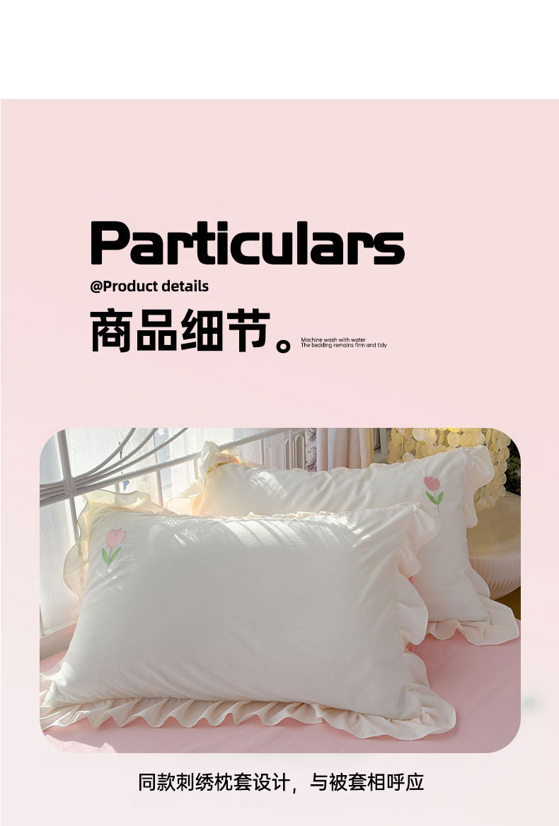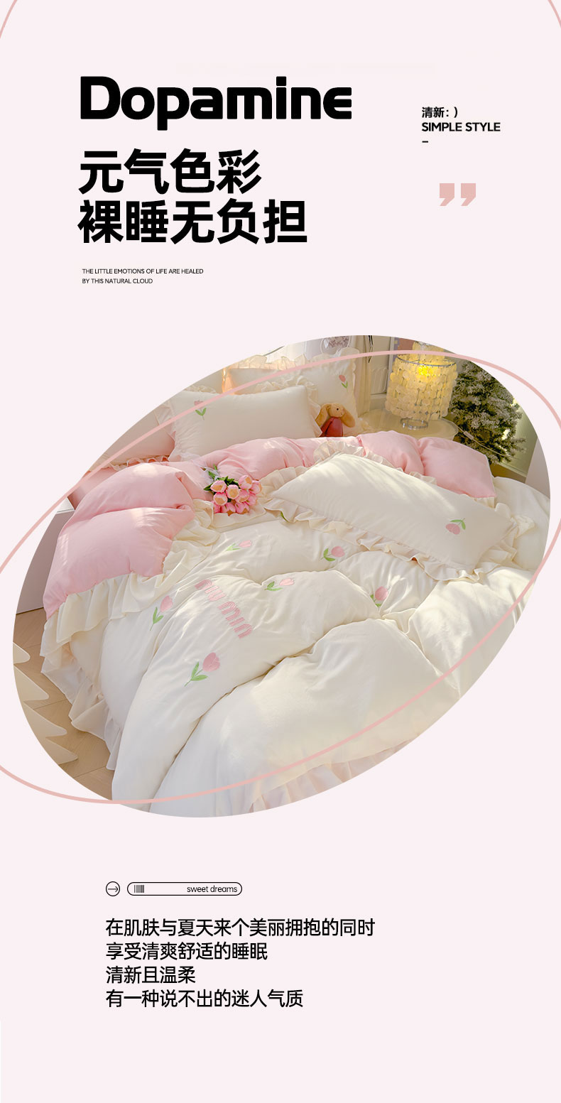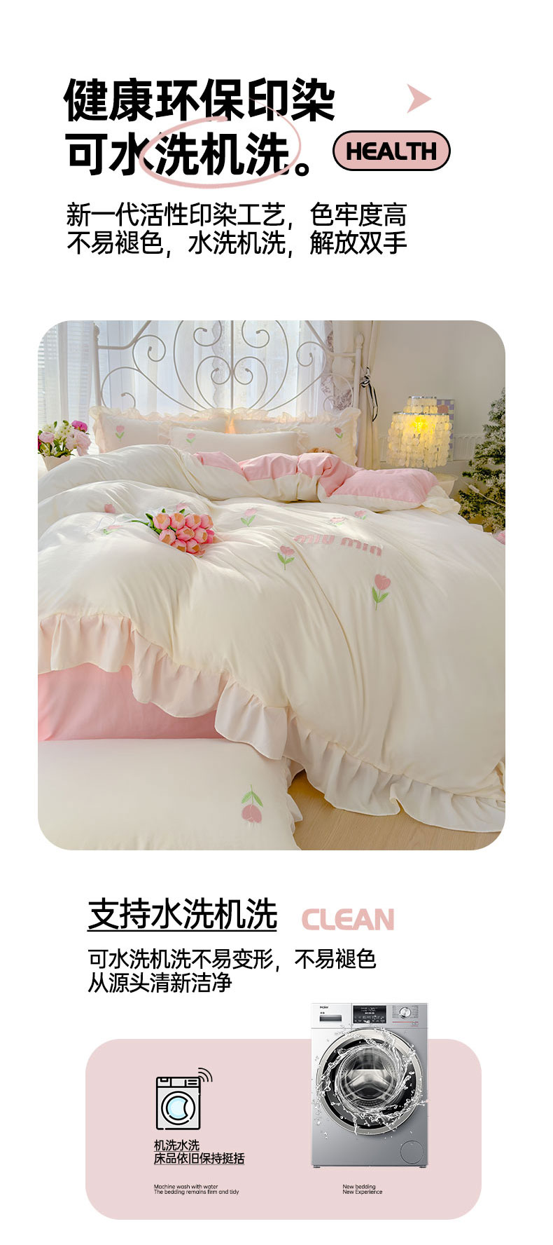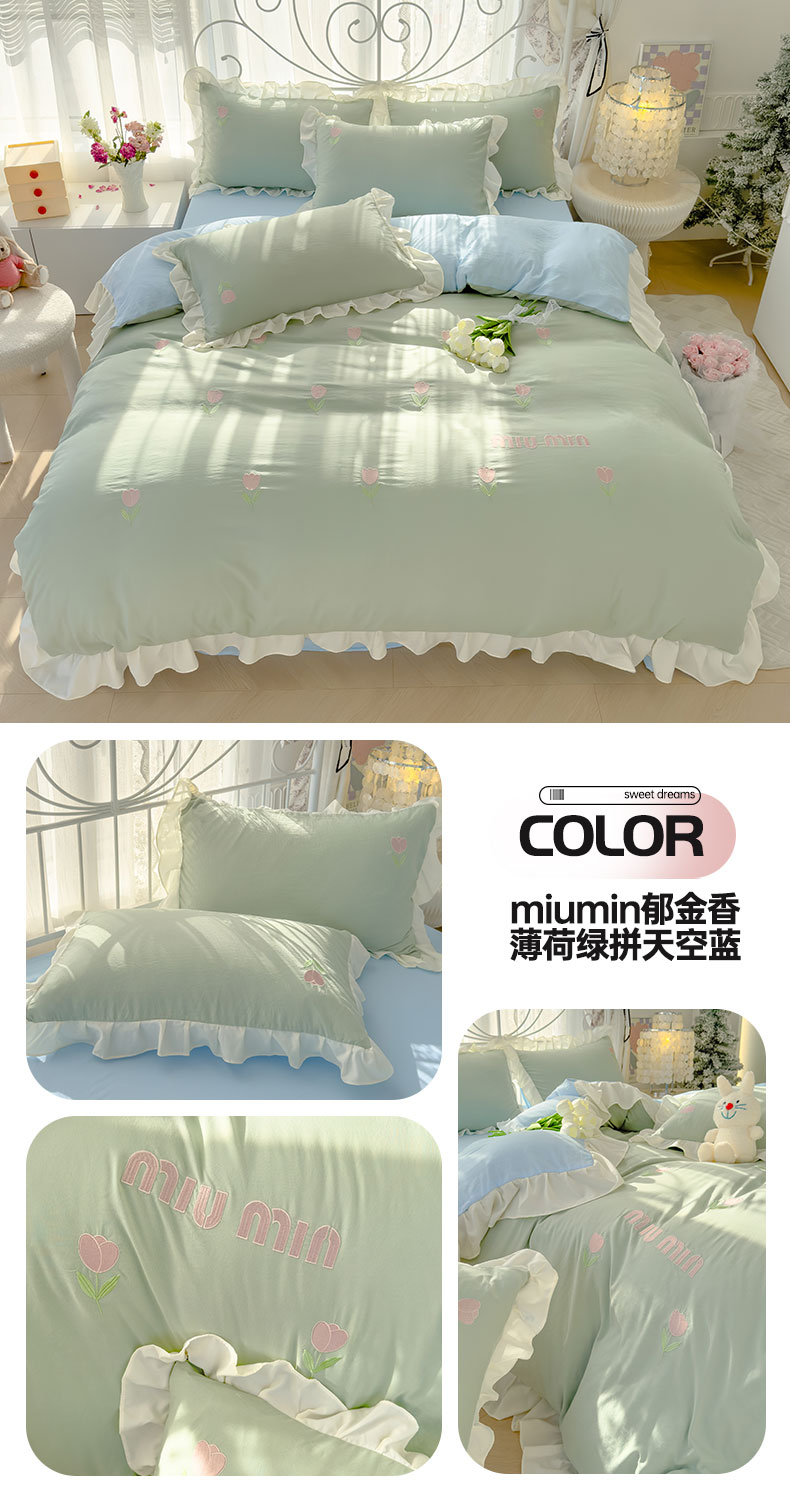 (总)灰鲸 2025新款水洗双层纱miumin郁金香刺绣四件套