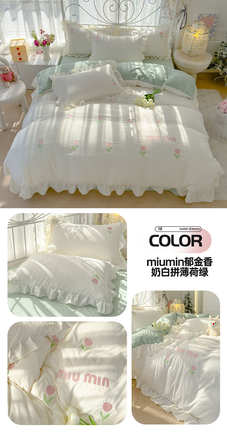 商品名称:(总)灰鲸 2025新款水洗双层纱miumin郁金香刺绣四件套