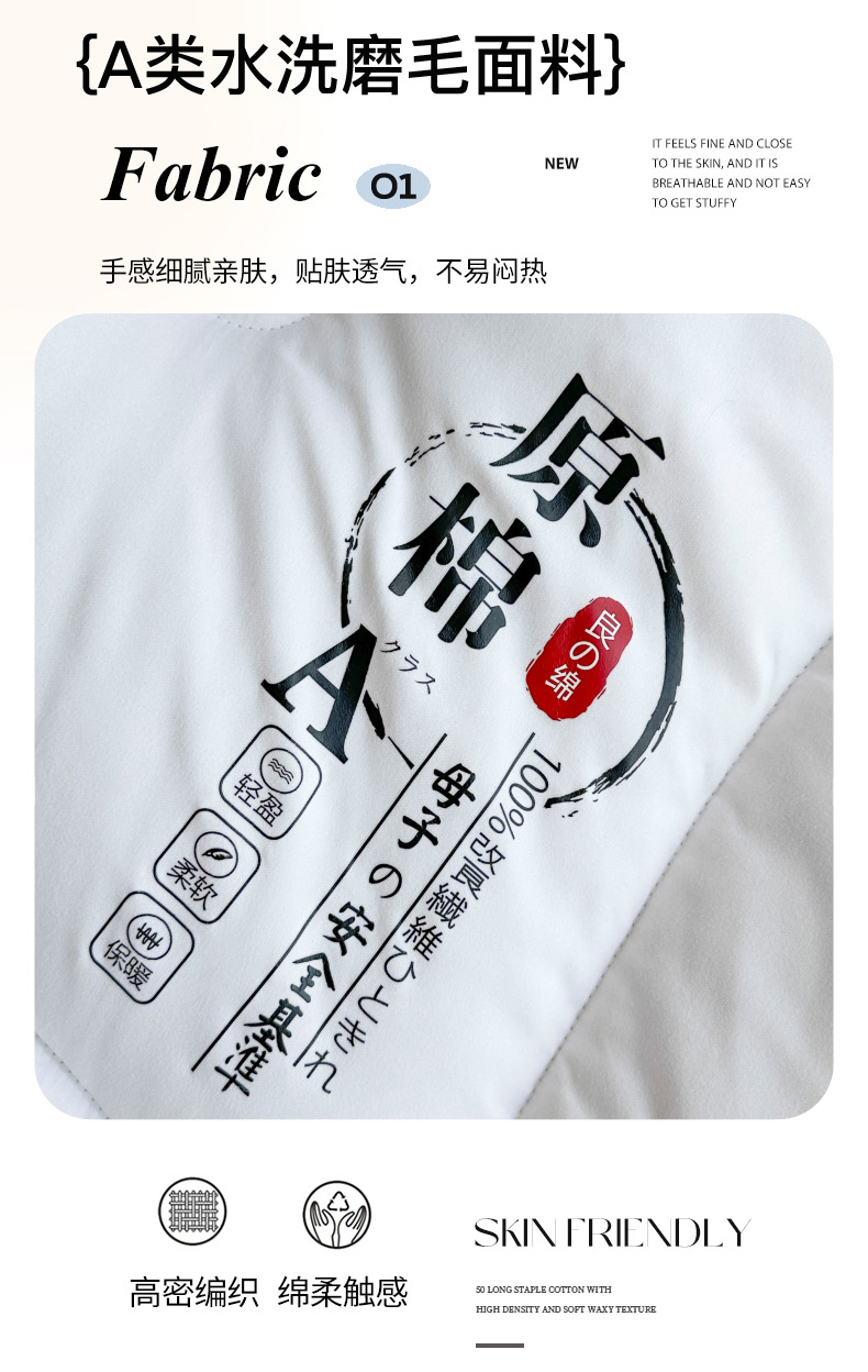 • 91家纺网 家纺一手货源 找家纺 招财狼家纺  2024新款水洗磨毛学生大豆被夏被春秋被多被芯被子 原棉 白色 91家纺网 家纺一手货源 找家纺 招财狼家纺  2024新款水洗磨毛学生大豆被夏被春秋被多被芯被子 原棉 白色