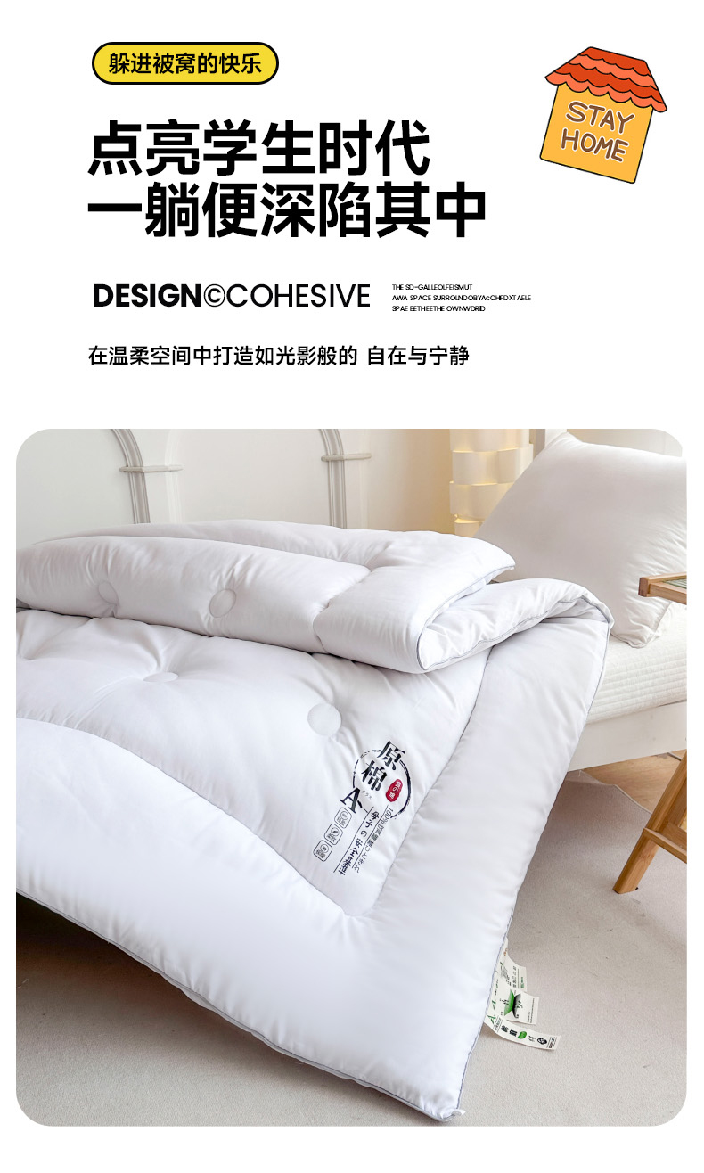 • 91家纺网 家纺一手货源 找家纺 招财狼家纺  2024新款水洗磨毛学生大豆被夏被春秋被多被芯被子 原棉 白色