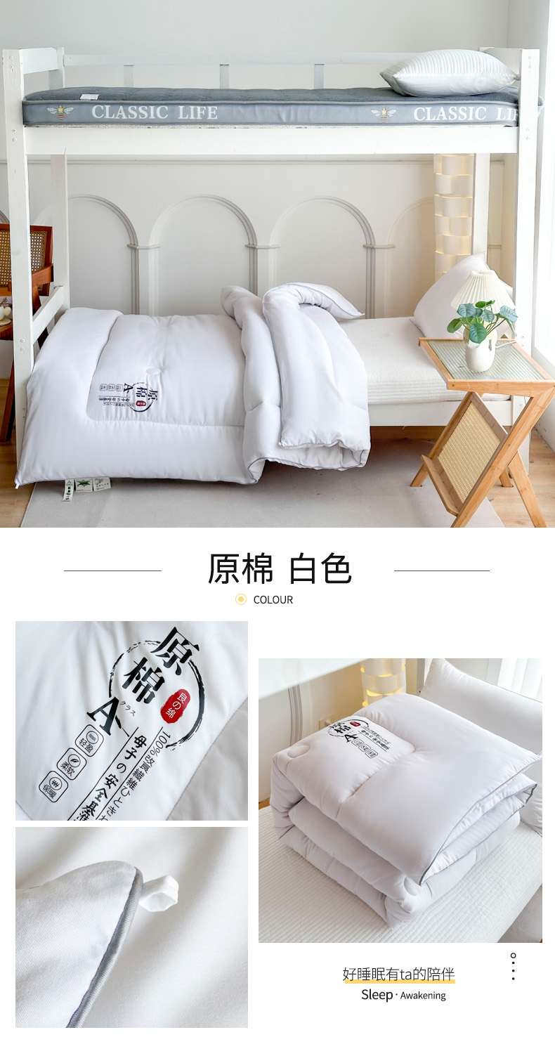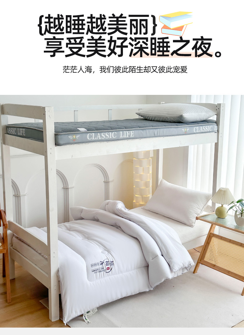 • 91家纺网 家纺一手货源 找家纺 (总)招财狼家纺 2025新款学生大礼包三件套被子床垫枕芯,白色,灰色