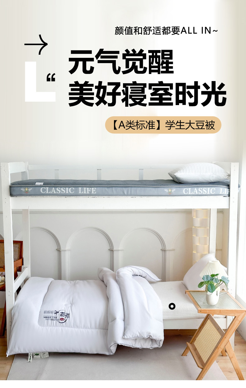 (总)招财狼家纺 2025新款学生大礼包三件套被子床垫枕芯,白色,灰色
