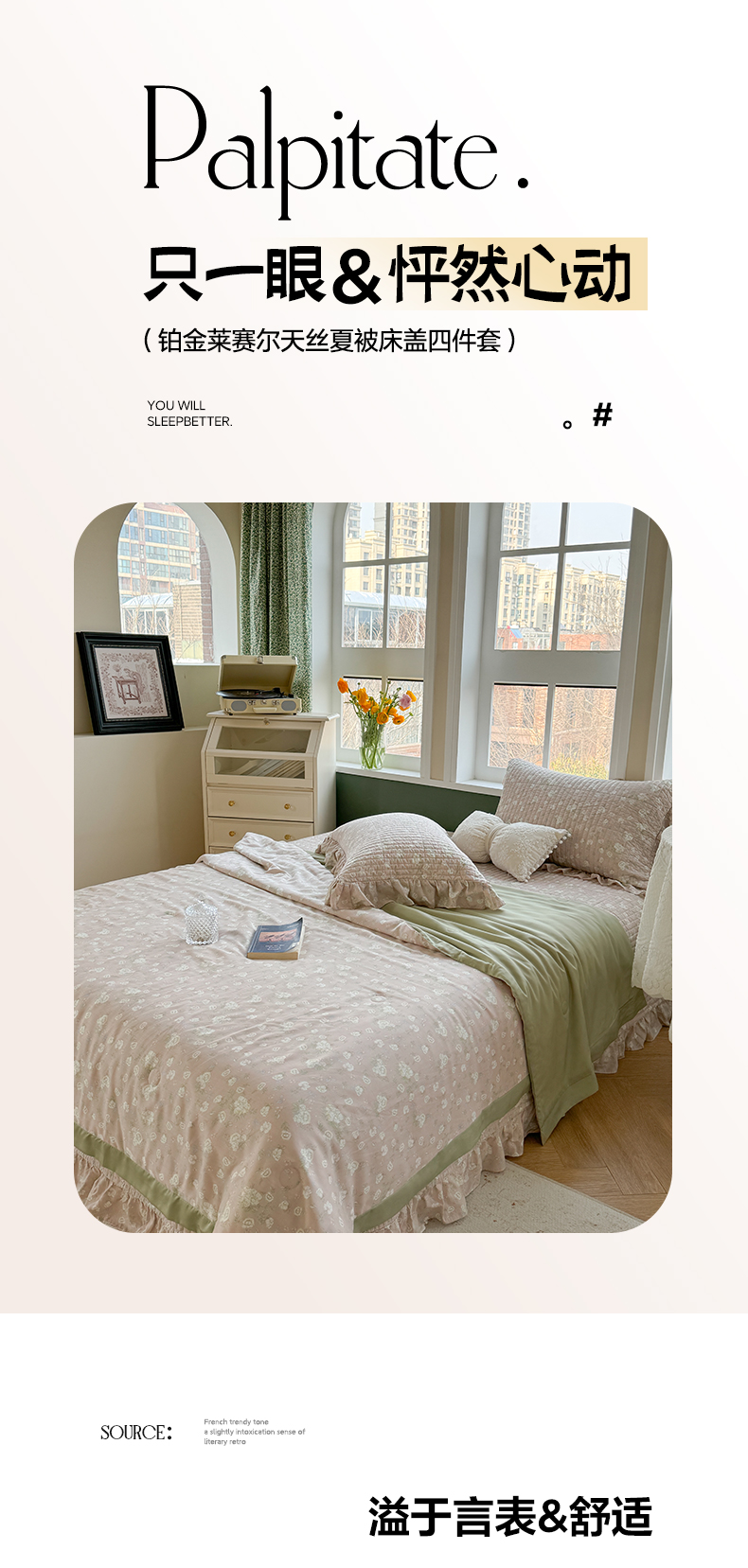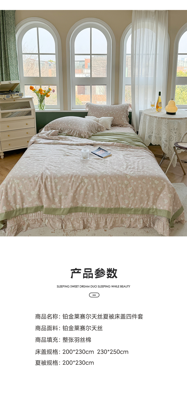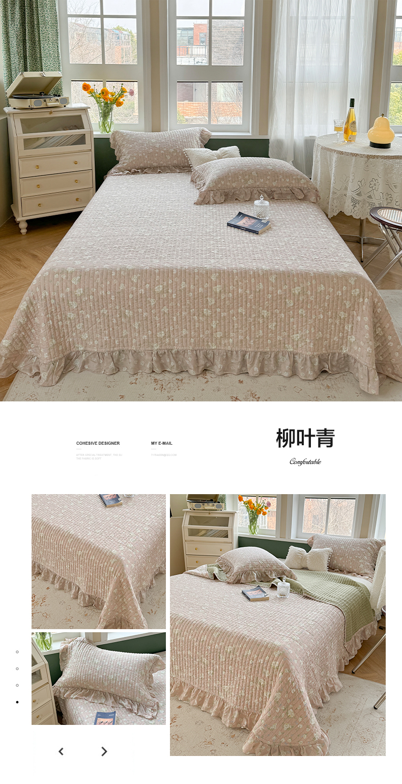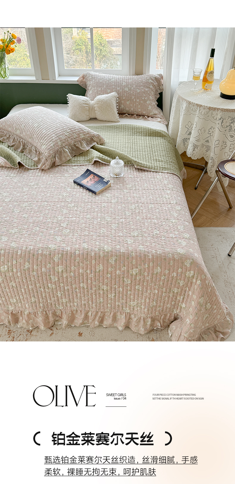 商品名称:诗黛尔 2024新款莱赛尔印花床盖三件套 柳叶青