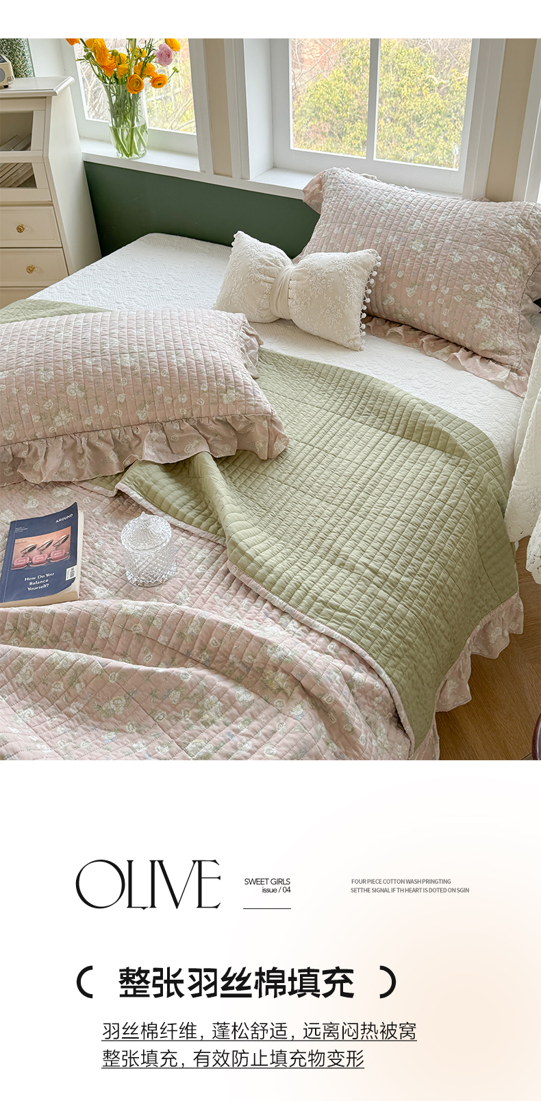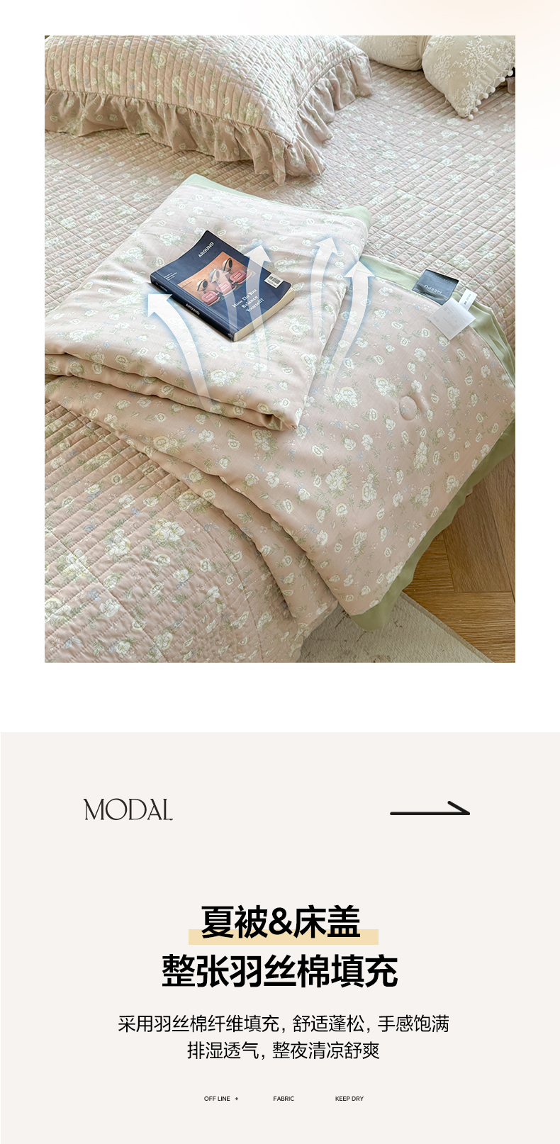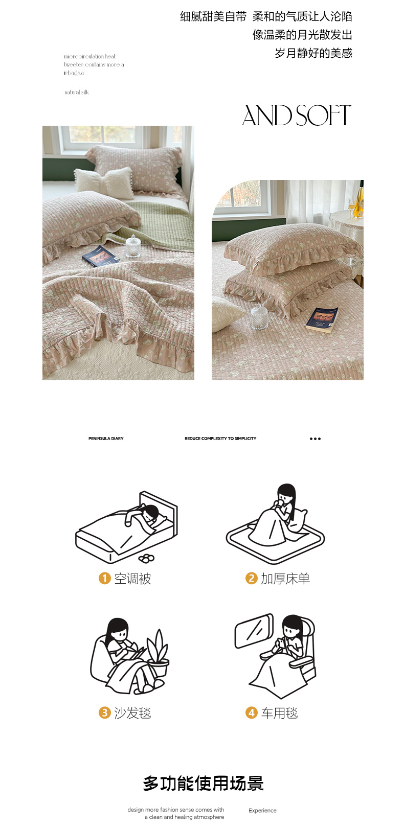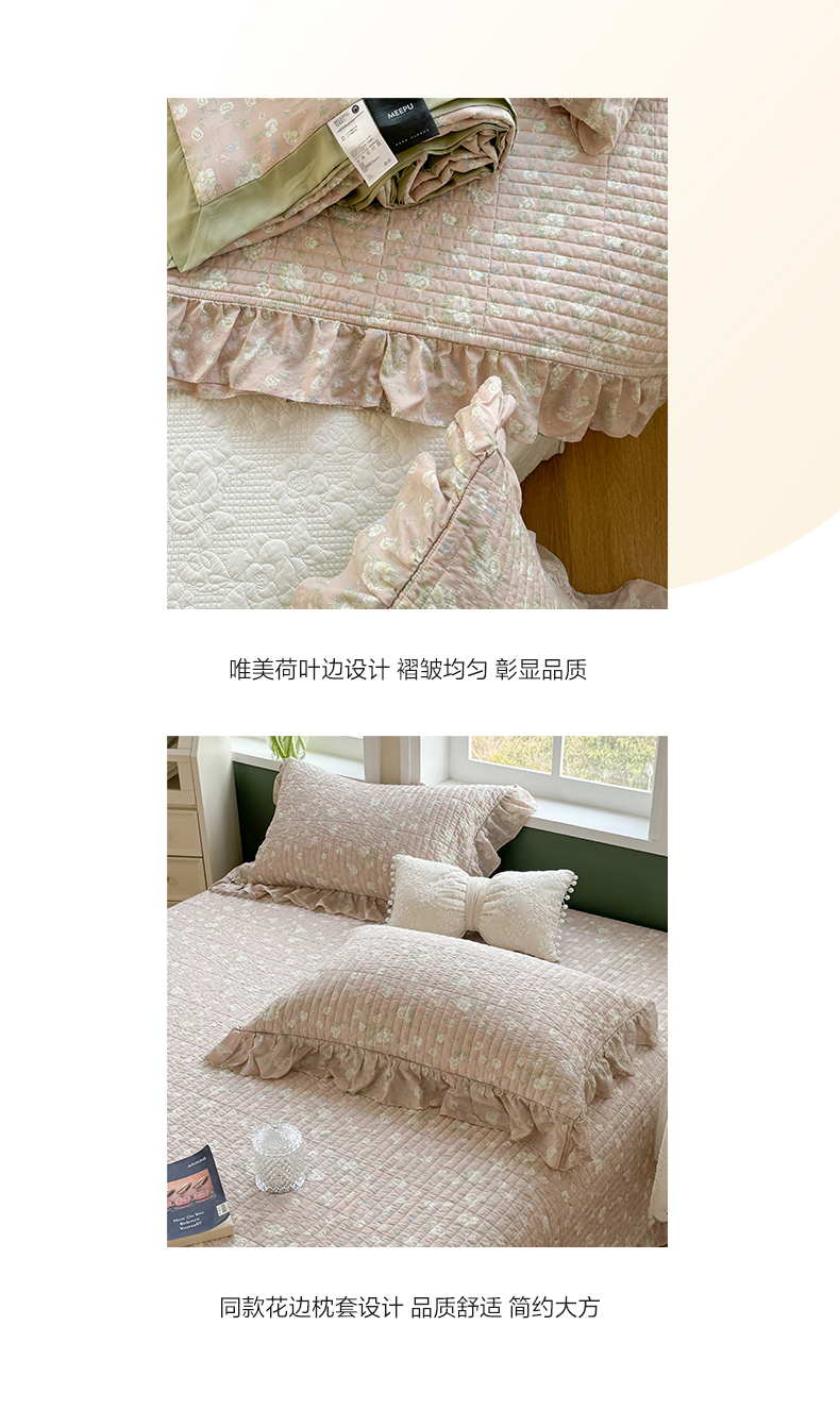 商品名称:诗黛尔 2024新款莱赛尔印花床盖三件套 柳叶青