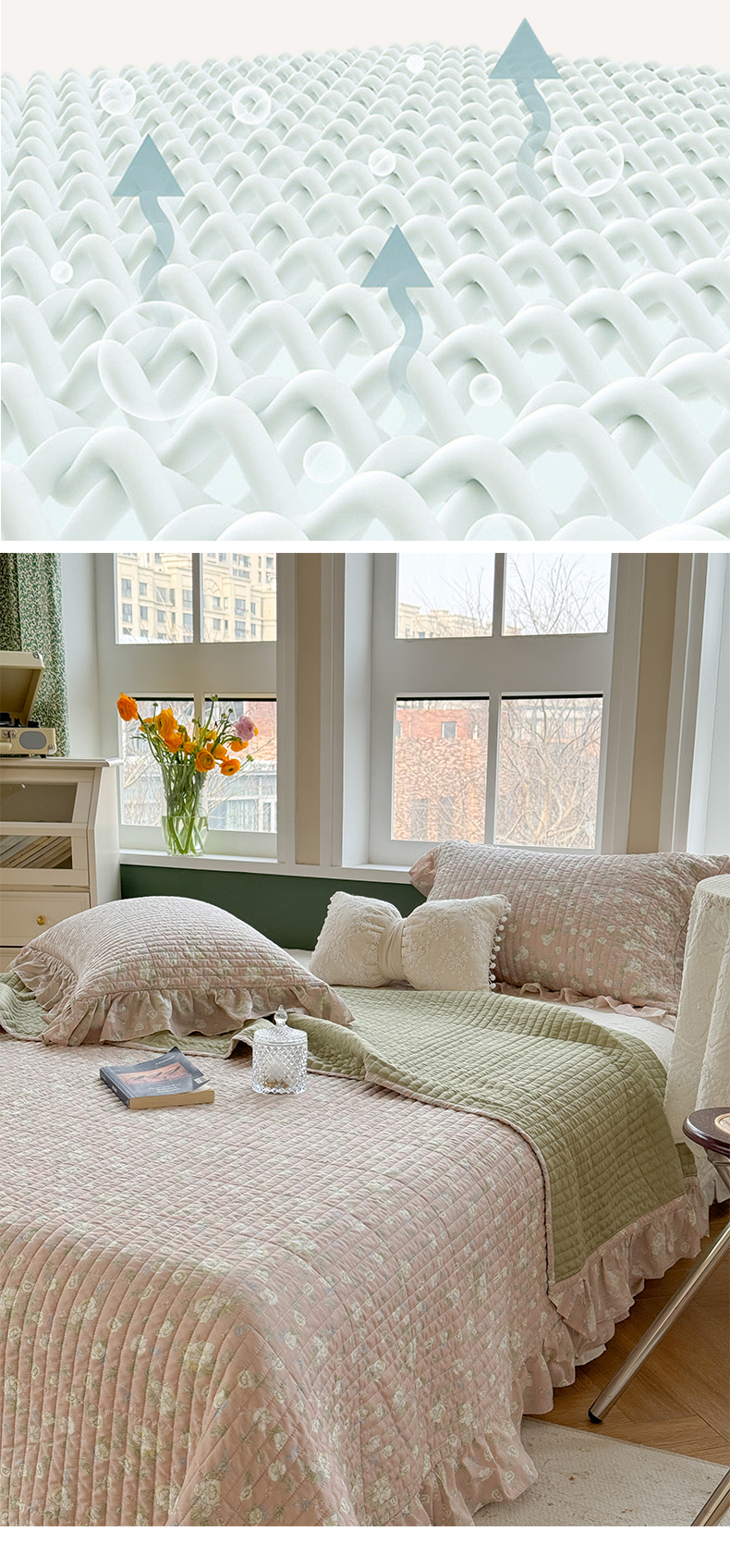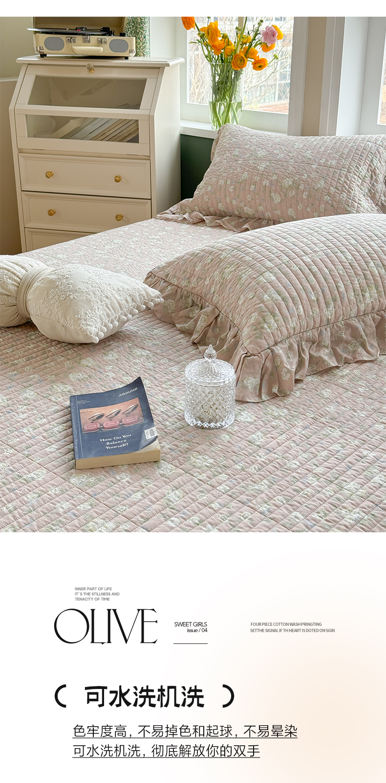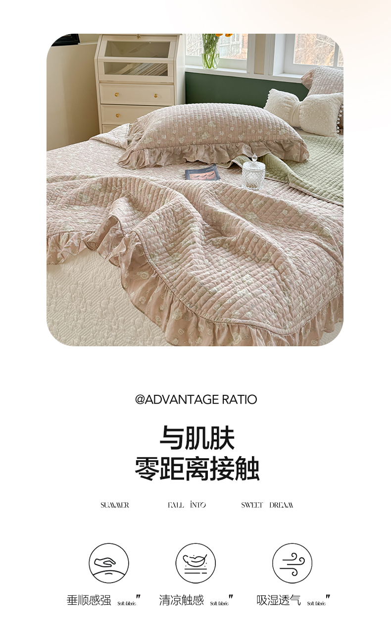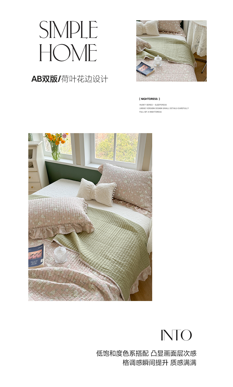 商品名称:诗黛尔 2024新款莱赛尔印花床盖三件套 柳叶青