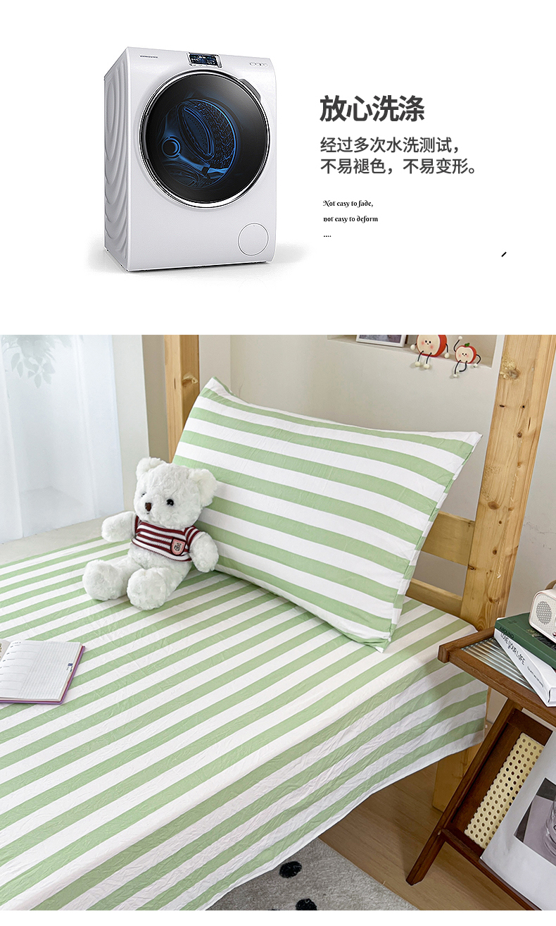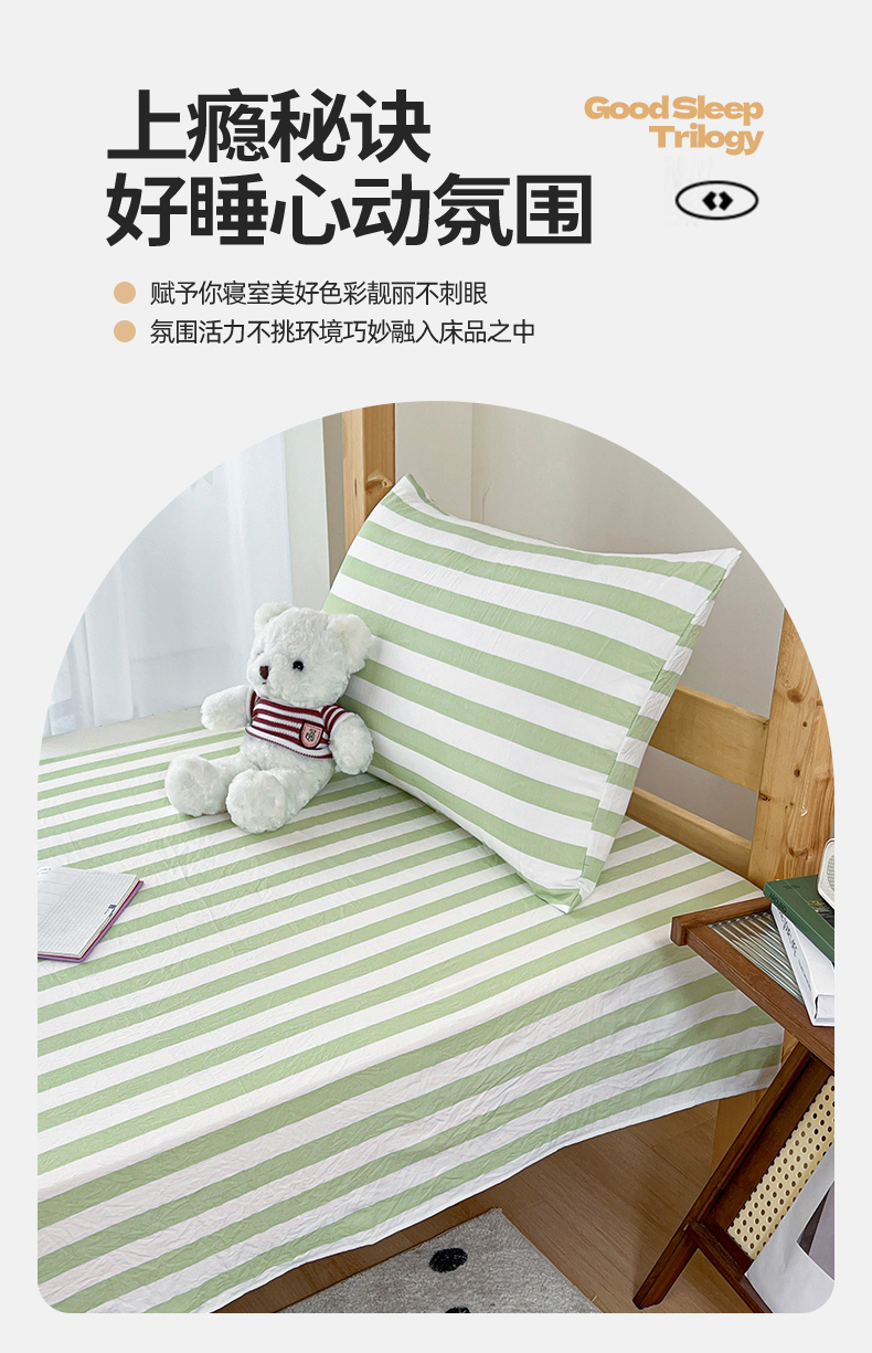 • 91家纺网 家纺一手货源 找家纺 多品 2024新款水洗棉皱皱纱学生宿舍单床单 松绿条