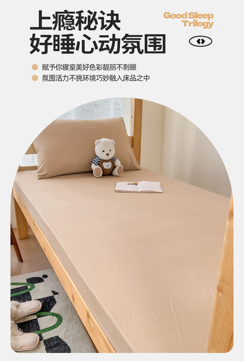 • 91家纺网 家纺一手货源 找家纺 多品 2024新款水洗棉皱皱纱学生宿舍单床笠 奶茶咖