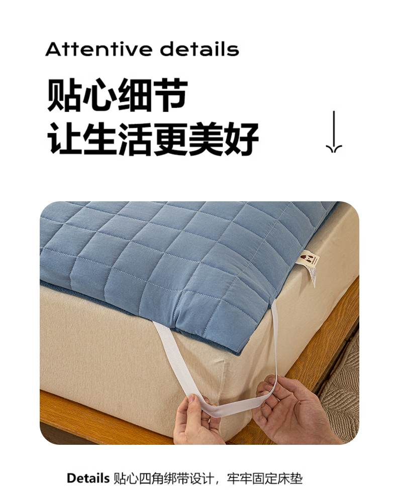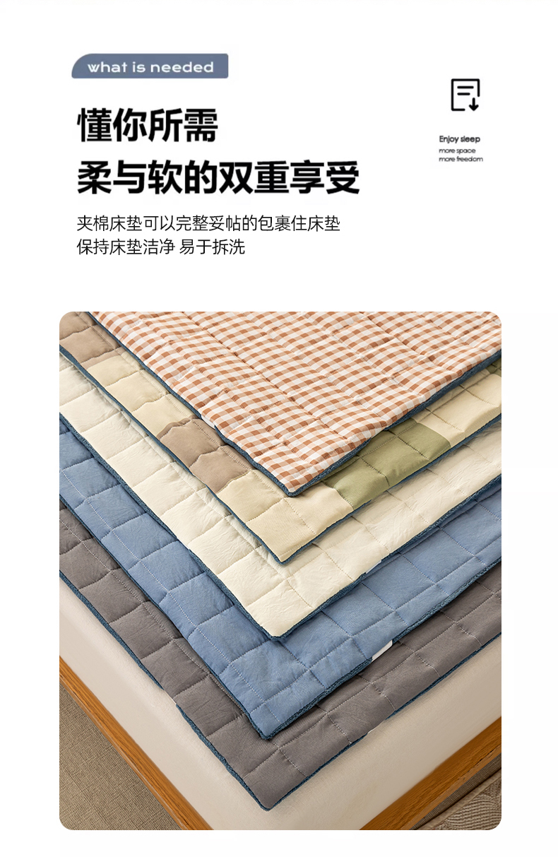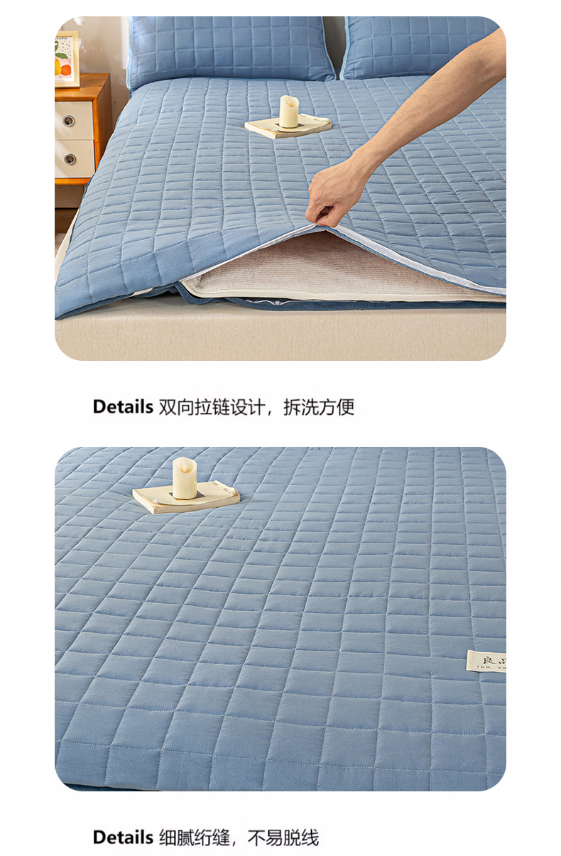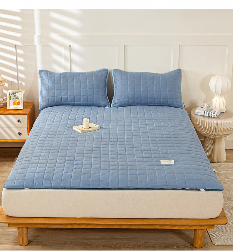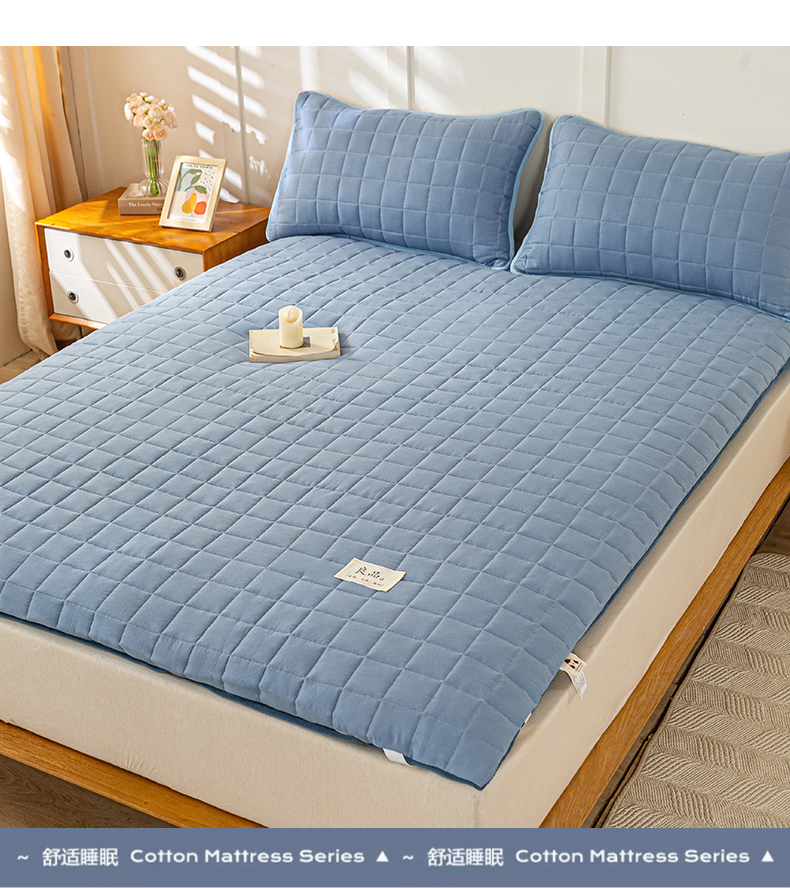 (总)萌飞2024新款全棉新疆棉花夹棉床垫薄款防滑垫 床褥垫被三件套-纯色,经典(咖),经典(灰),经典(白),经典(粉),经典(绿),经典(蓝)