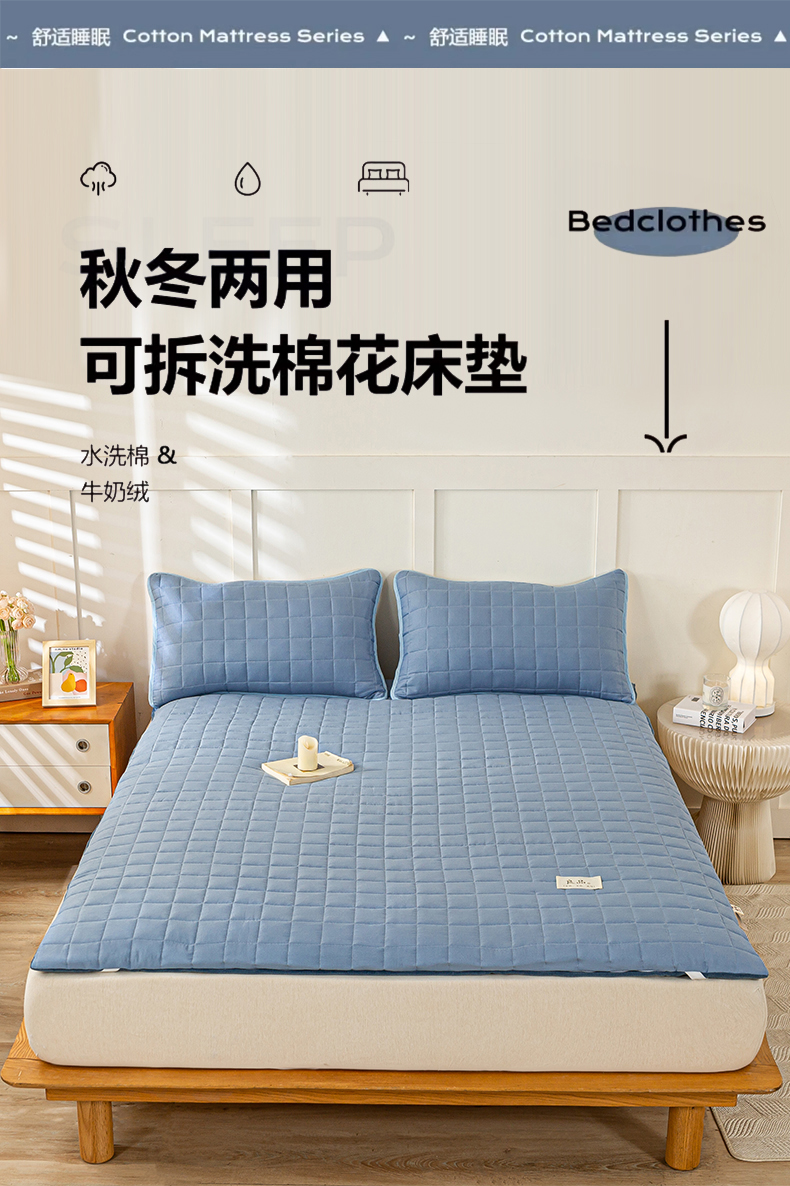 (总)萌飞 2024新款四季款秋冬两用可拆洗棉花学生床垫子牛奶绒褥子
