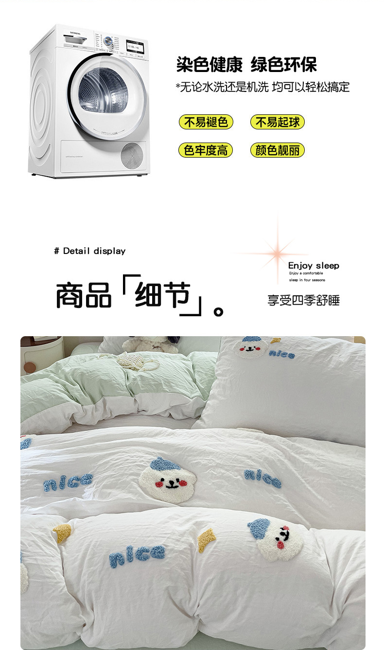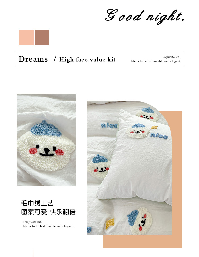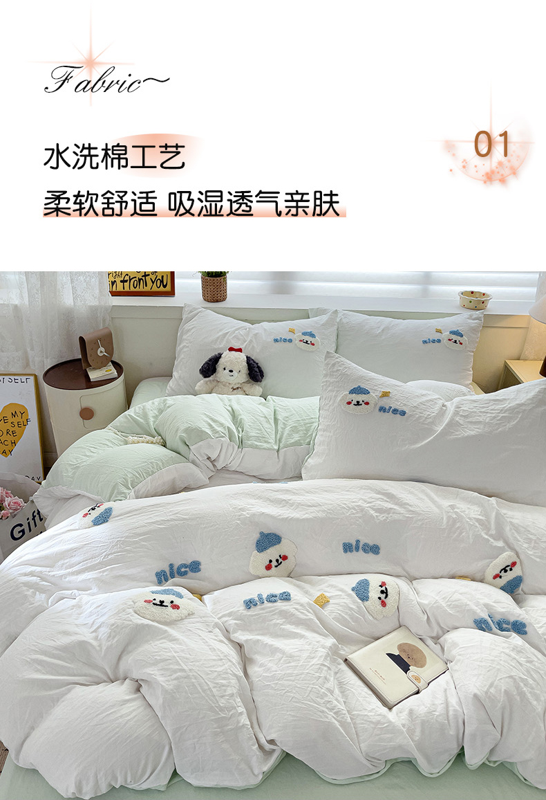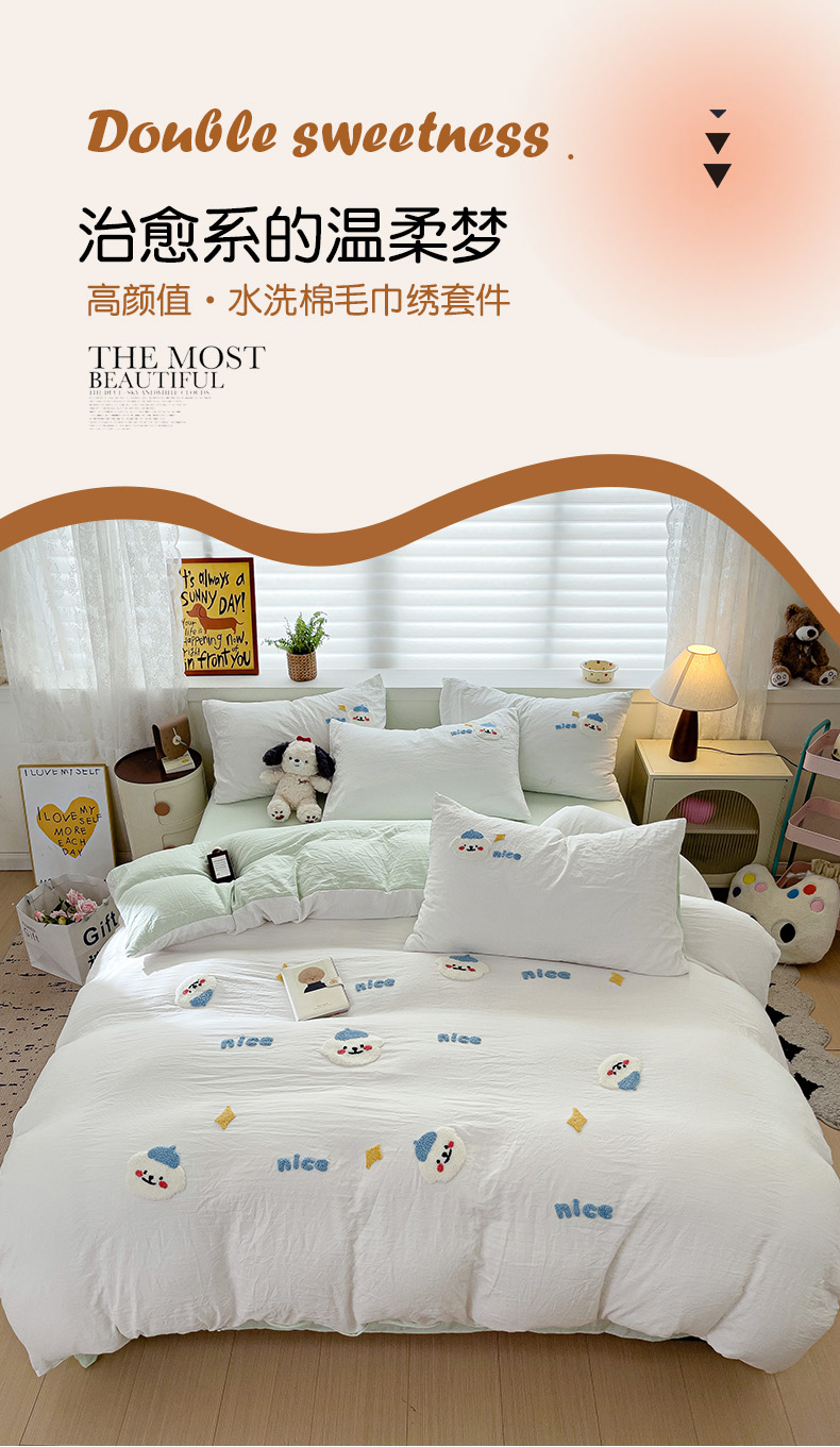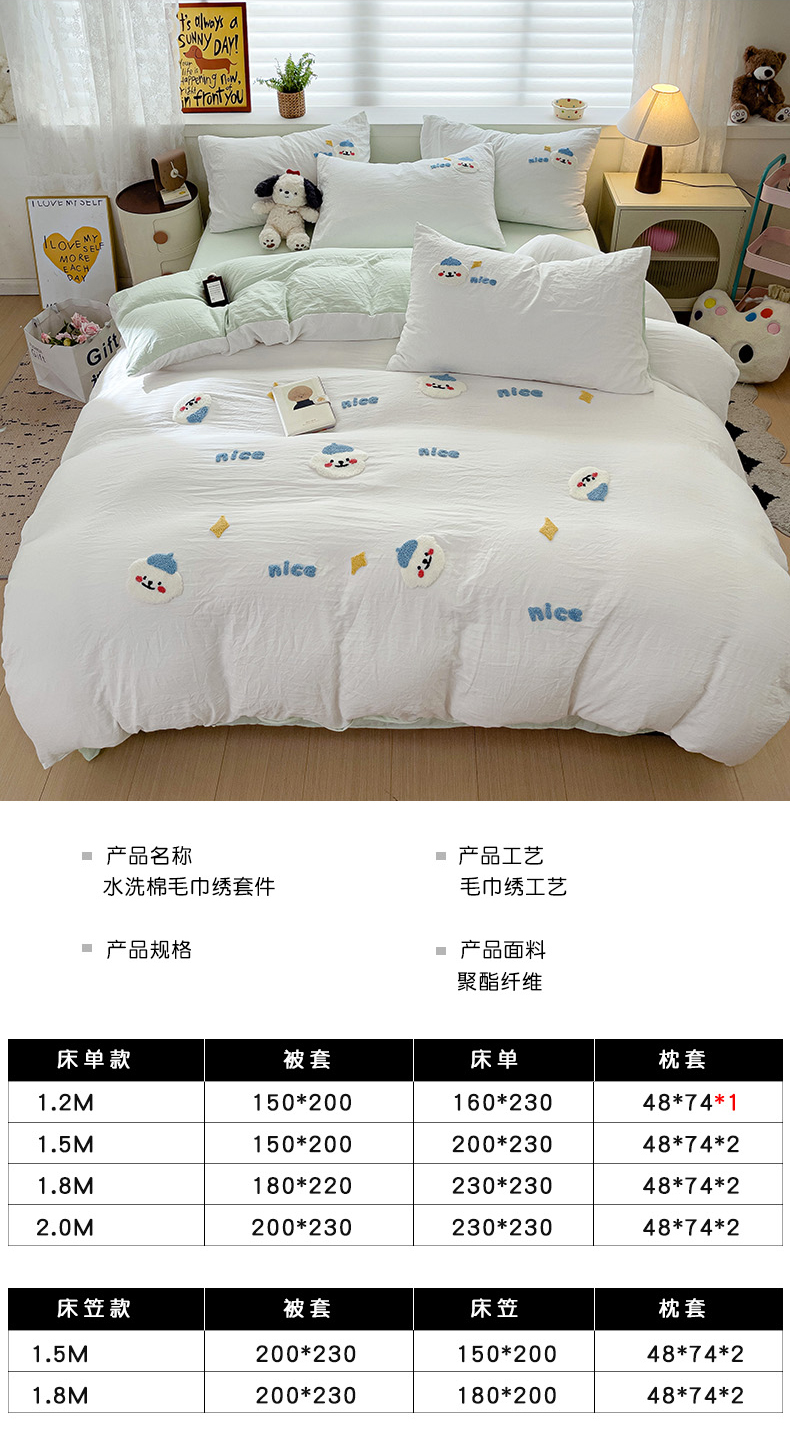 当前位置: 91家纺网 > 商品网购 > 床品套件 > 四件套 > 毛巾绣四件套 > 韩巢家纺 2024爆款四季通用超柔水洗棉毛巾绣四件套-哈哈狗系列(提供精美卖家秀) 哈哈狗白绿