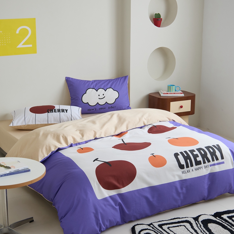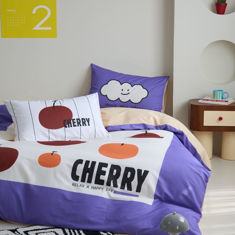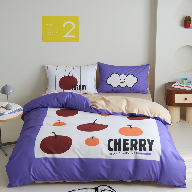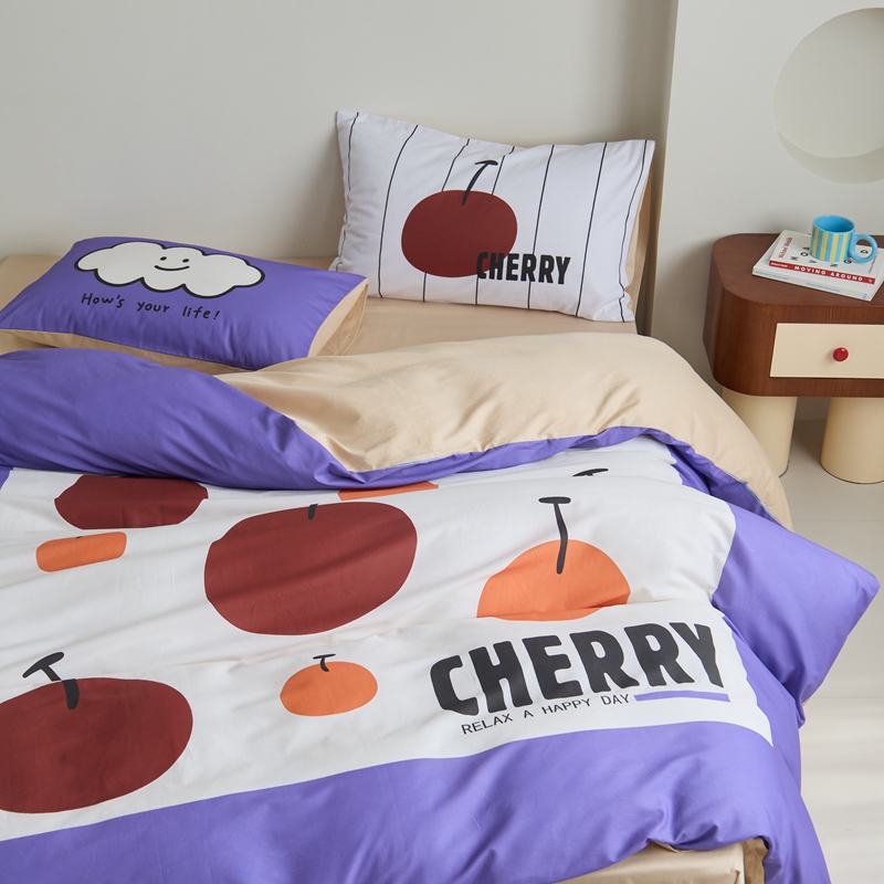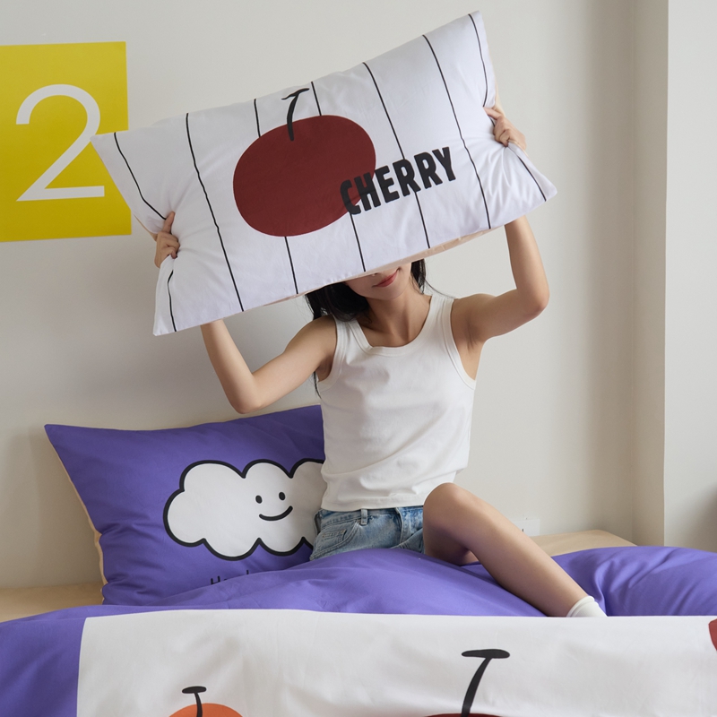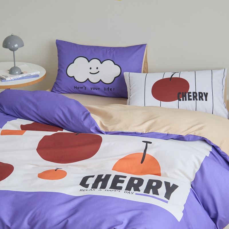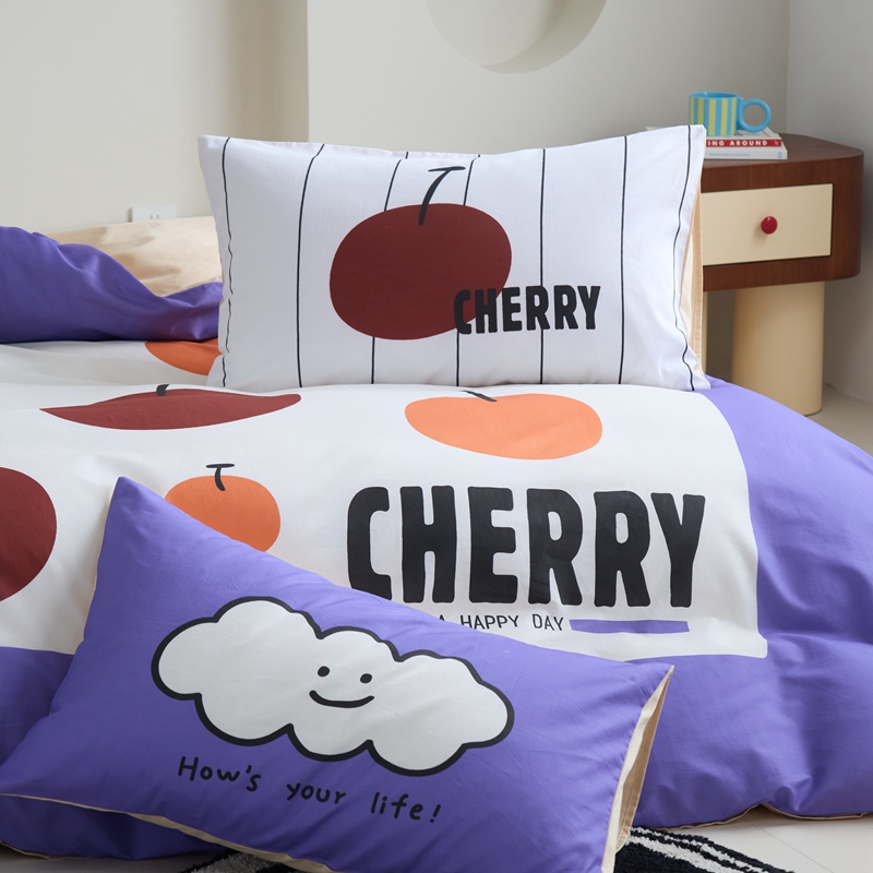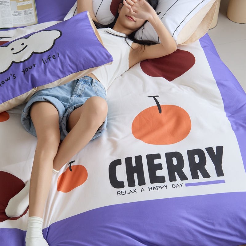 (总)原研家居 2023新款40支全棉13070印花四件套-野兽派系列,樱桃猫,公主猫,波浪猫,黑乖,蓝条狗,小花狗,竹叶熊,水果茶,波点苹果,生椰冰淇凌,青春