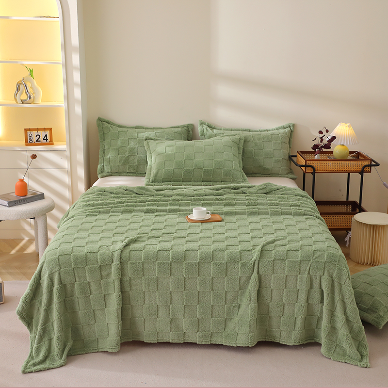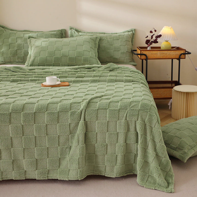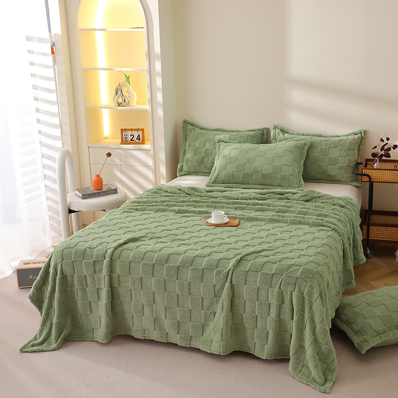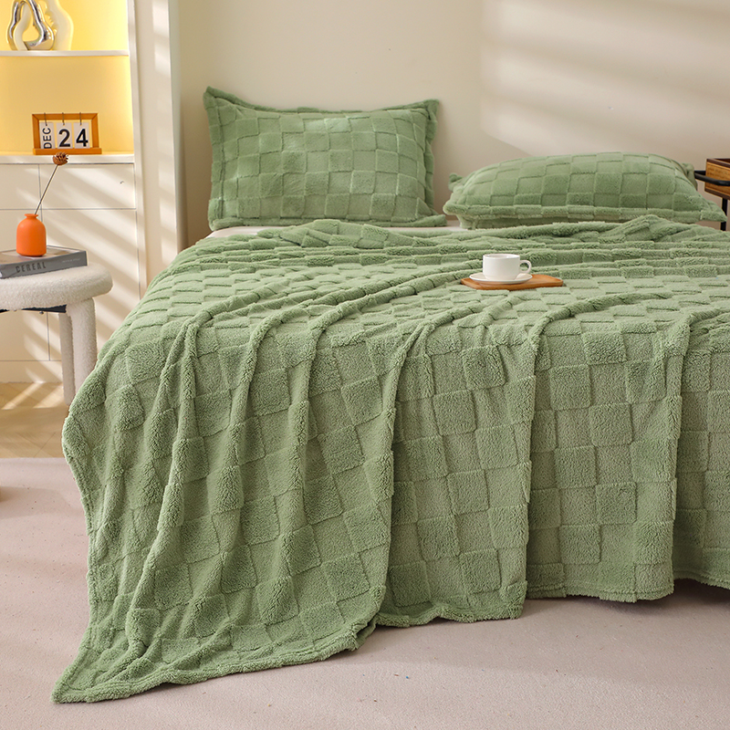 商品名称:芸锦豪 2024新款意大利面包格毛毯-卷边款 抹茶绿