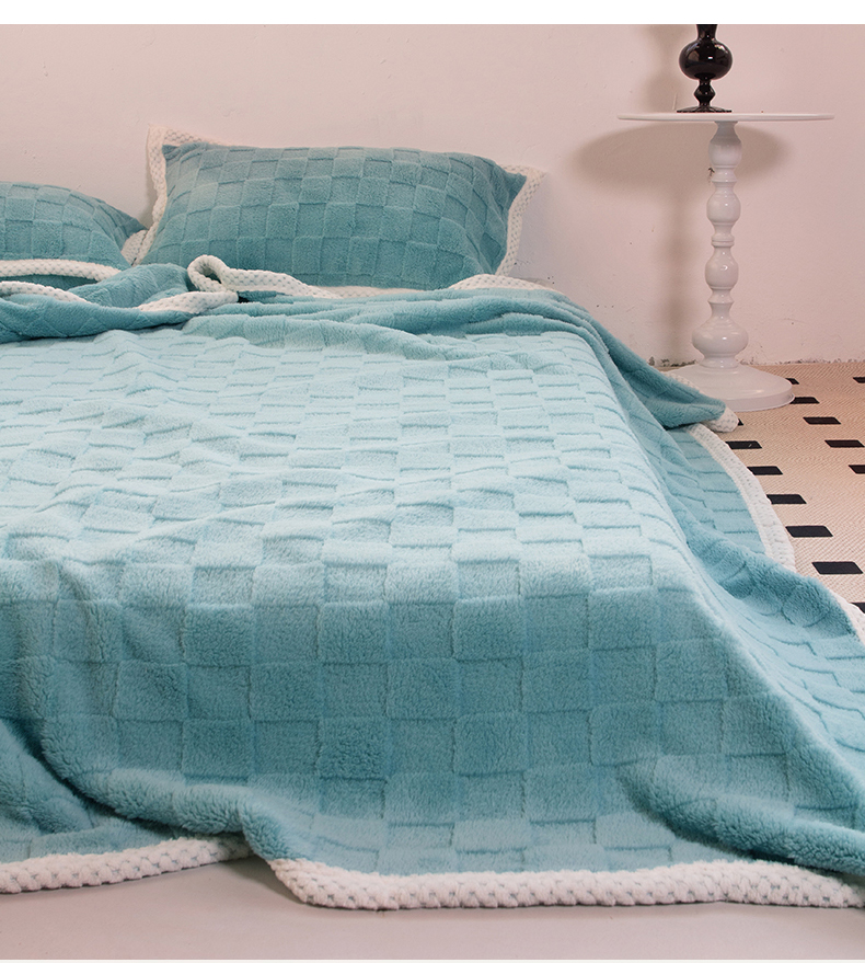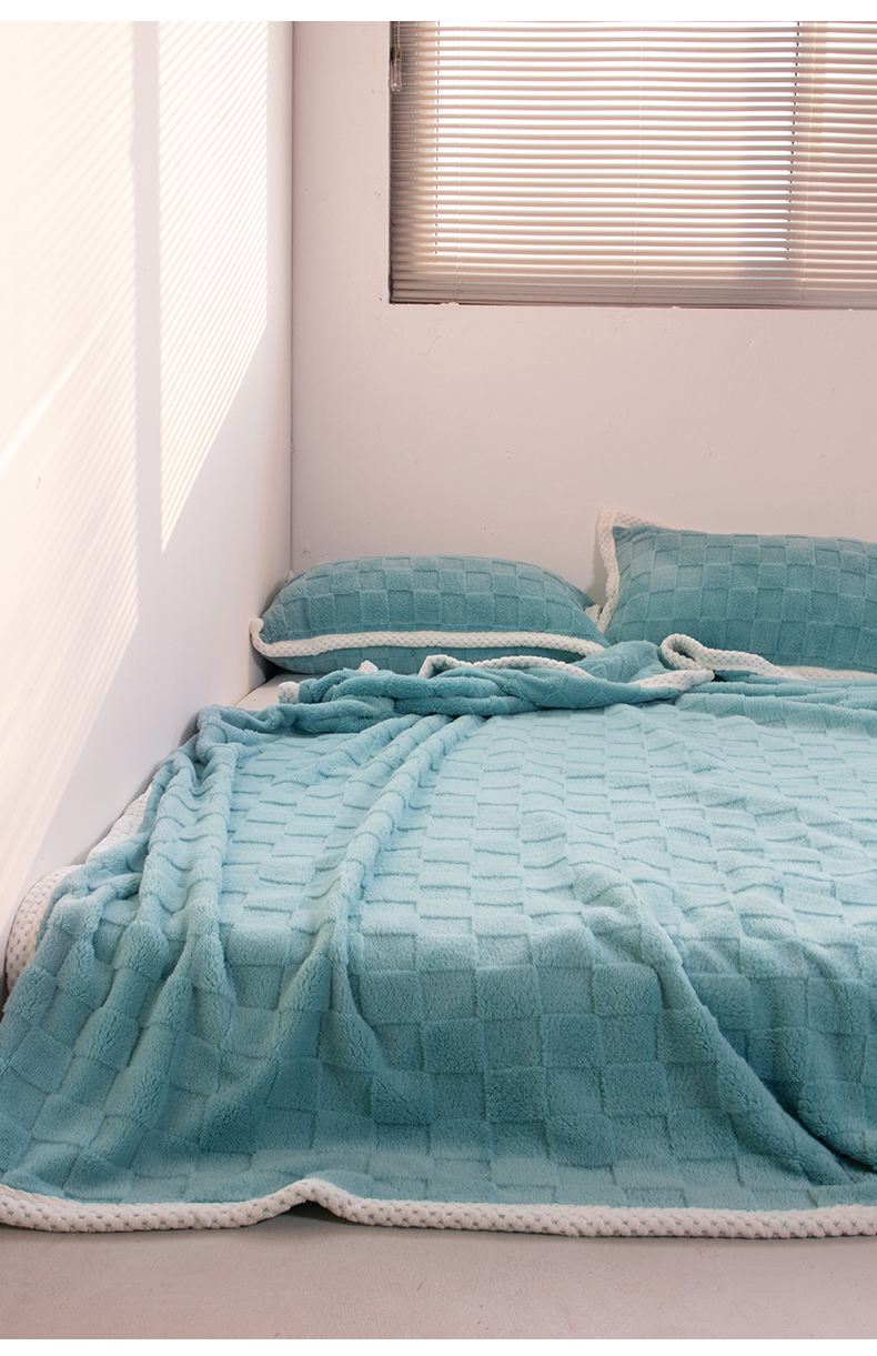 美洲琳 2025新款多功能提花泡泡绒毯-棋盘格 宾利蓝
