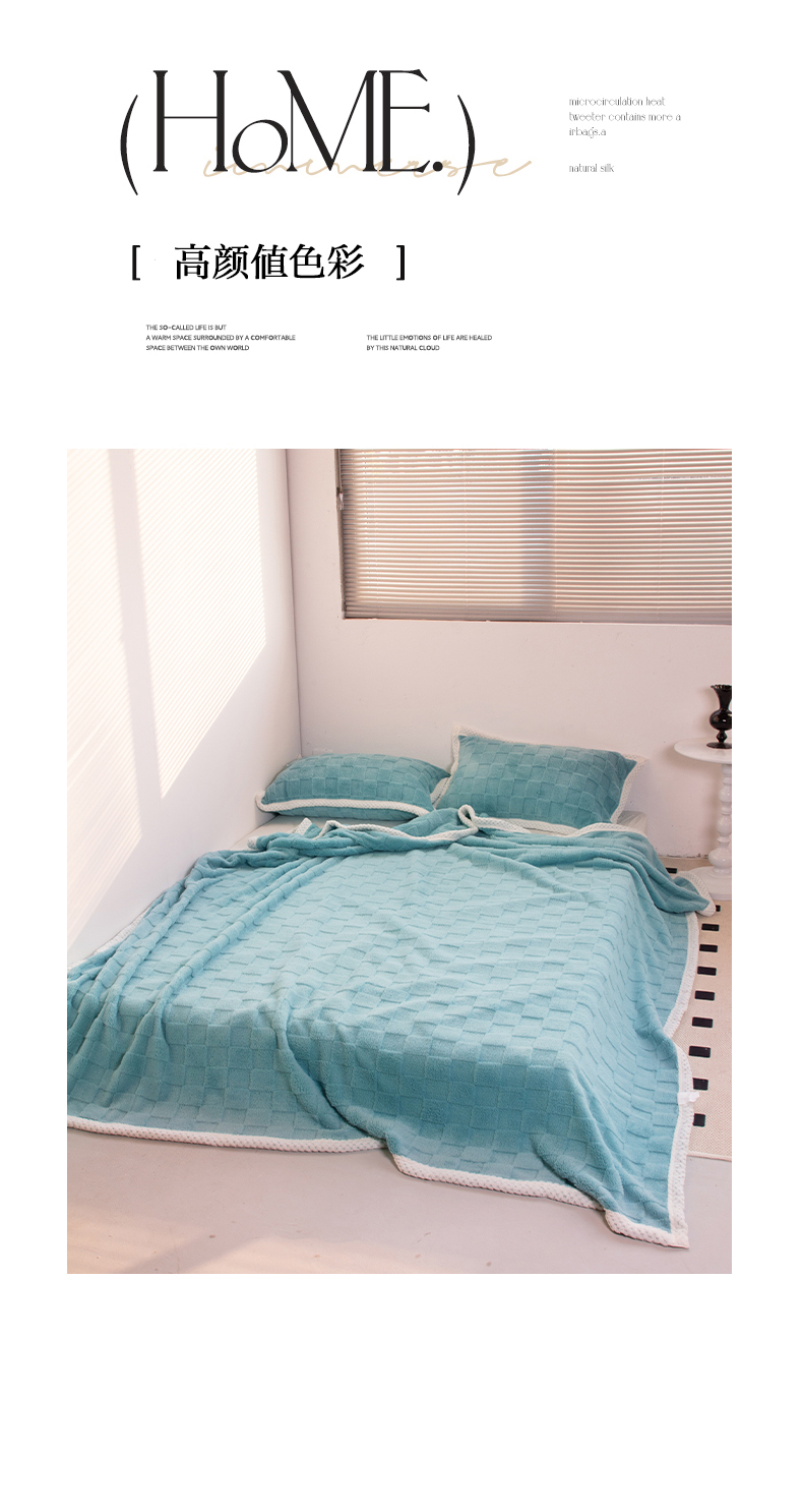(总)美洲琳 2025新款提花简约珊瑚绒法莱绒毯毛毯毯子,白色,粉色,咖色,蓝灰,绿色,深灰
