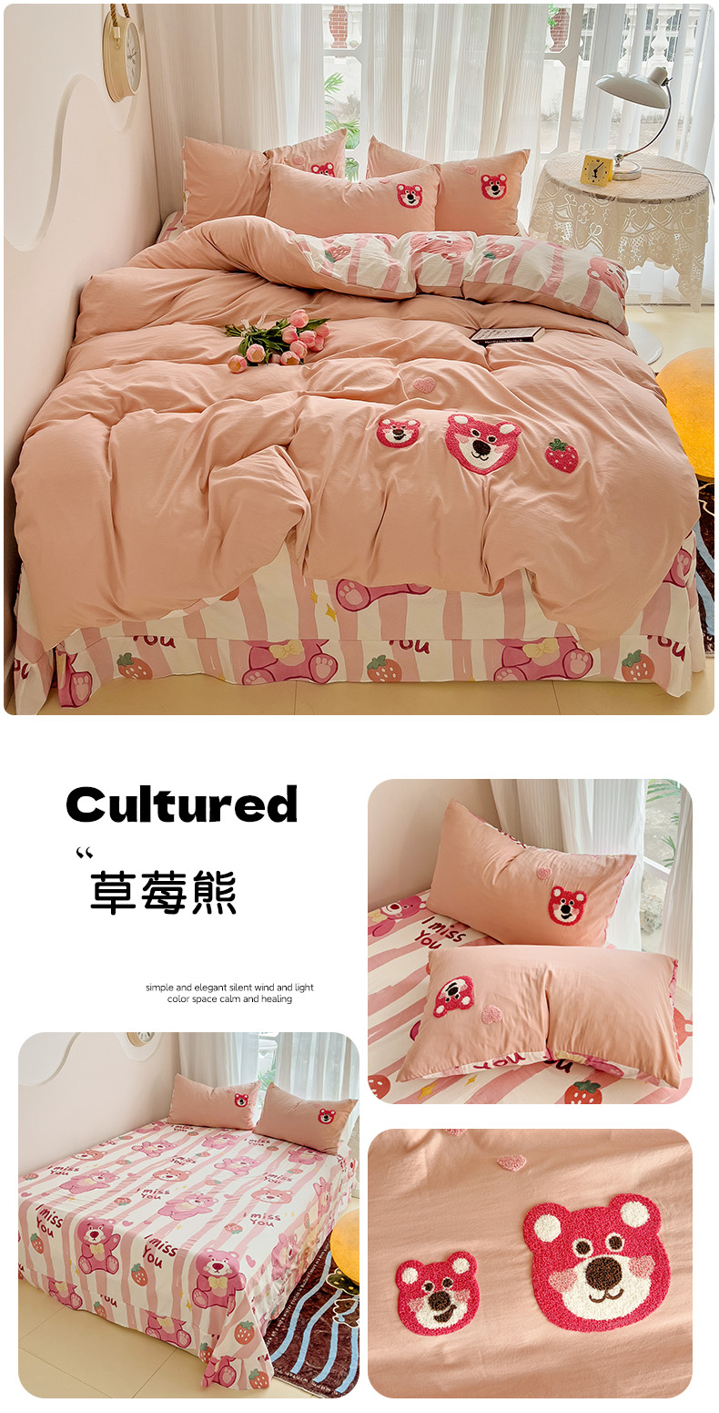 当前位置: 91家纺网 > 商品网购 > 床品套件 > 四件套 > 其它四件套 > 玉海棠家纺 2024新款超柔云朵棉毛巾绣四件套 草莓熊