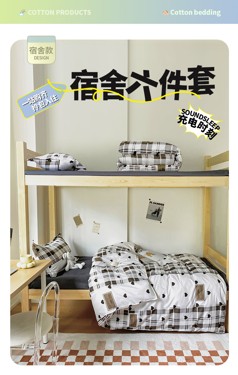 0.9m床垫上下铺六件套3斤被芯 | ¥94.00 |