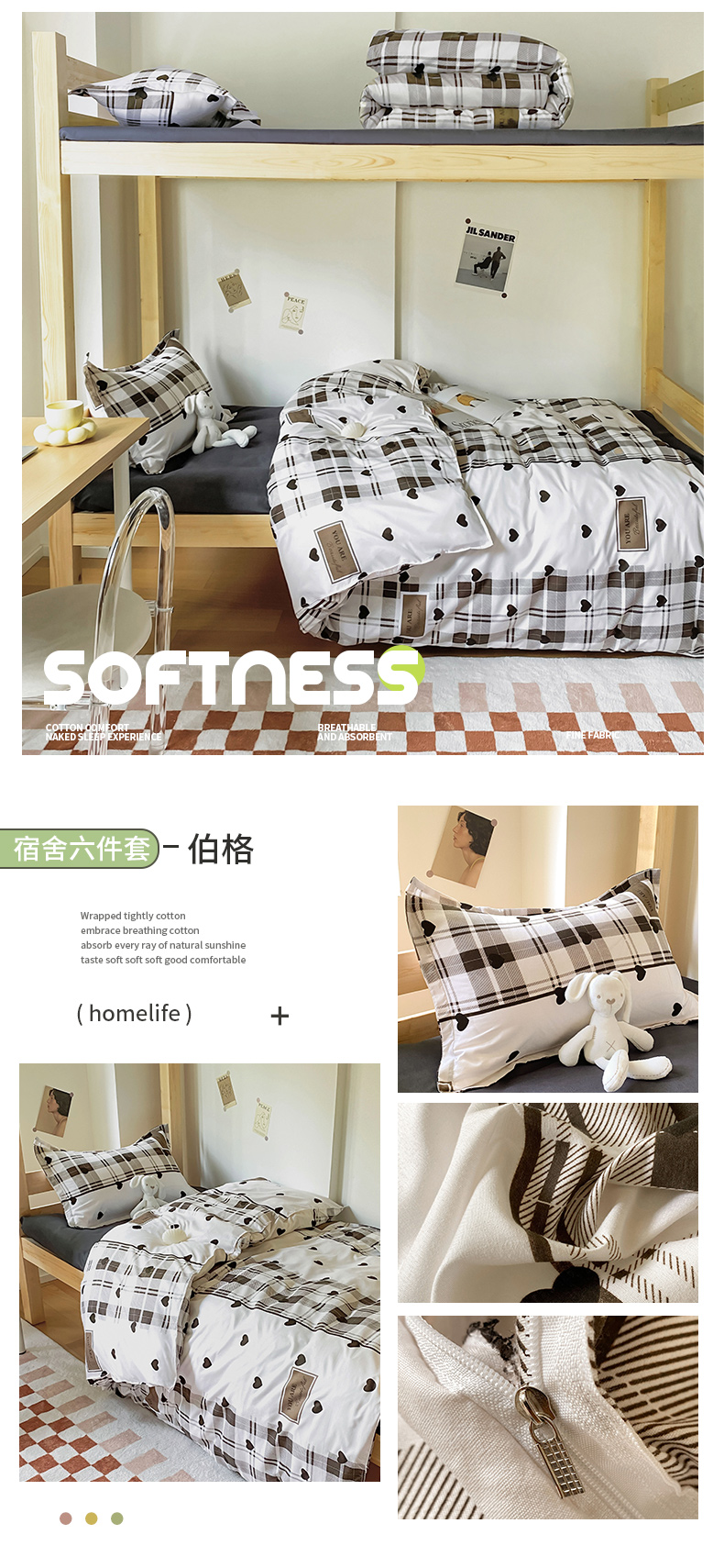 当前位置: 91家纺网 > 商品网购 > 床品套件 > 多件套 > 多件套 > 雅蔓依 2025新款亲肤芦荟棉宿舍上下铺单人床学生三件套六件套 伯格