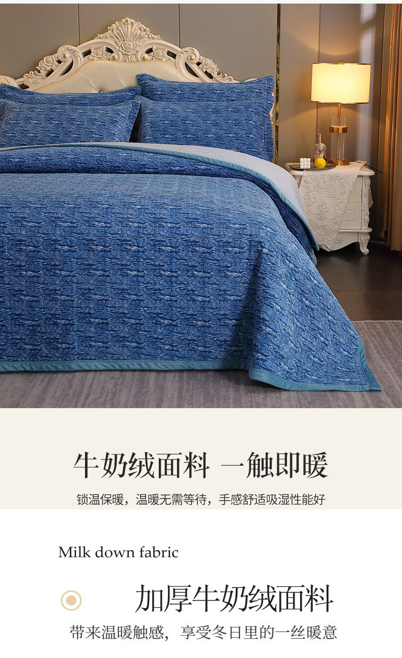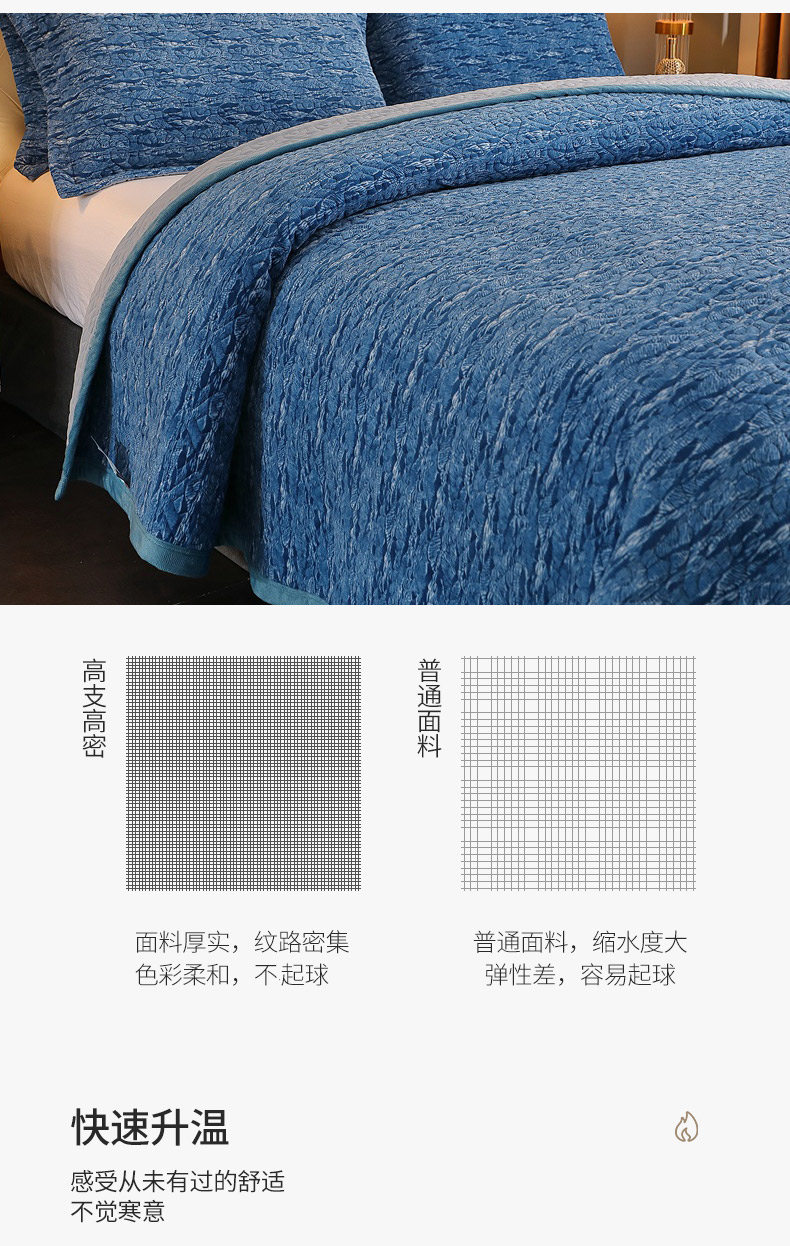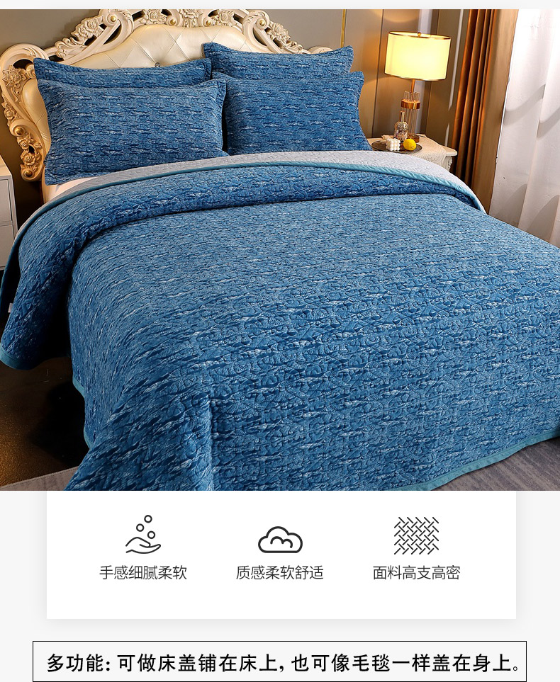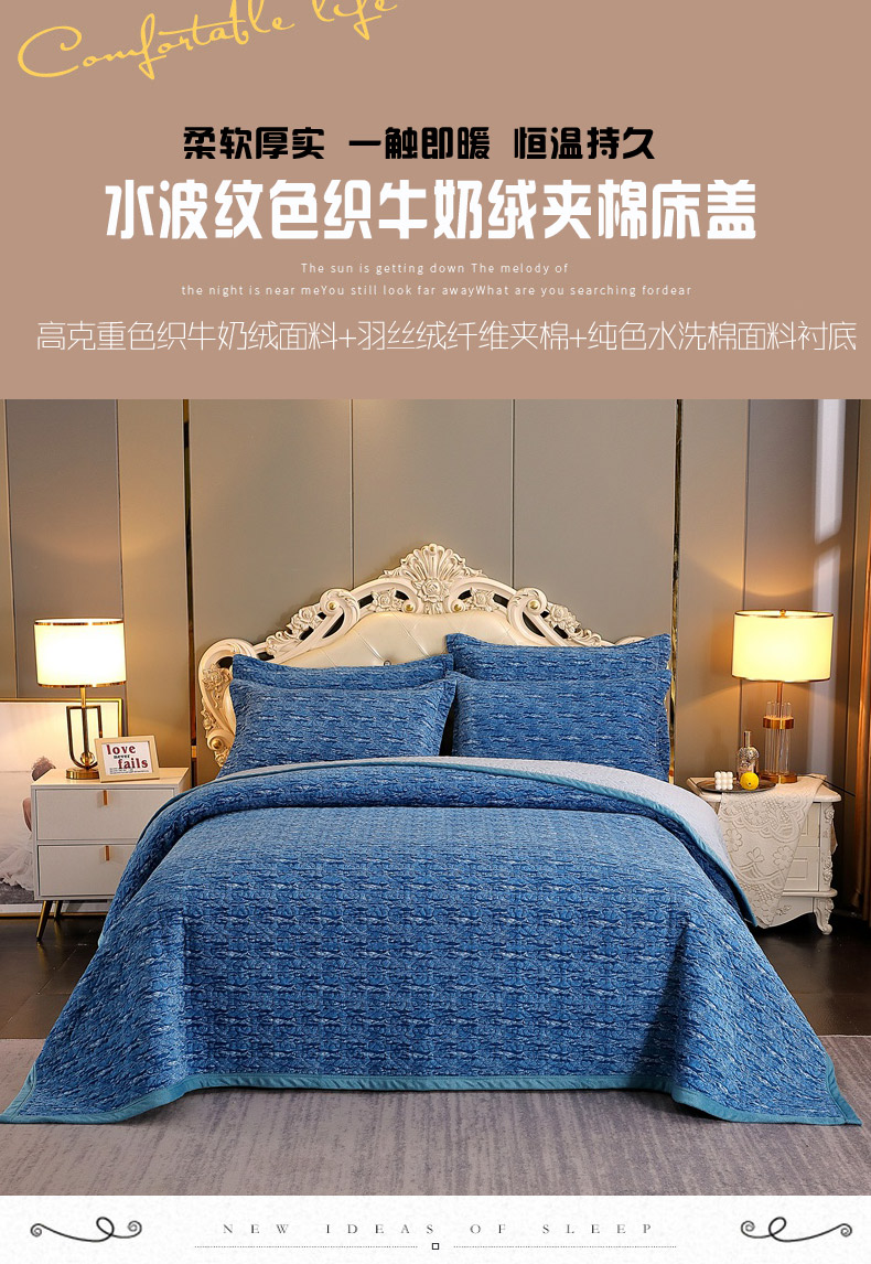 当前位置: 91家纺网 > 商品网购 > 床品套件 > 四件套 > 其它四件套 > 晶缦家纺 2024新款水波纹色织牛奶绒床盖三件套 涟漪-宝石蓝