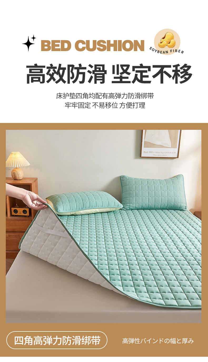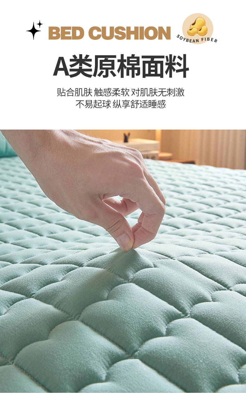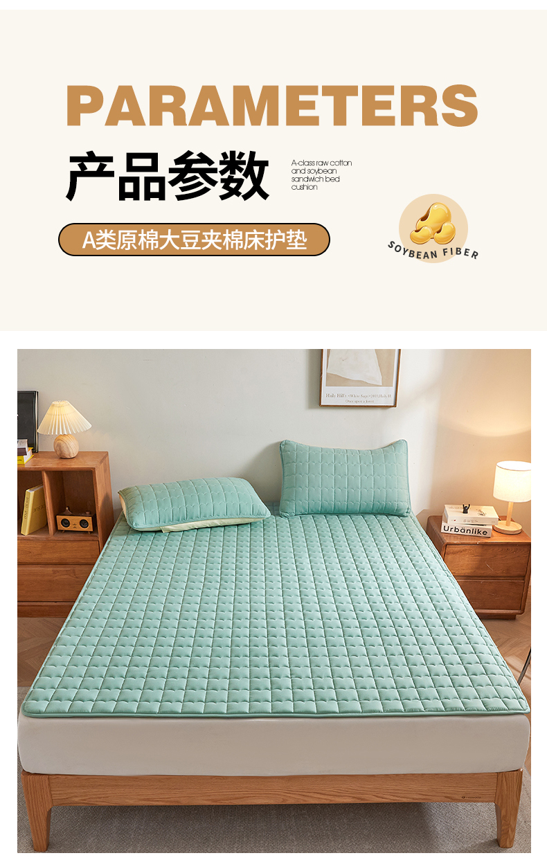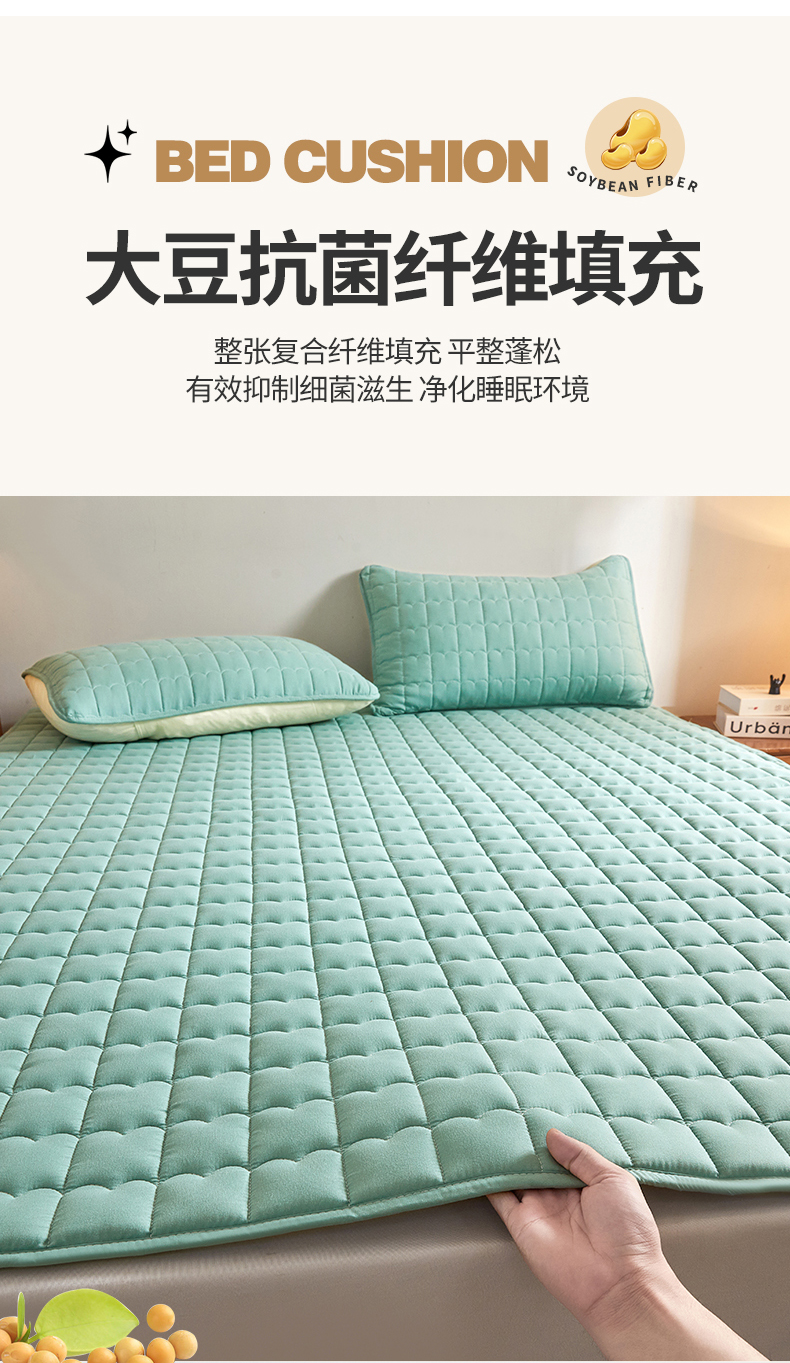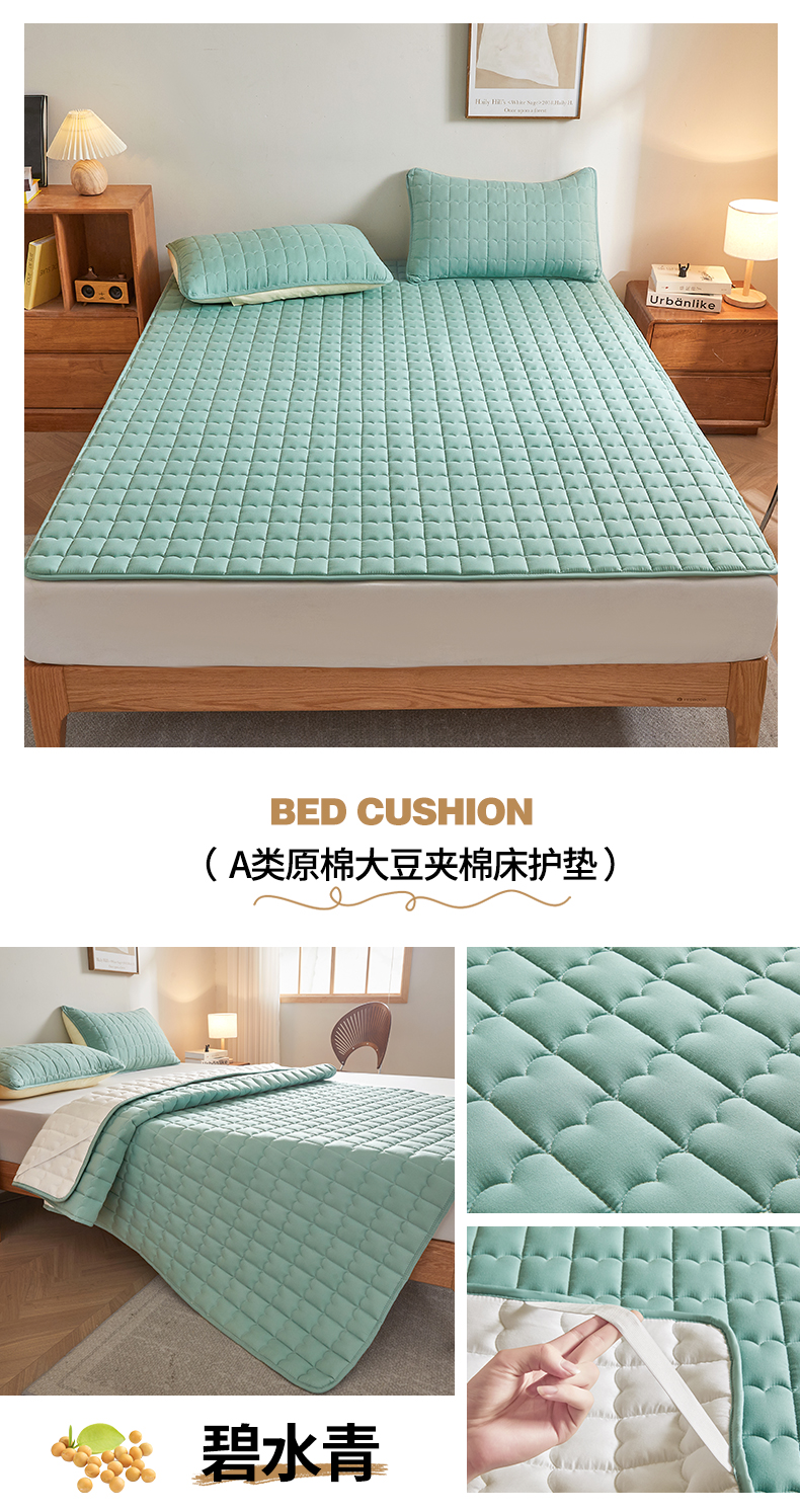 (总)伊人坊 2024新款原棉大豆床护垫,明月白,碧水青,布朗灰,玫瑰粉,米杏色,苹果绿