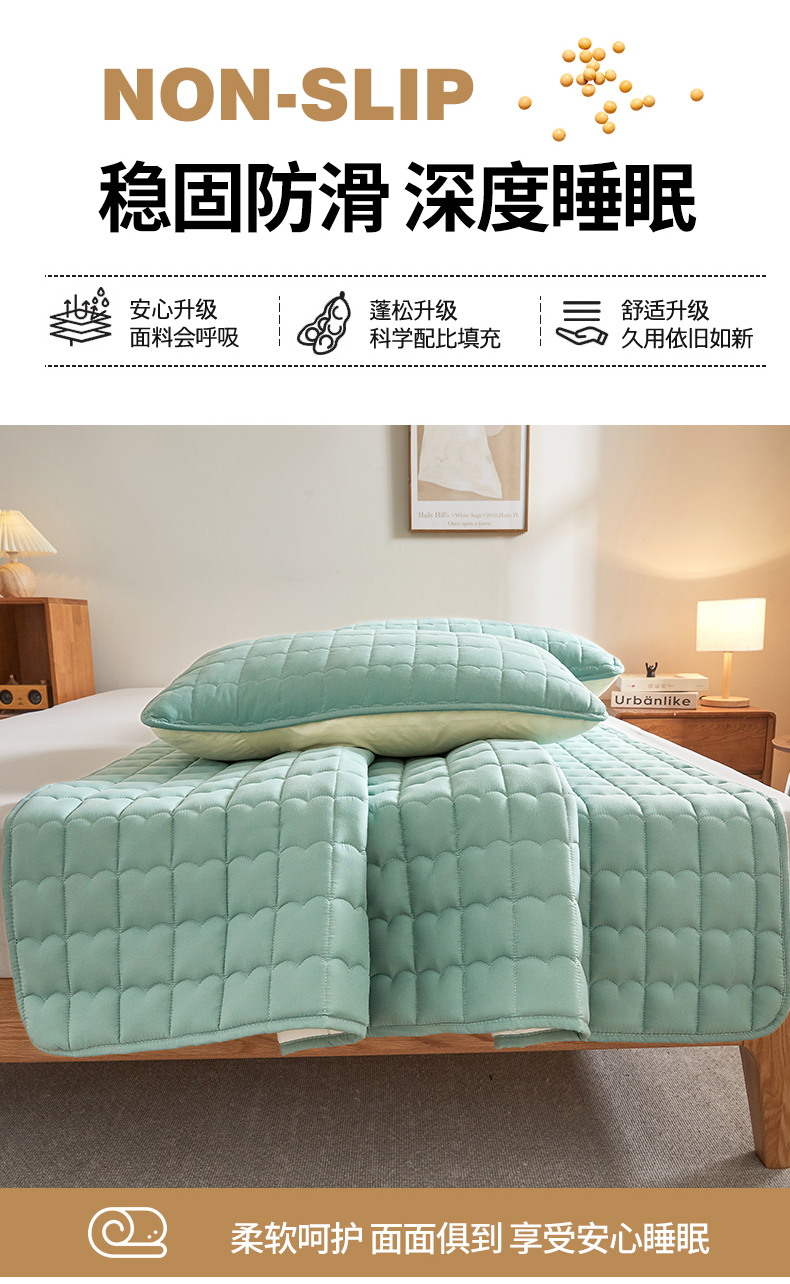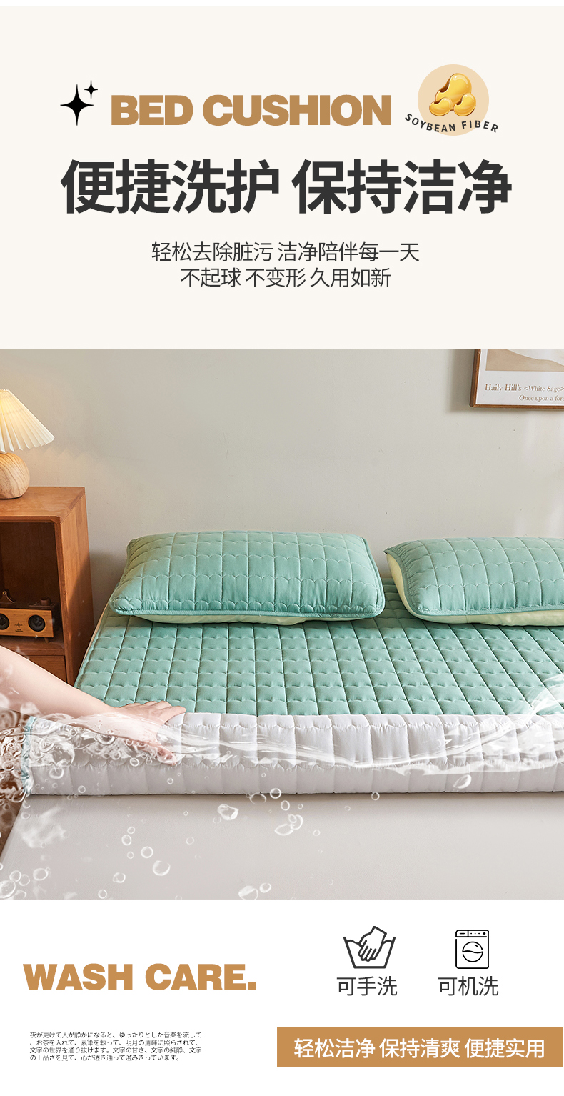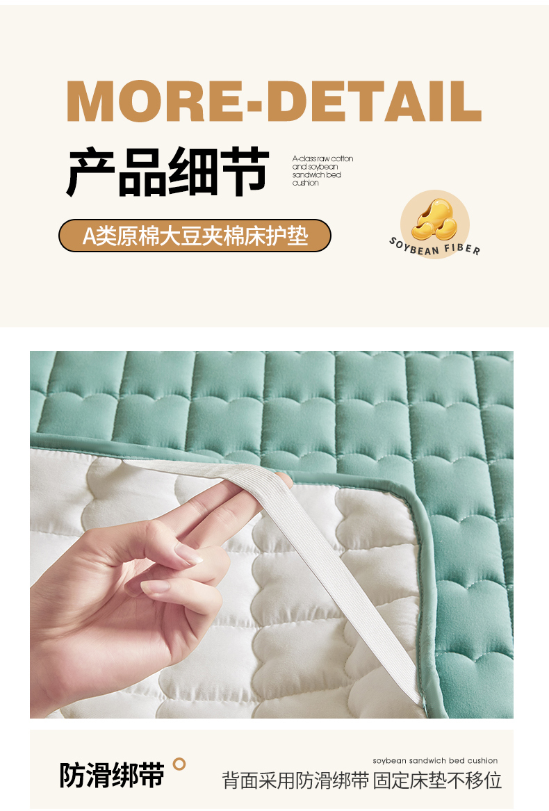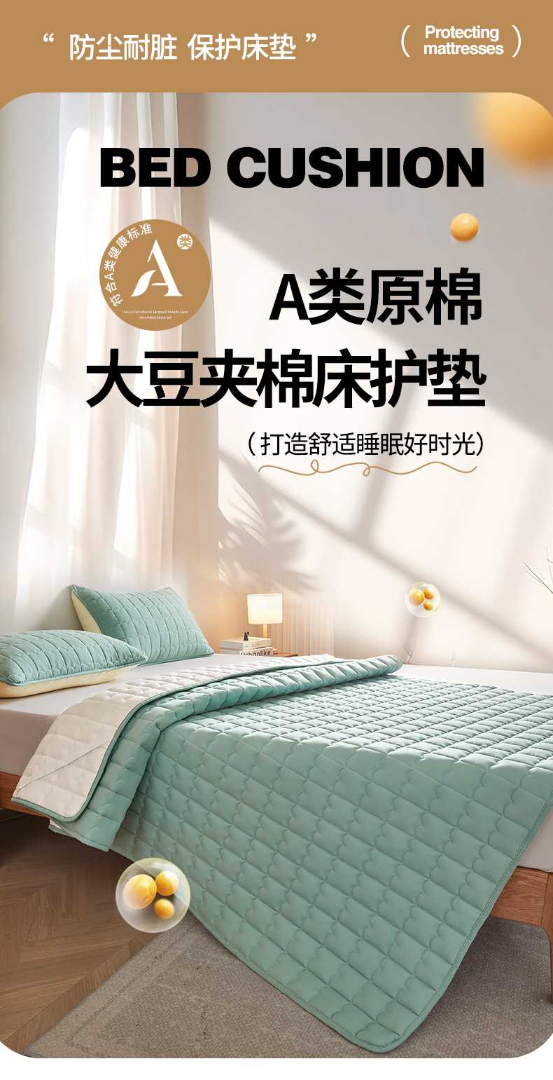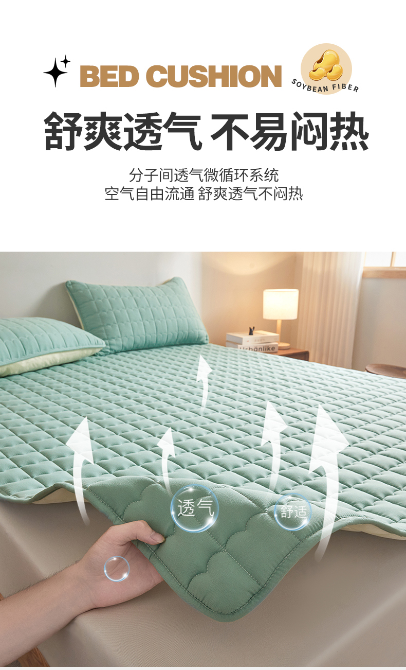 (总)伊人坊 2024新款原棉大豆床护垫,明月白,碧水青,布朗灰,玫瑰粉,米杏色,苹果绿