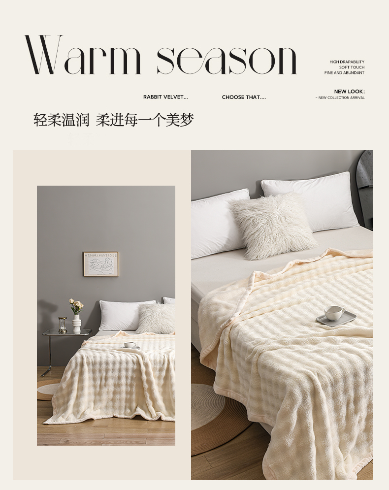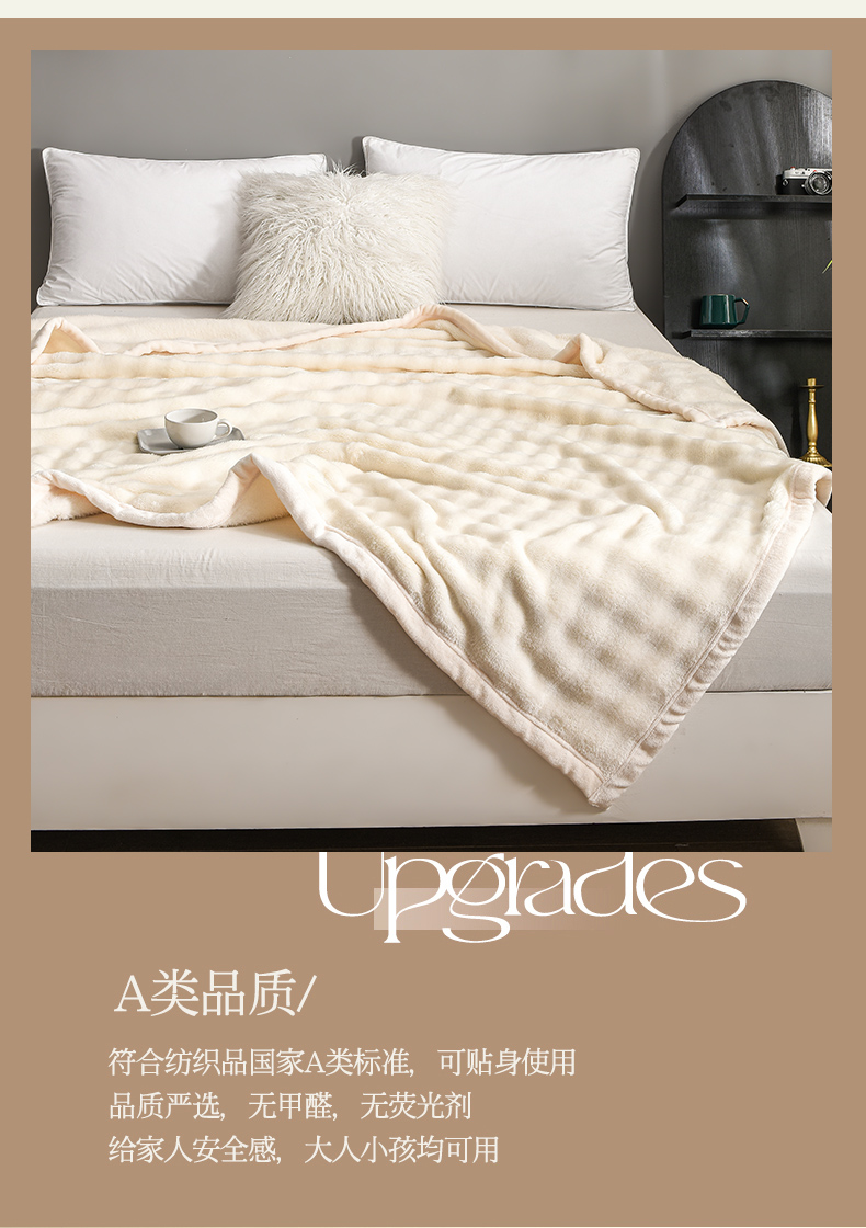 (总)爱她美家纺 2024新款兔毛泡泡毯多功能毯子,草绿,粉色,奶白,浅灰,天蓝,驼色,紫色