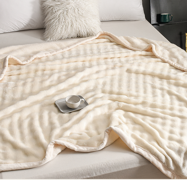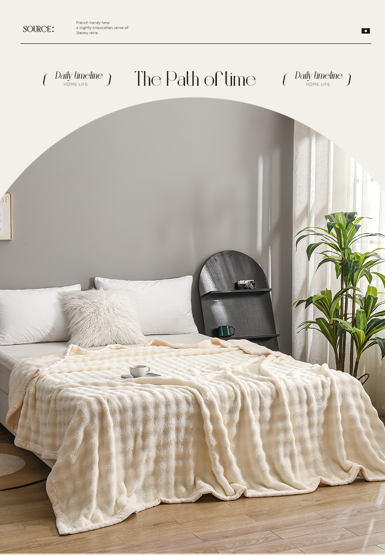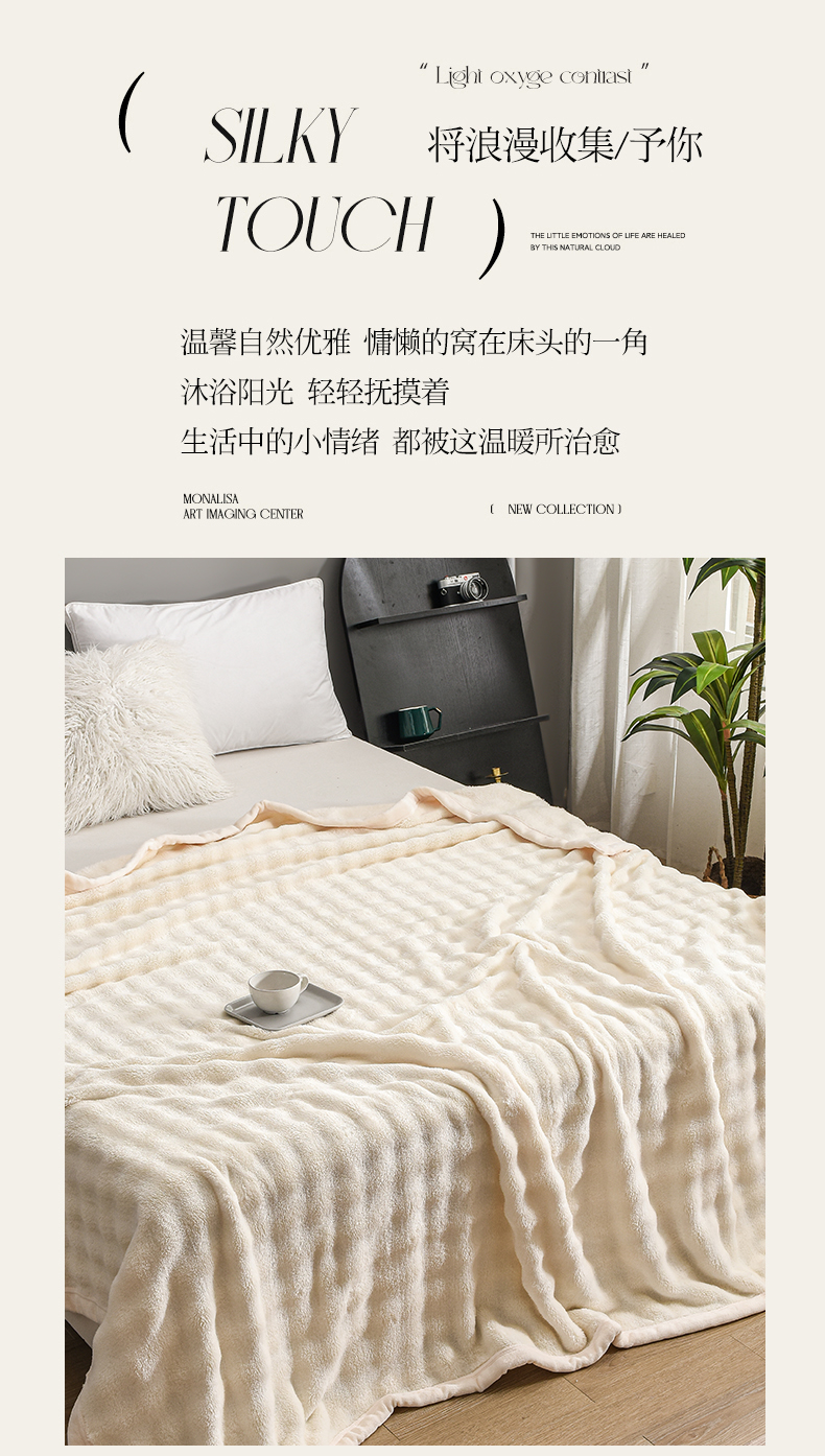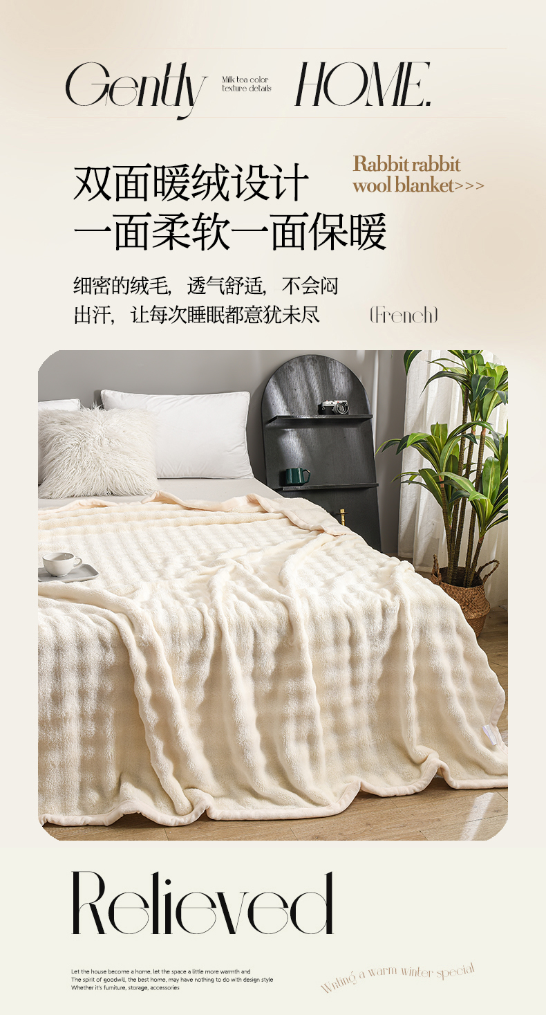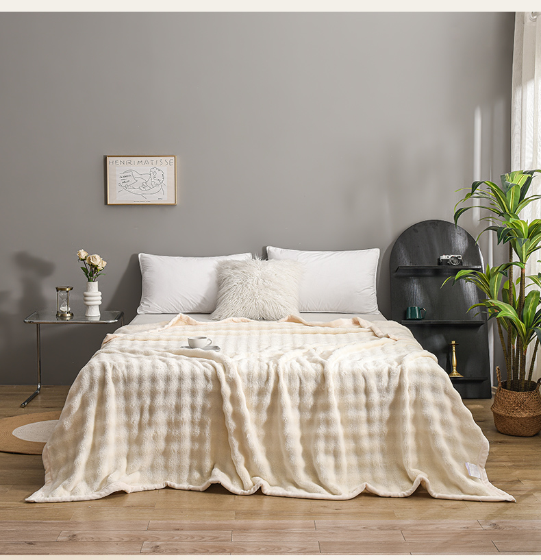 爱她美家纺 2024新款兔毛泡泡毯多功能毯子 奶白