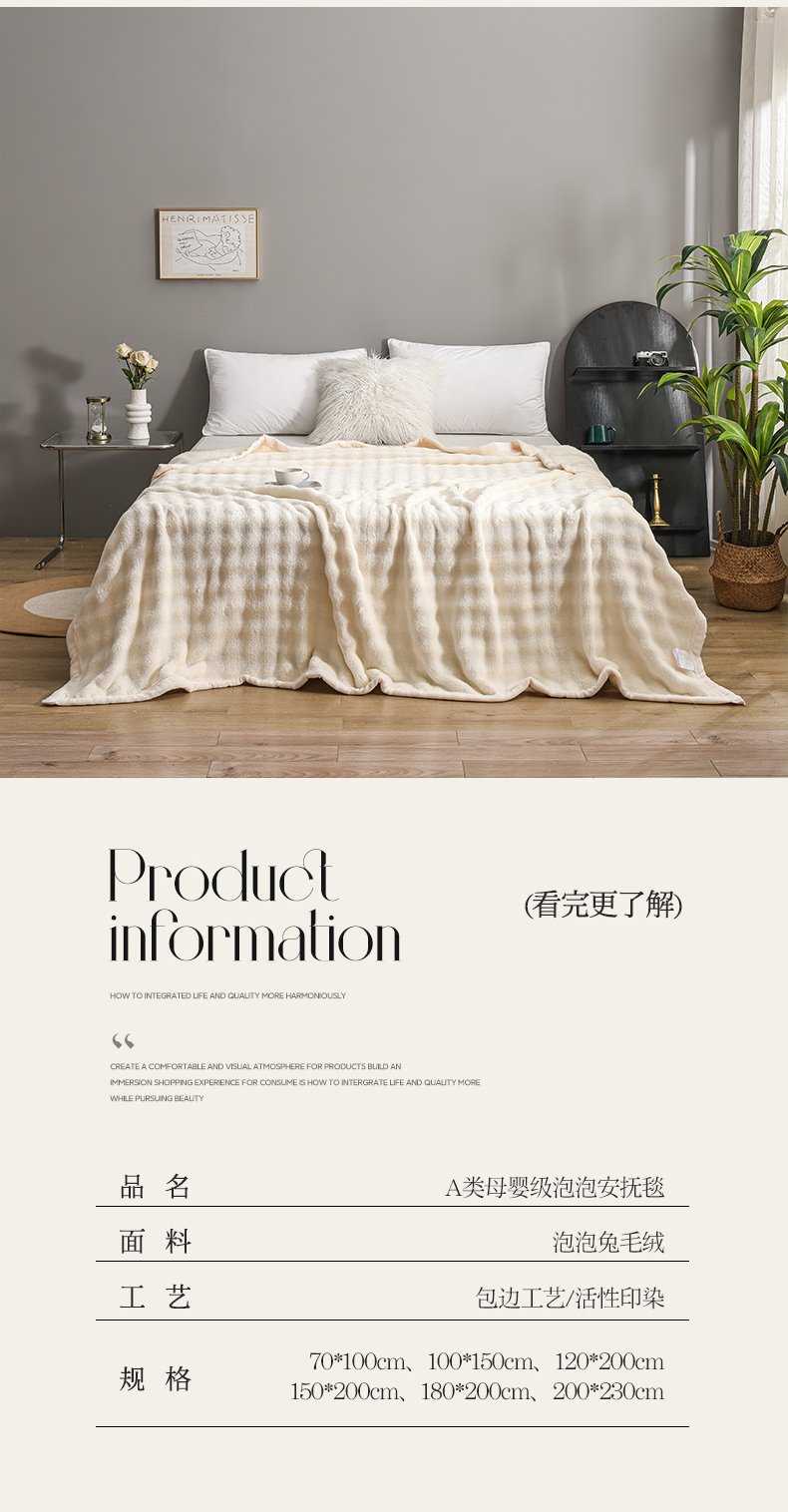 商品名称:爱她美家纺 2024新款兔毛泡泡毯多功能毯子 奶白
