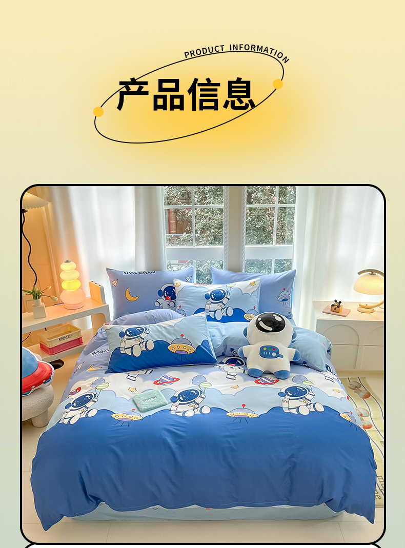商品名称:博雅 2024新款宇航员系列全棉四件套(专版花型) 太空漫步