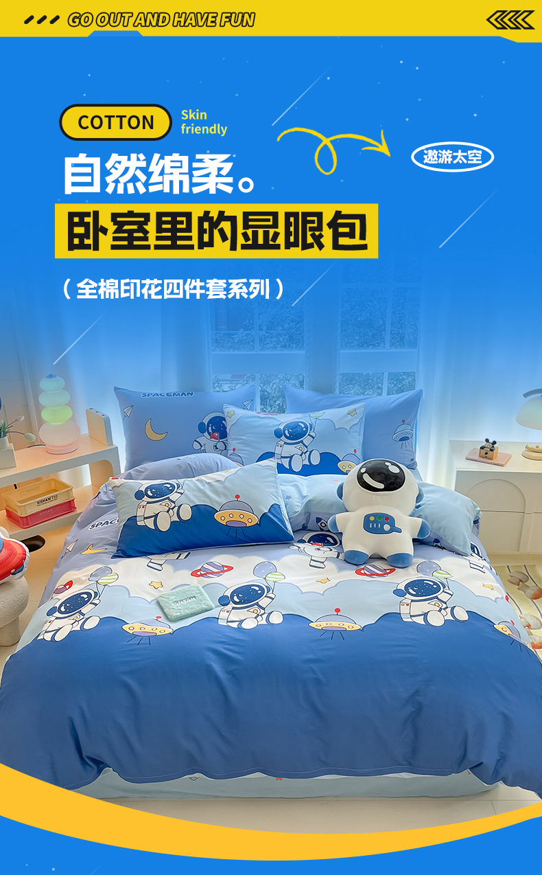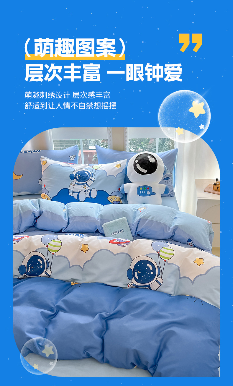 博雅 2024新款宇航员系列全棉四件套(专版花型) 太空漫步