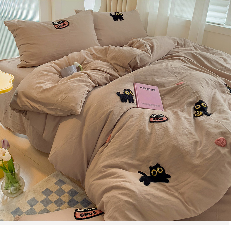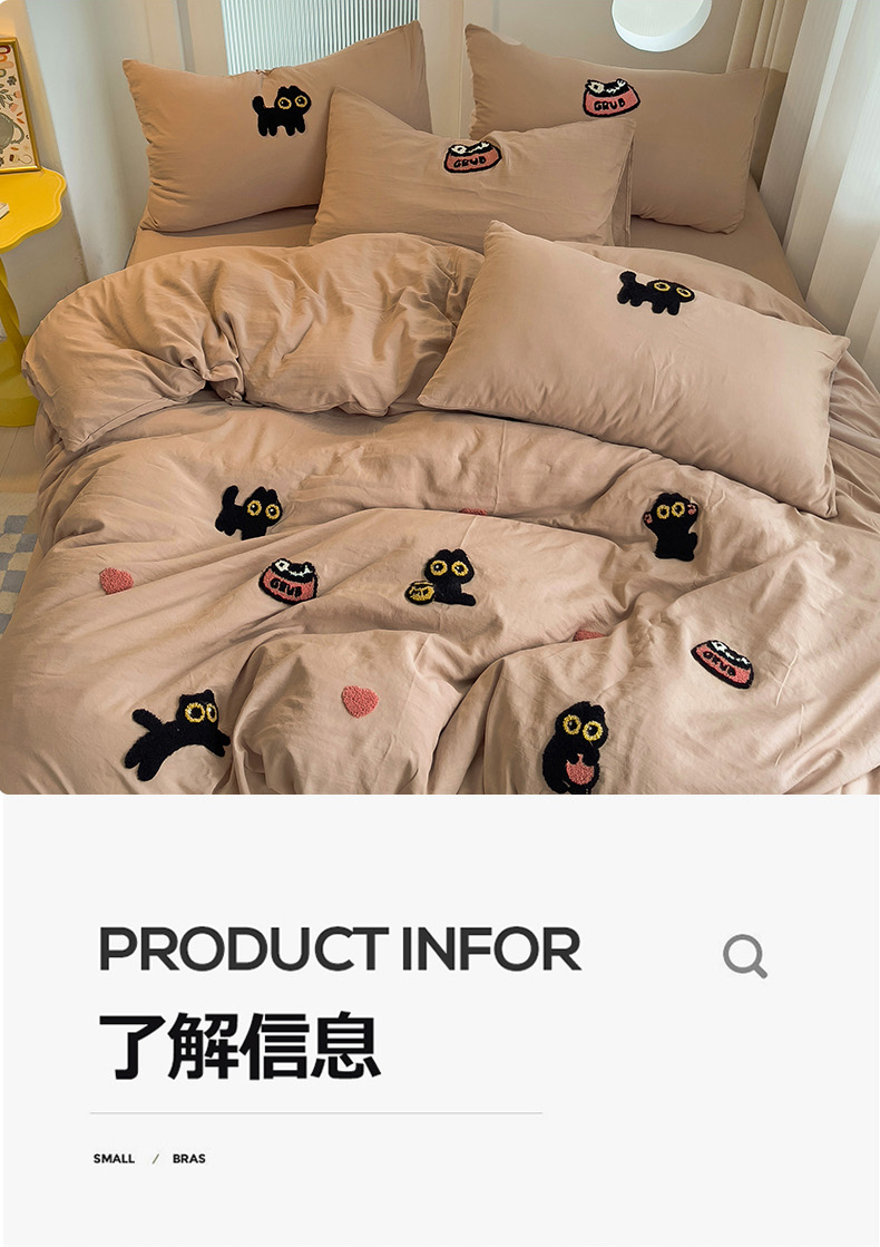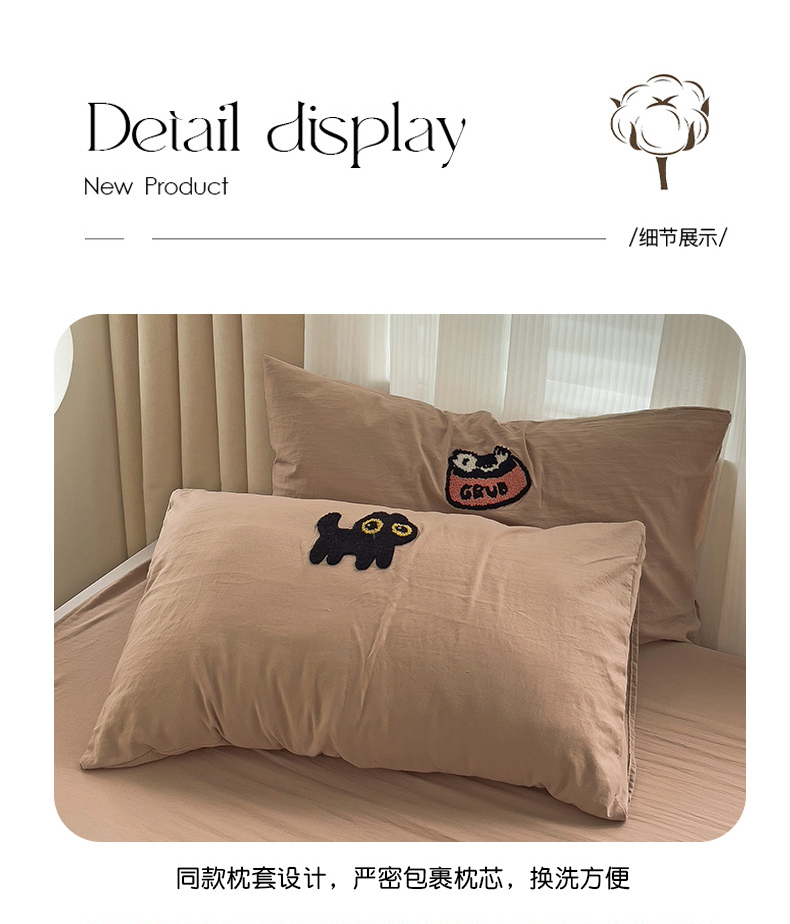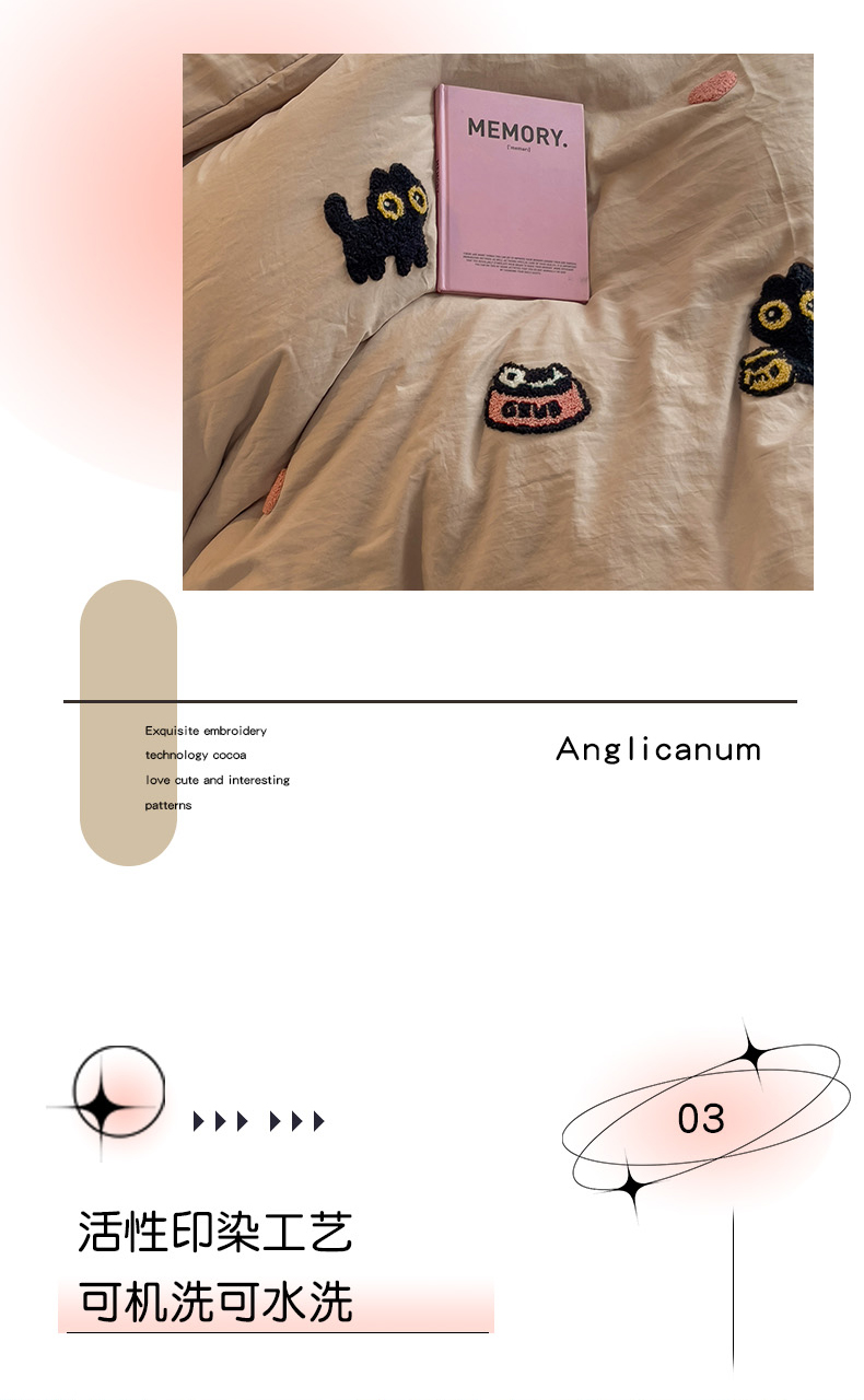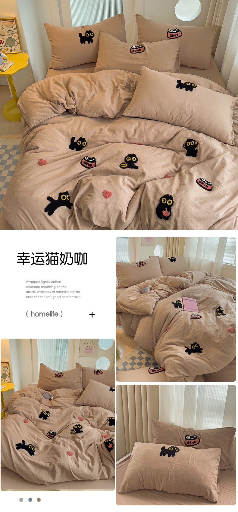 商品名称:韩巢家纺 2024新款四季通用超柔水洗棉毛巾绣单件被套-幸运猫系列(提供卖家秀 ) 幸运猫奶咖