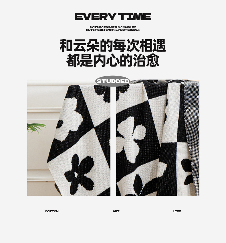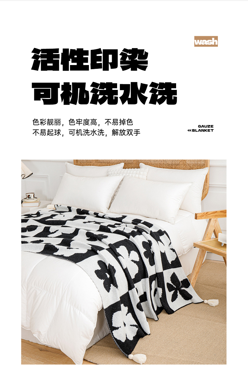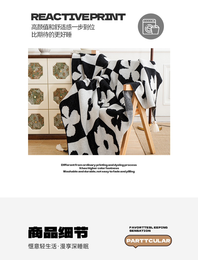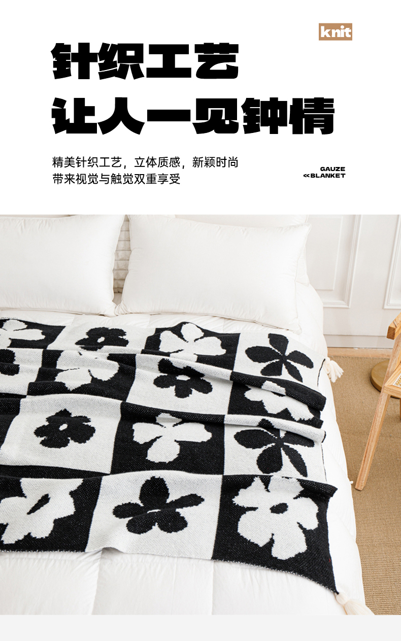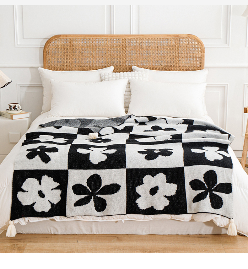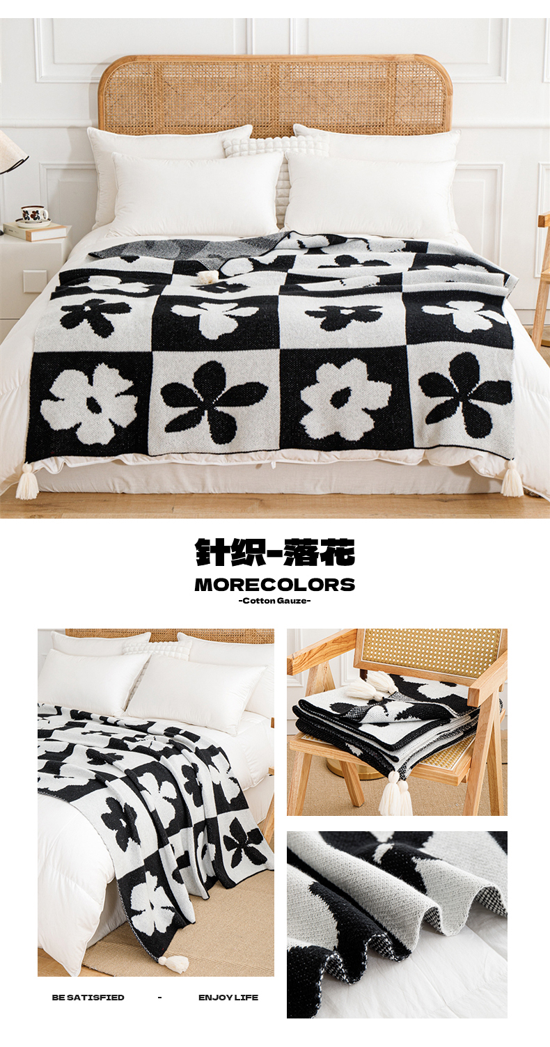 商品名称:栩裕纺织 2024新款针织多功能披肩沙发盖毯(可定制) 针织-落花