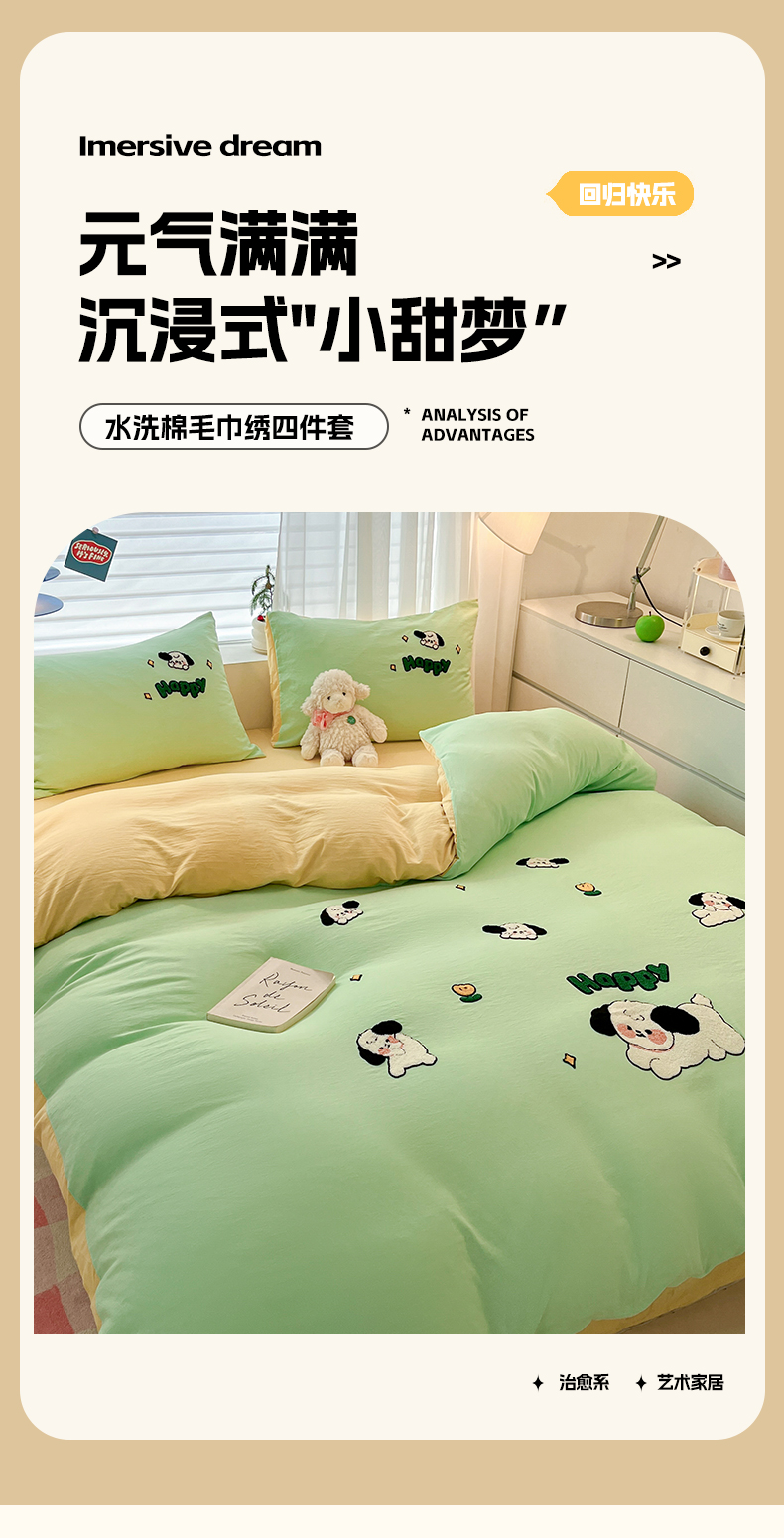 当前位置: 91家纺网 > 商品网购 > 床品套件 > 四件套 > 水洗棉四件套 > 优承佳生活馆 2024新款水洗m毛巾绣四件套 萌宠世界