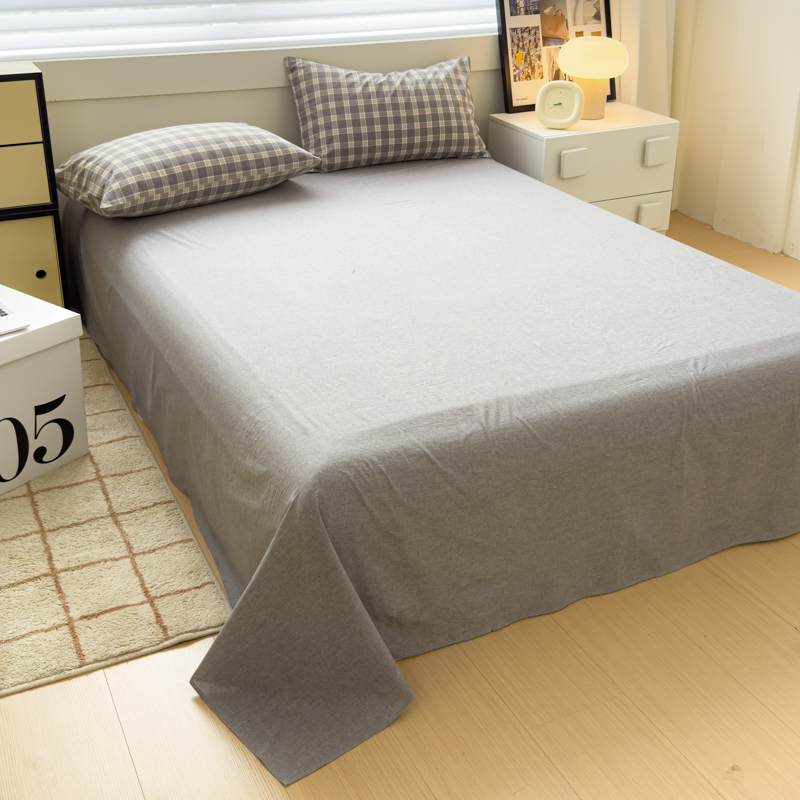 星尚家纺 2024新款A类全棉色织水洗棉三四件套系列-单床单 麦田灰
