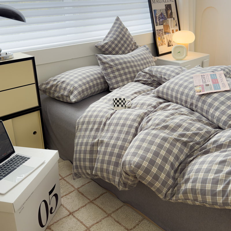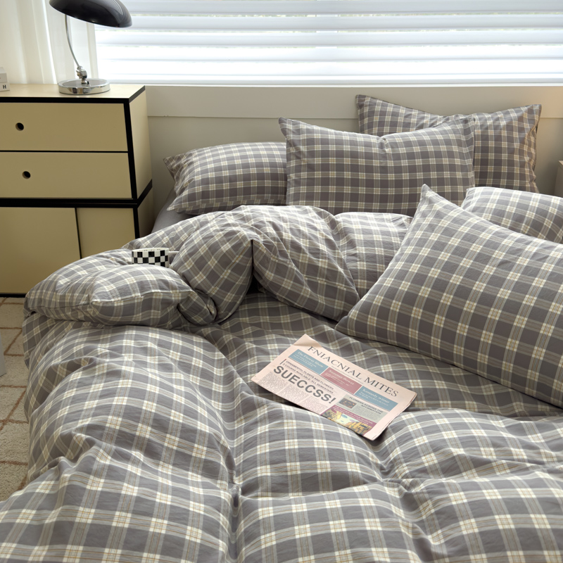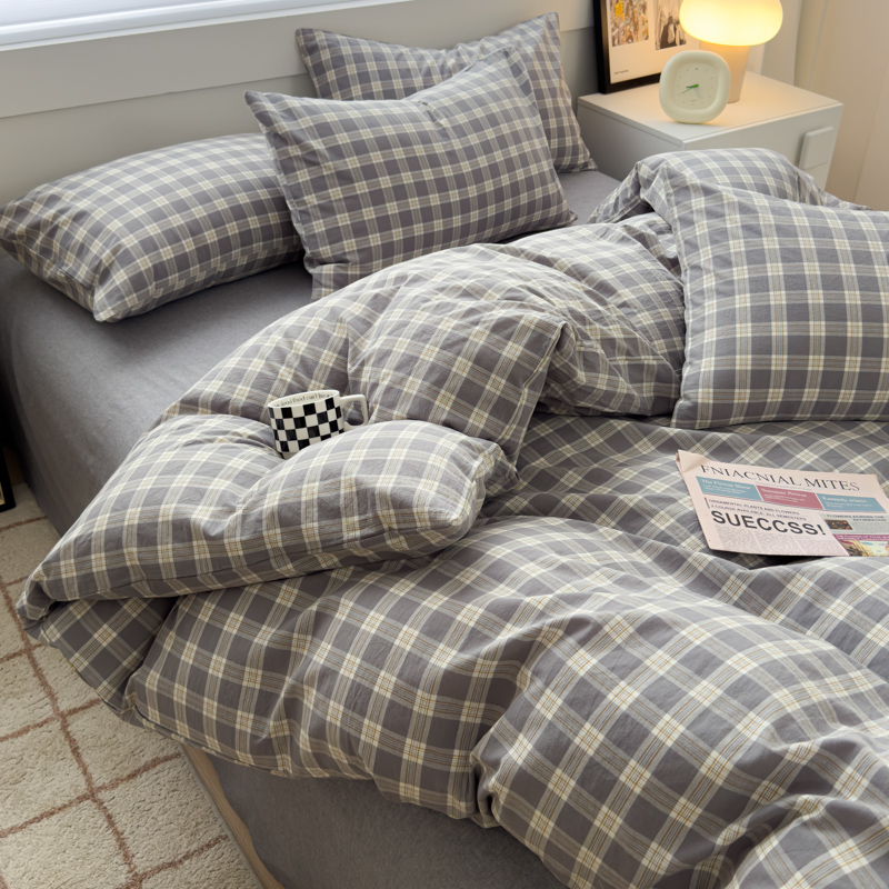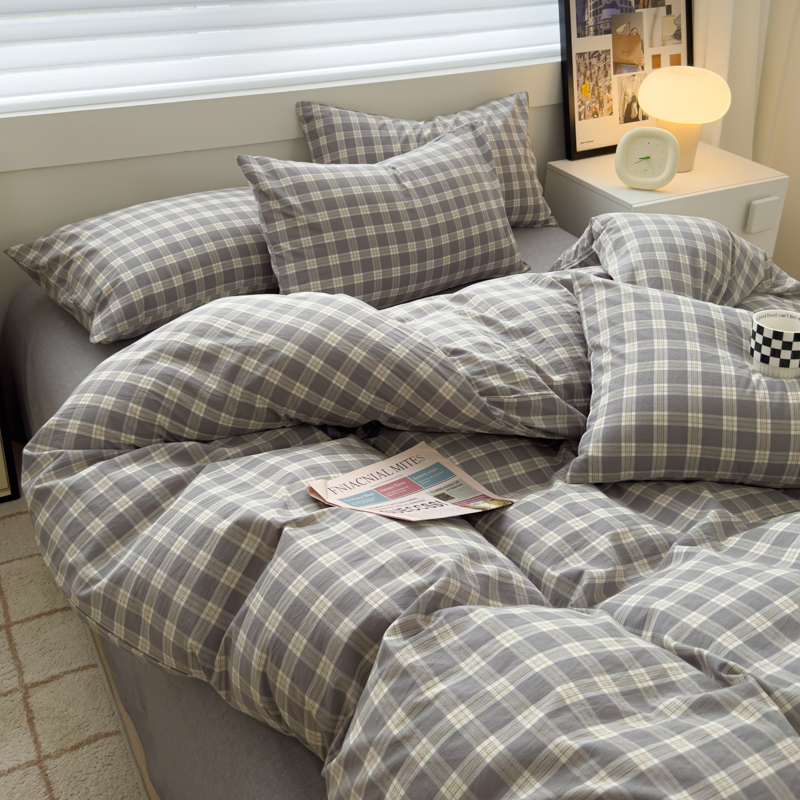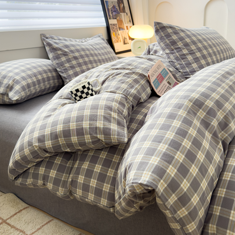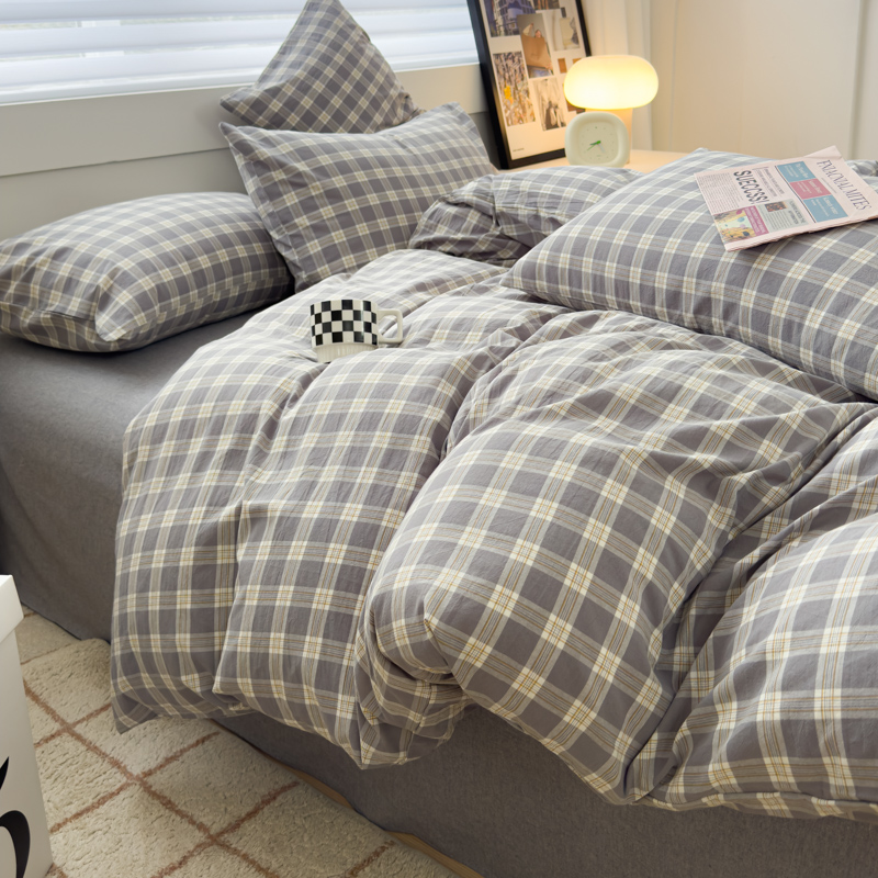 商品名称:星尚家纺 2024新款A类全棉色织水洗棉三四件套系列-单被套 麦田灰