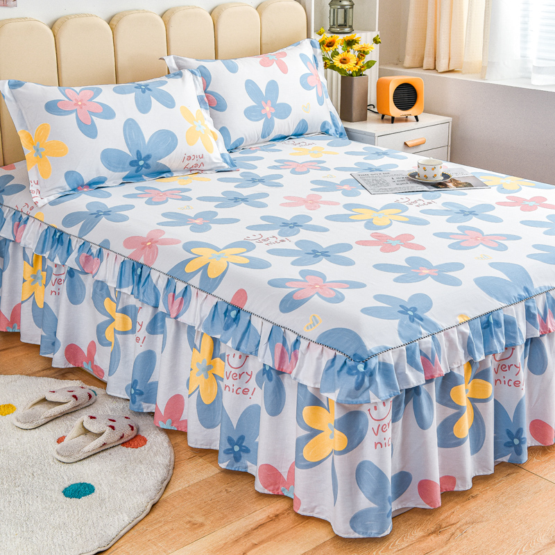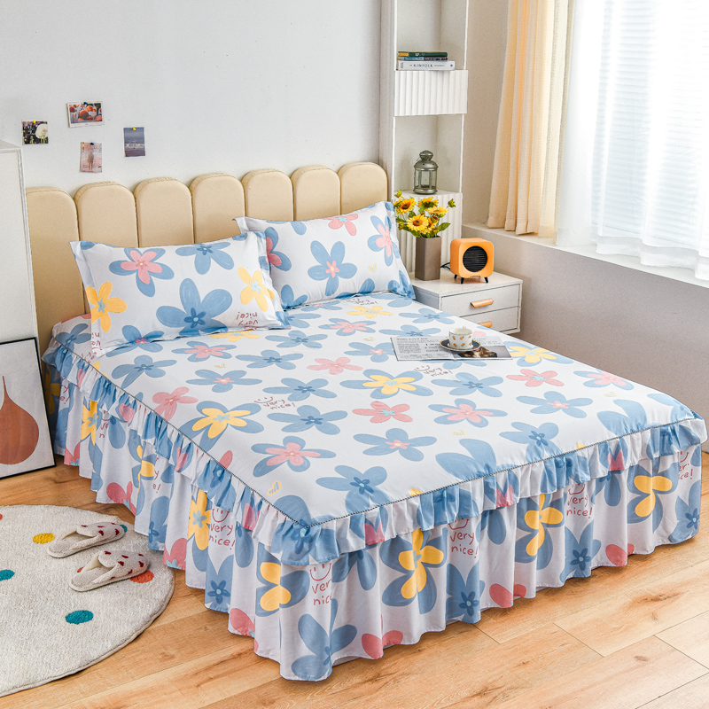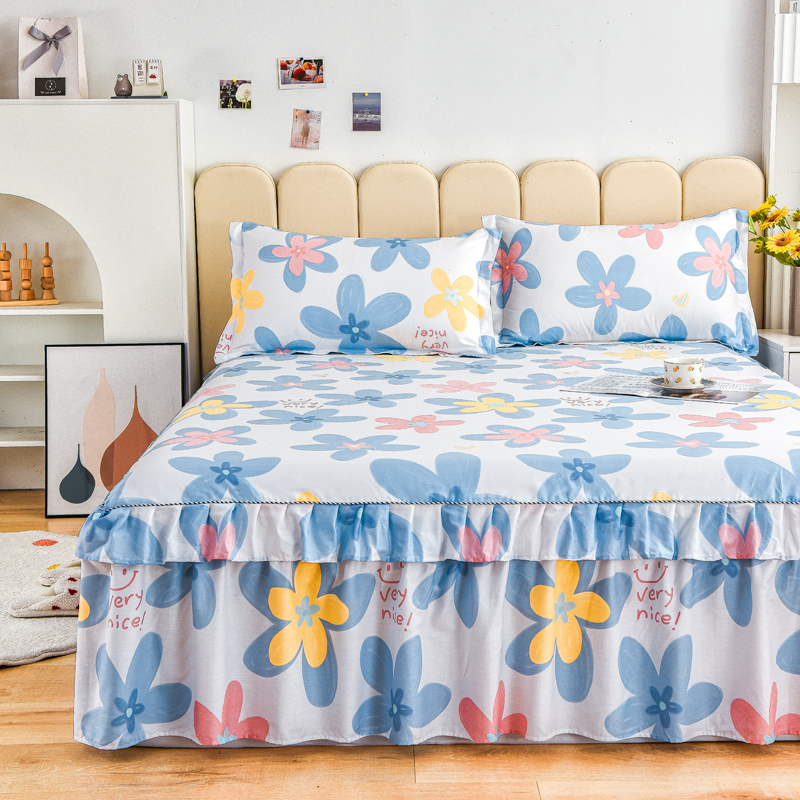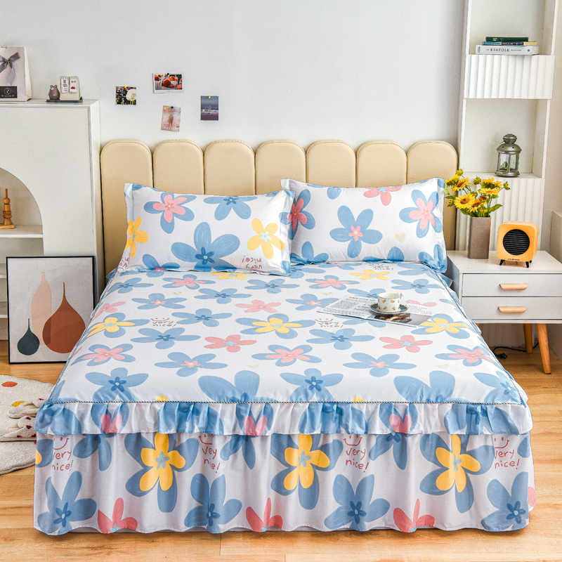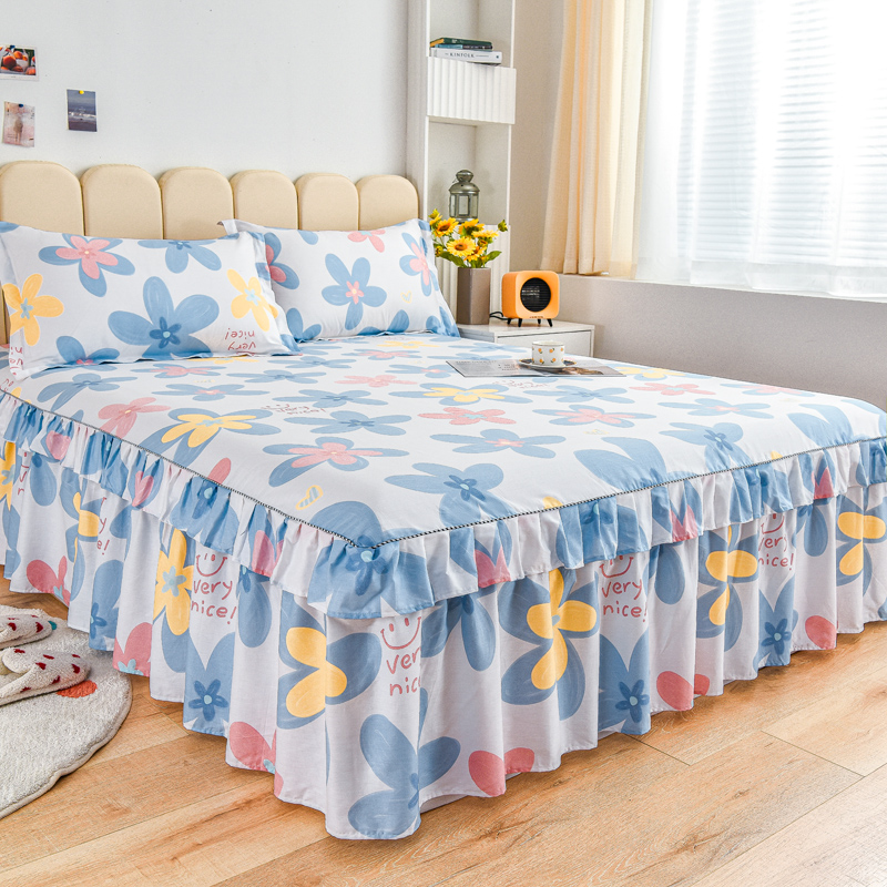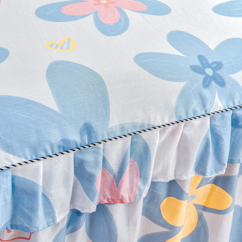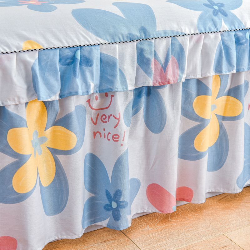 名优家纺 2024新款A类全棉印花床裙 浅浅花漾-蓝色