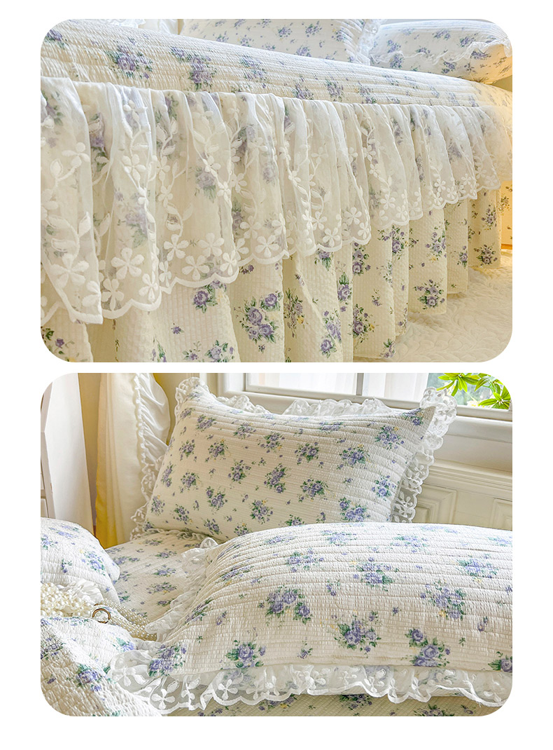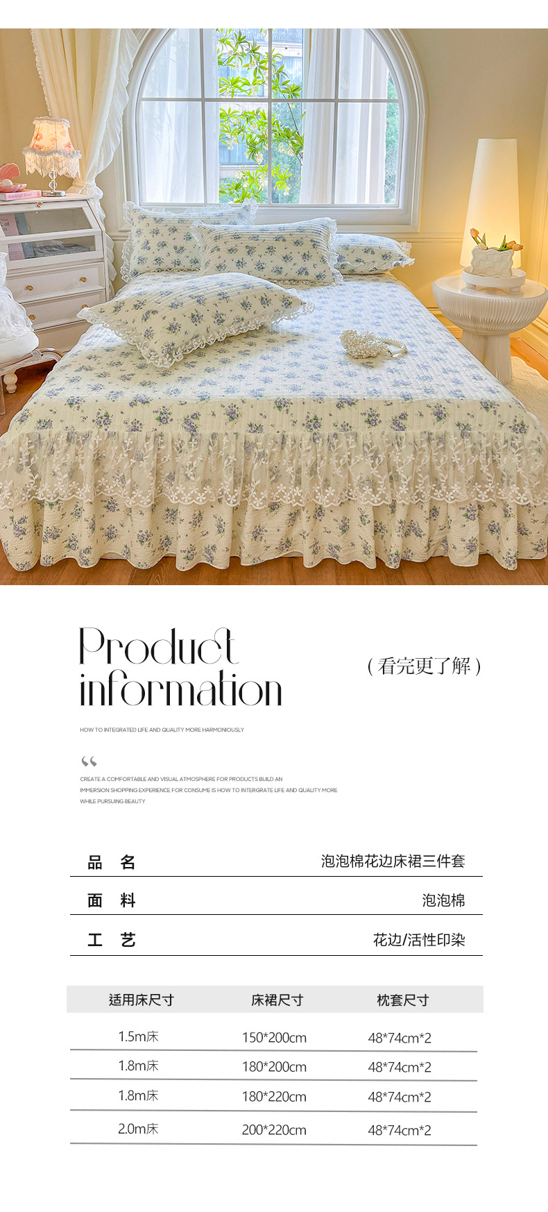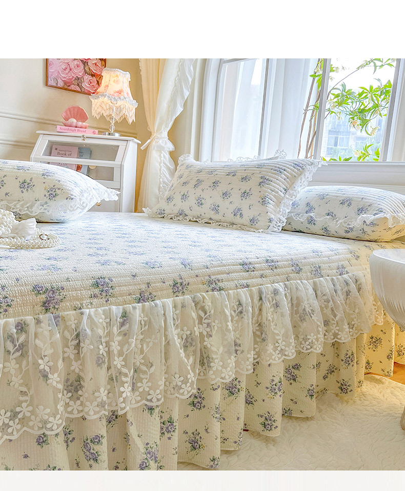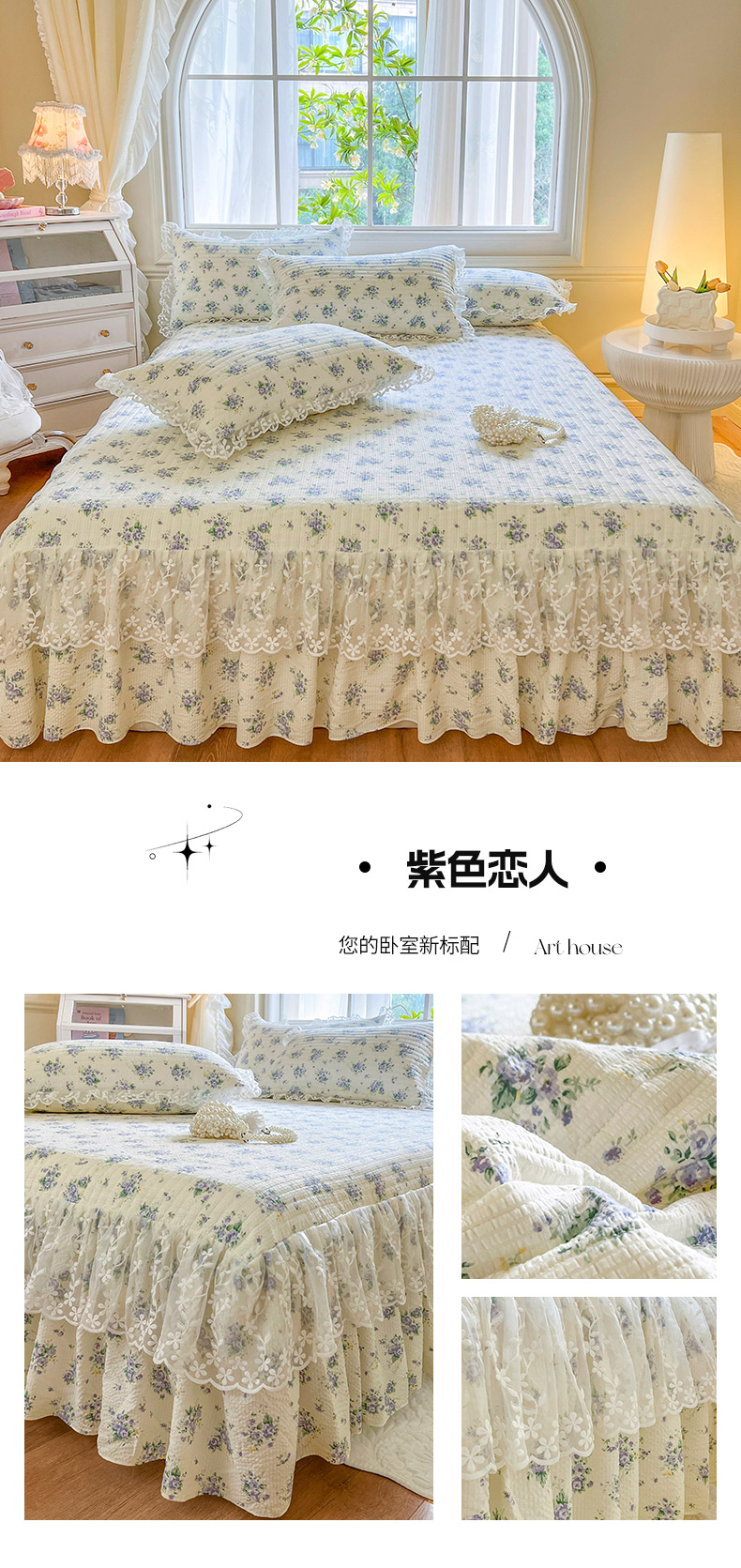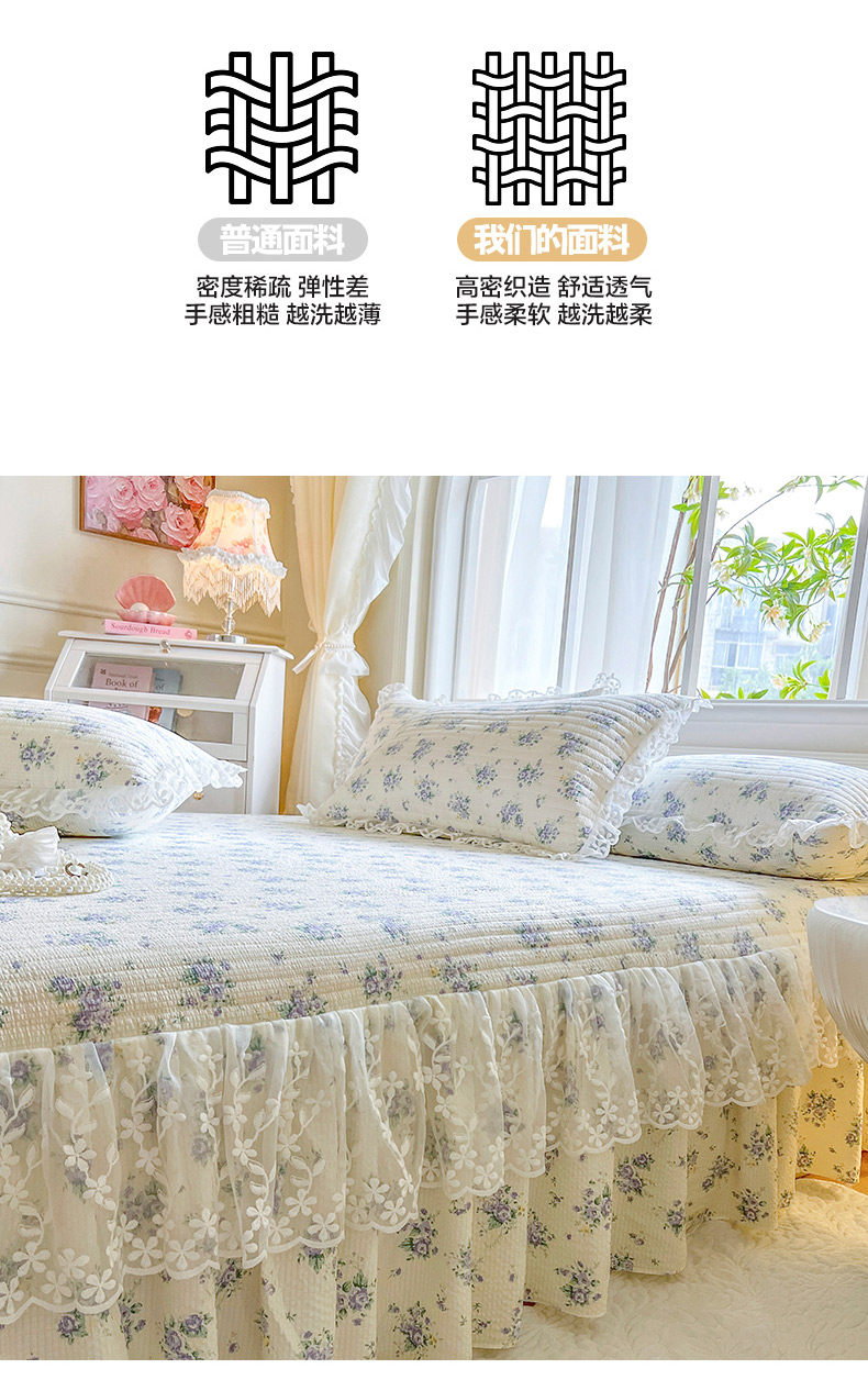 当前位置: 91家纺网 > 商品网购 > 床品套件 > 三件套 > 网红馆(ck家纺) 2025新款泡泡棉花边床裙三件套 紫色恋人