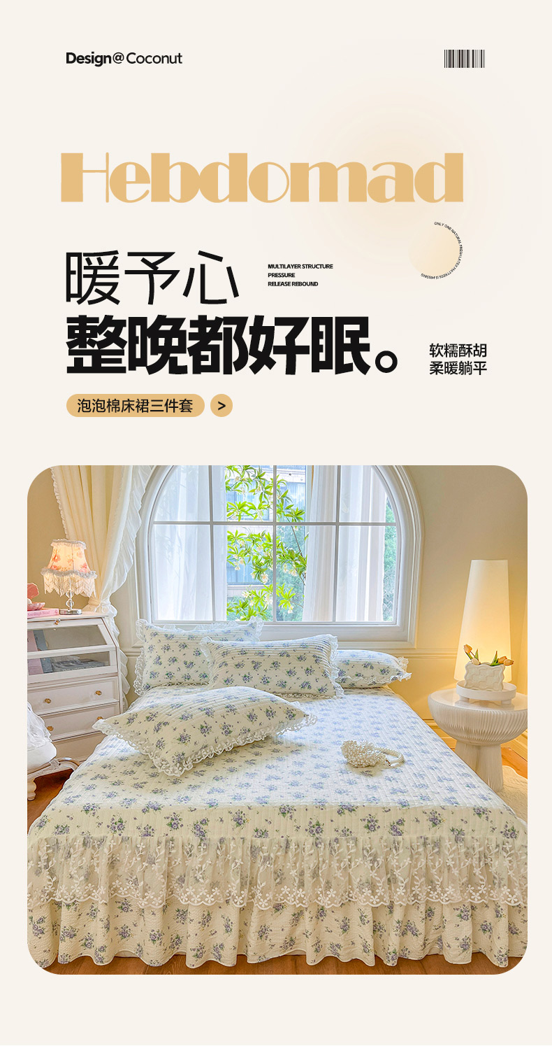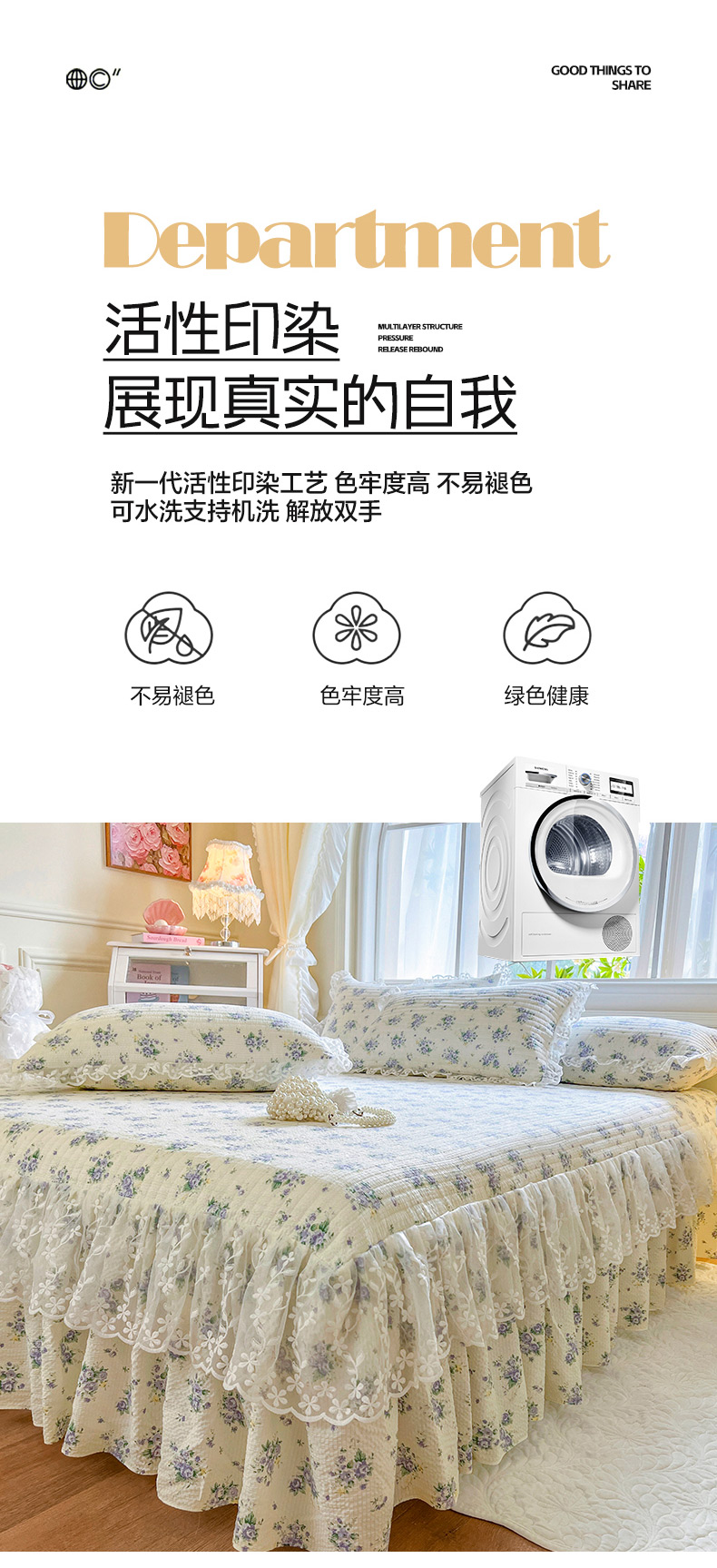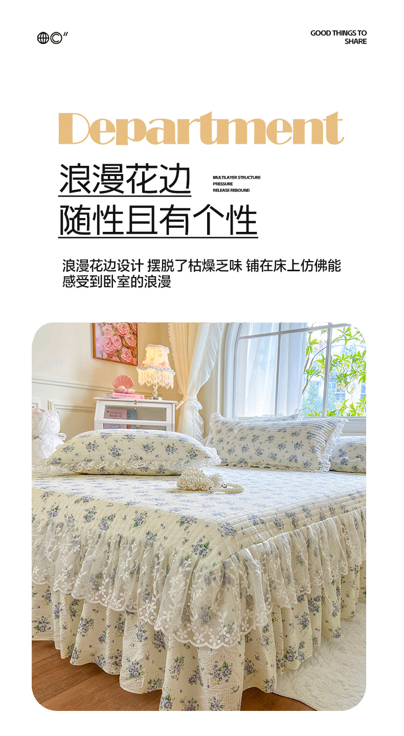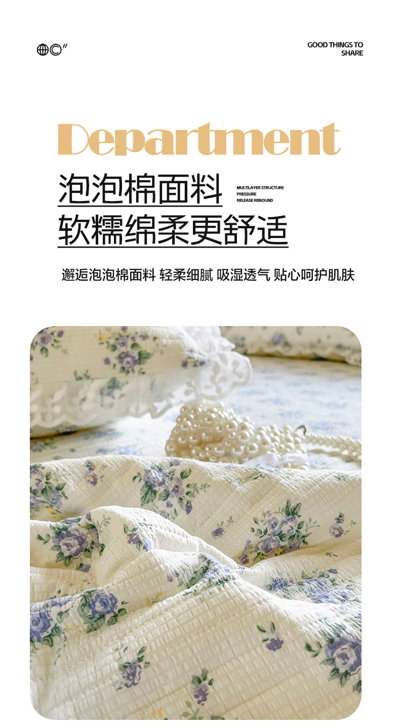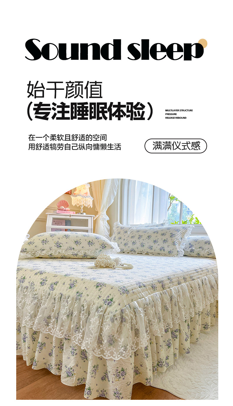 当前位置: 91家纺网 > 商品网购 > 床品套件 > 三件套 > 网红馆(ck家纺) 2025新款泡泡棉花边床裙三件套 紫色恋人