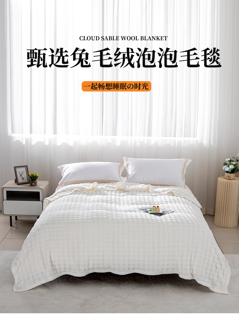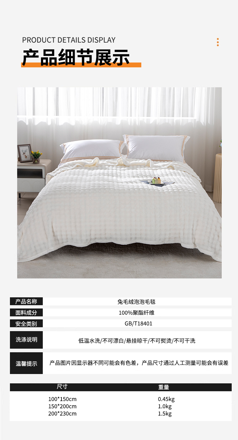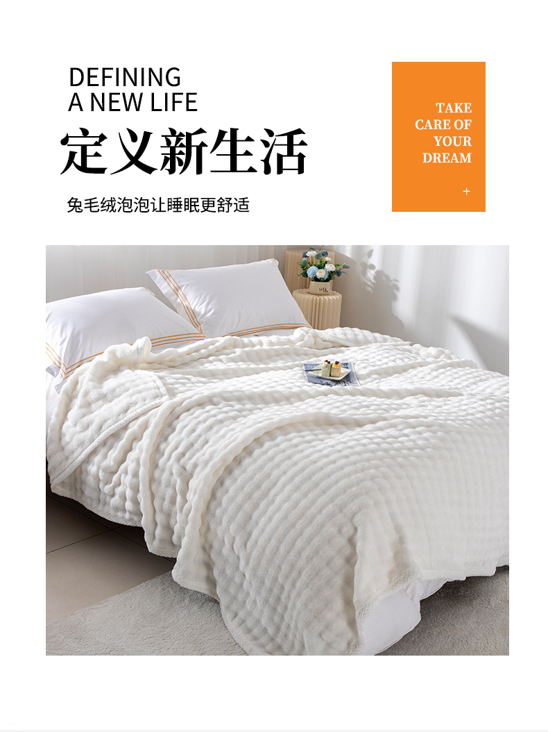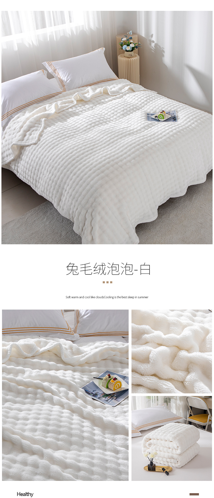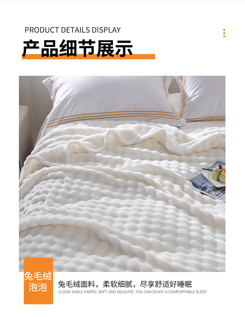 商品名称:2025新款魔法大泡泡绒法兰绒毛毯多功能盖毯 白色