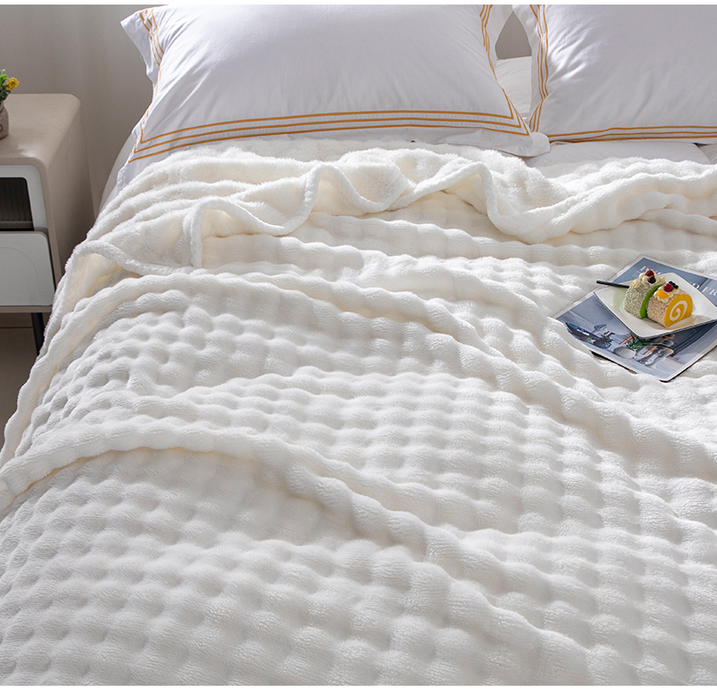 2025新款魔法大泡泡绒法兰绒毛毯多功能盖毯 白色