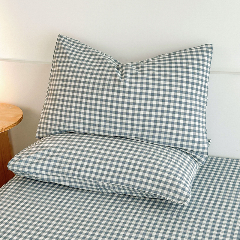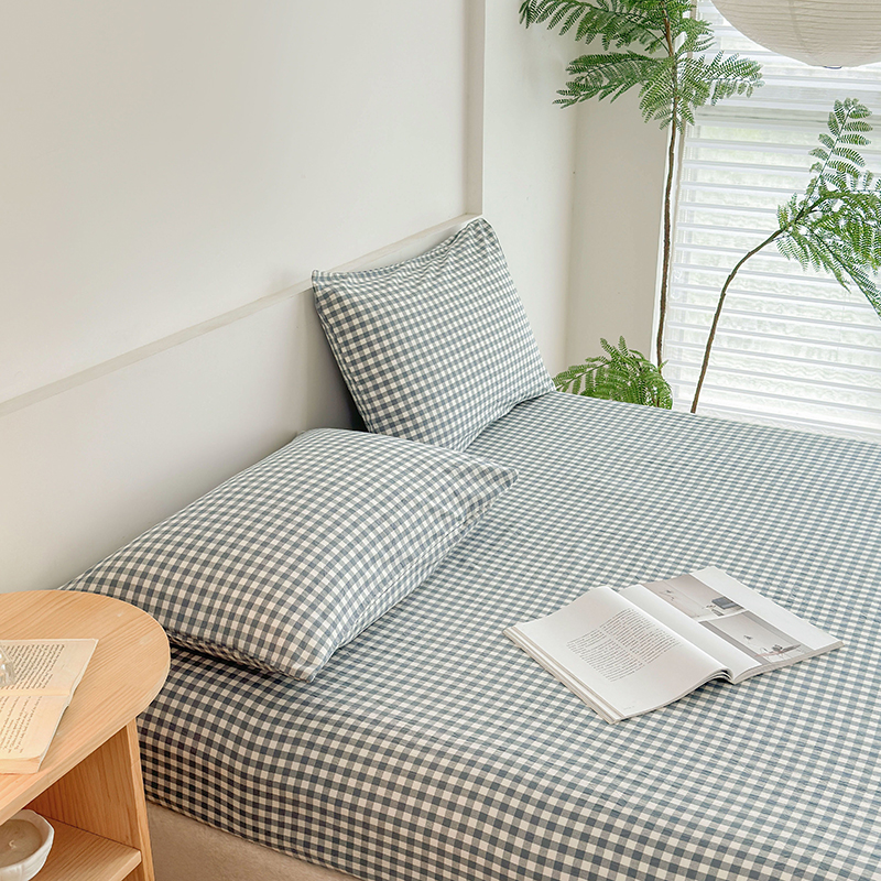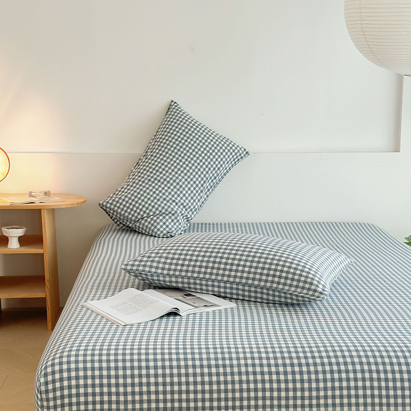 商品名称:慕莎家纺 2024新款亲肤水洗色织床笠三件套 蓝白小格
