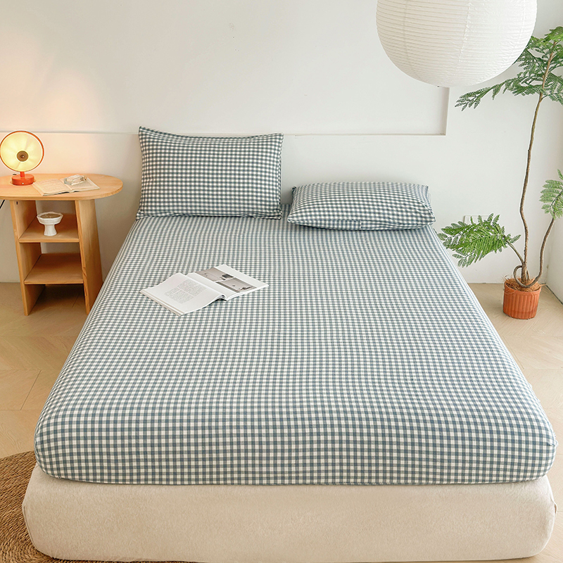 (总)慕莎家纺 2024新款亲肤水洗色织床笠三件套,浅绿小格,蓝白小格,纯色草绿,蓝紫格,蓝黄大格,绿粉小格,嫩粉格,粉白格,奶油粉,天空蓝,粉玉格,绿粉格,高级灰,清新蓝格,蓝粉小格