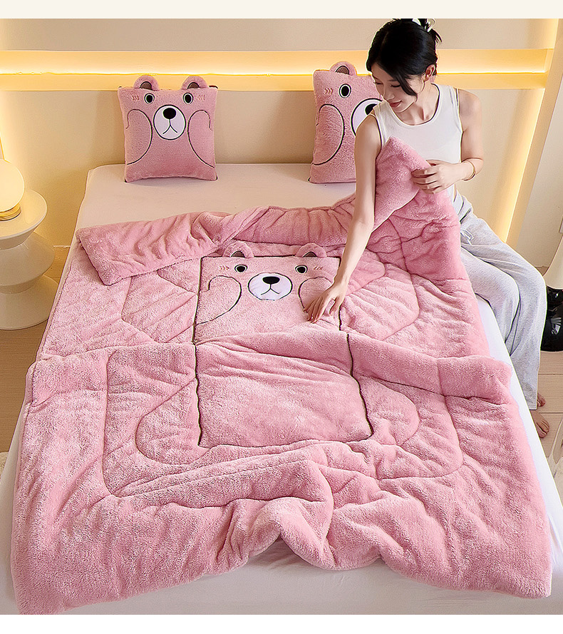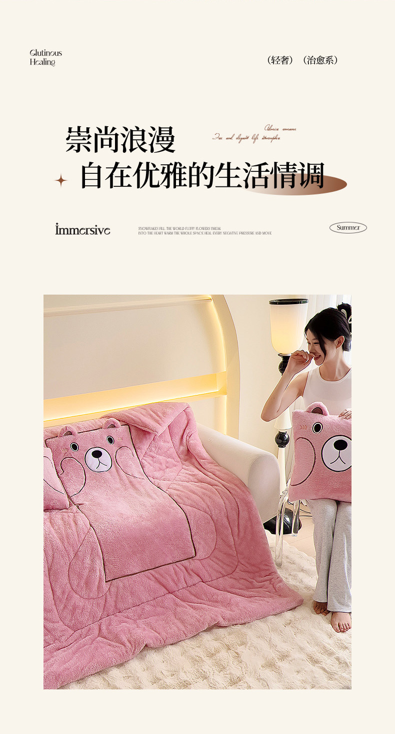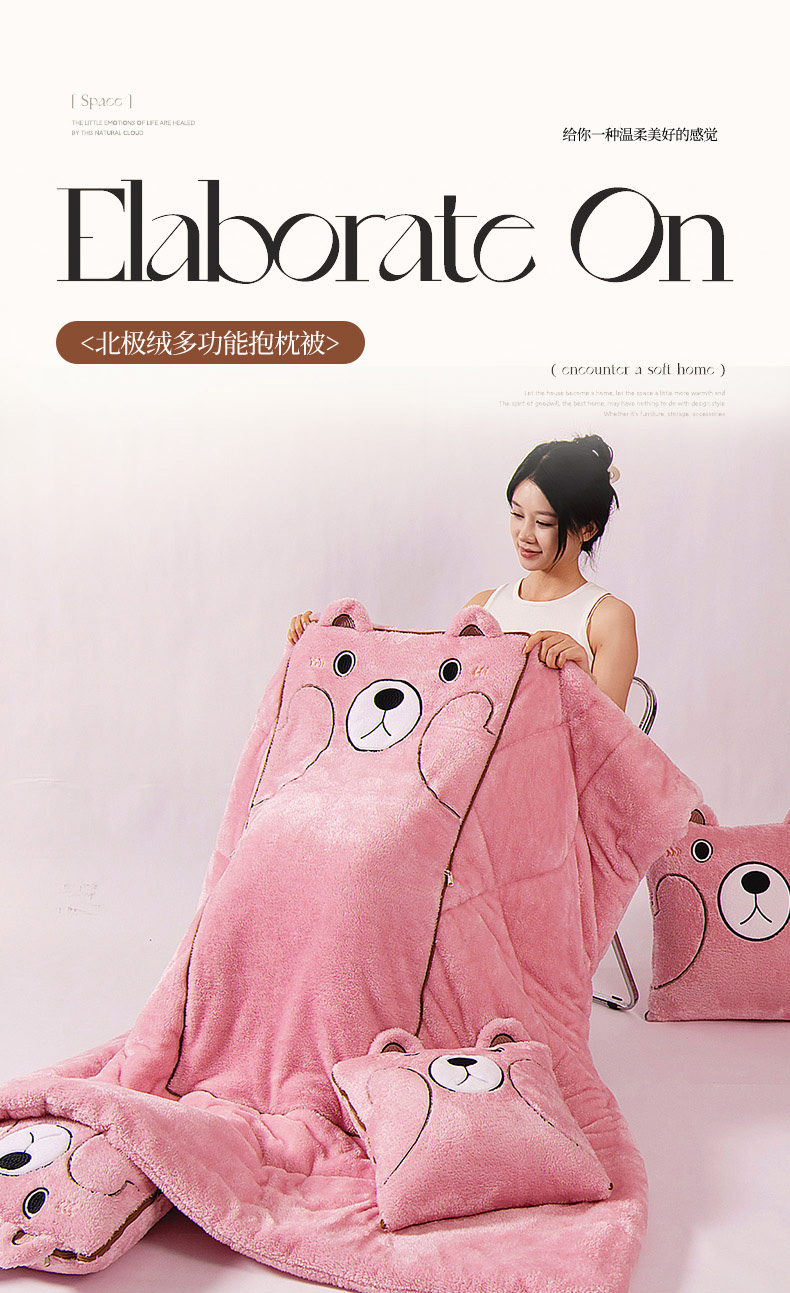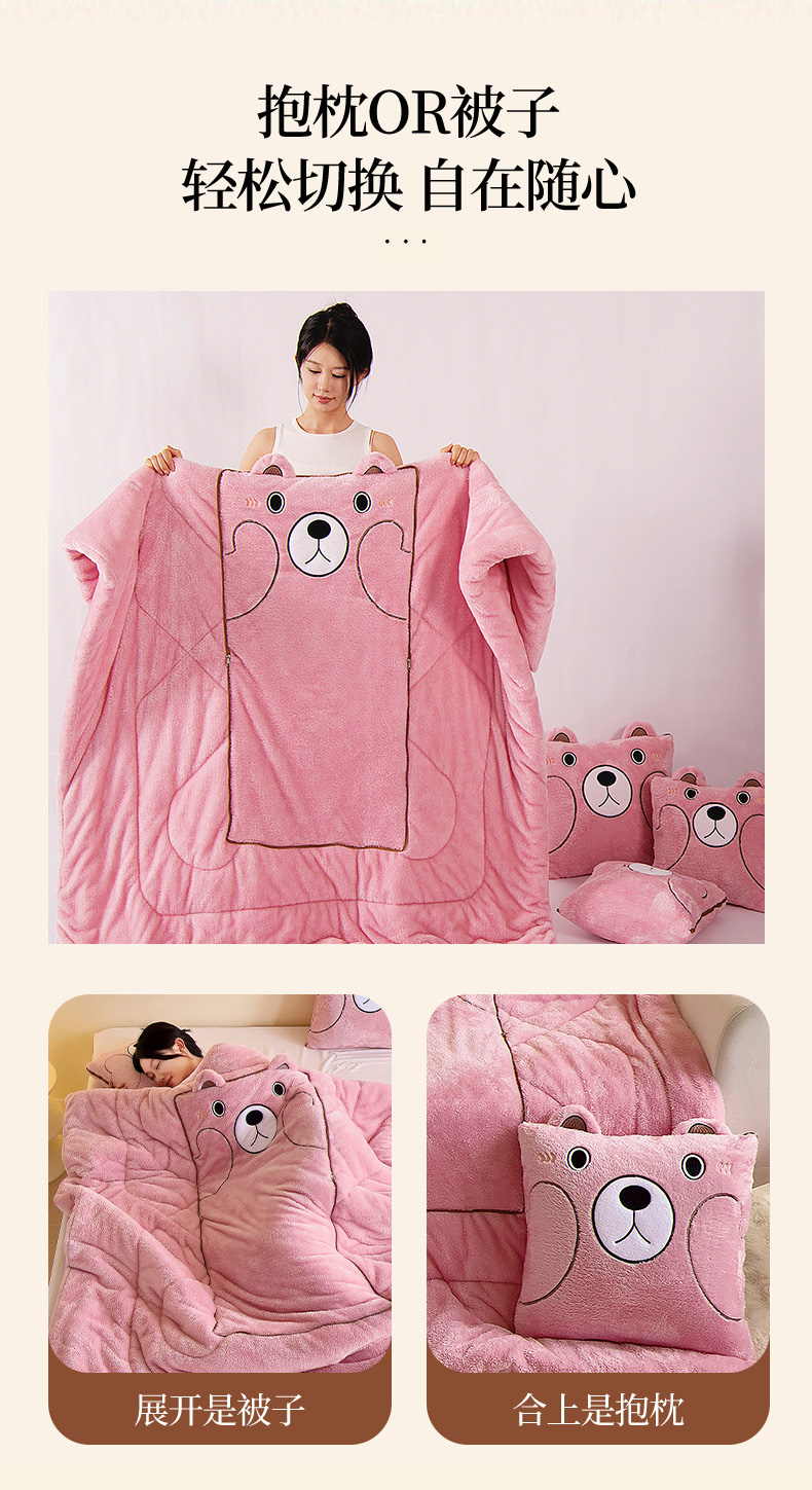 商品名称:阳光依佰抱枕被 2024秋冬新款北极绒乖乖熊多功能抱枕被 乖乖熊-樱花粉
