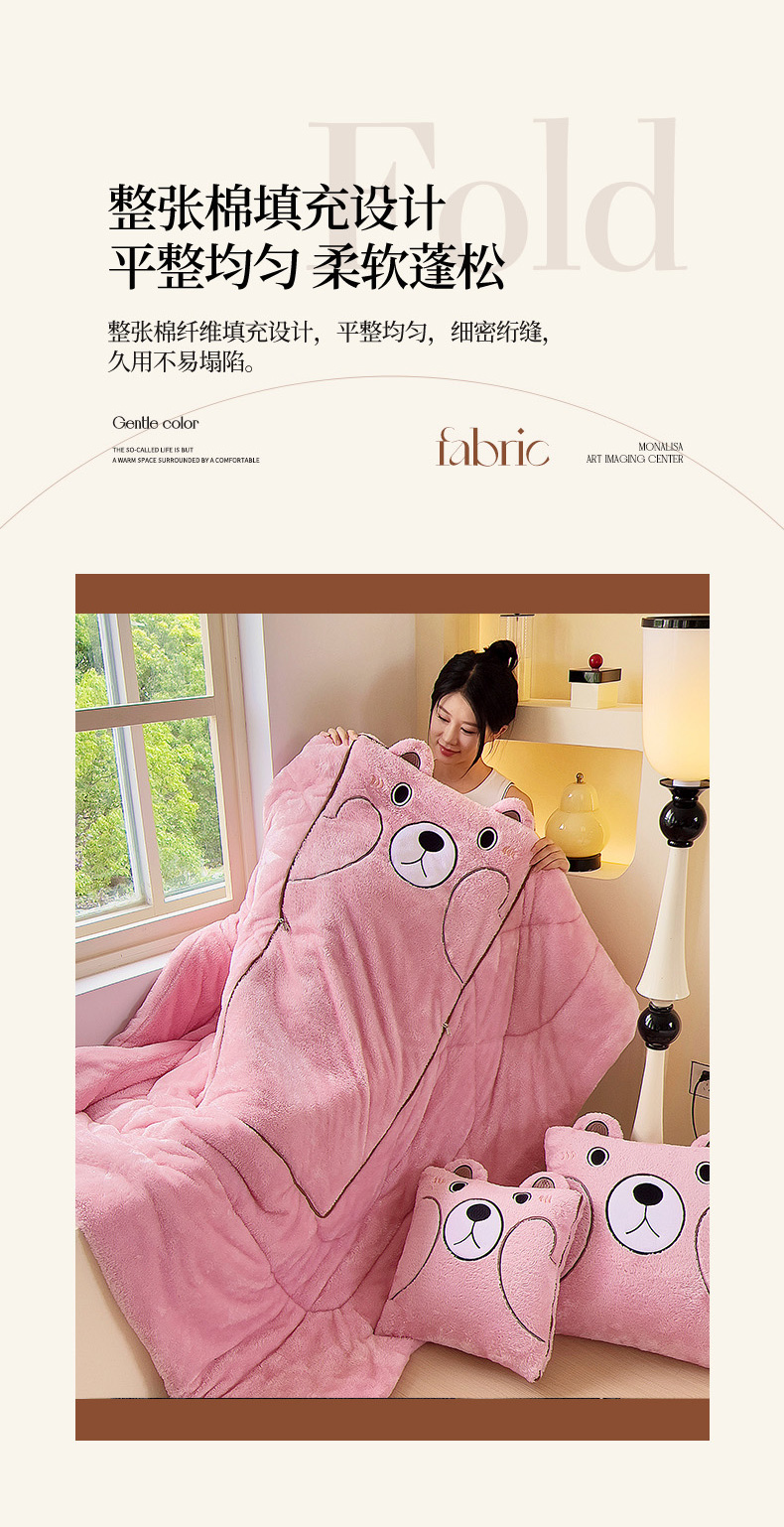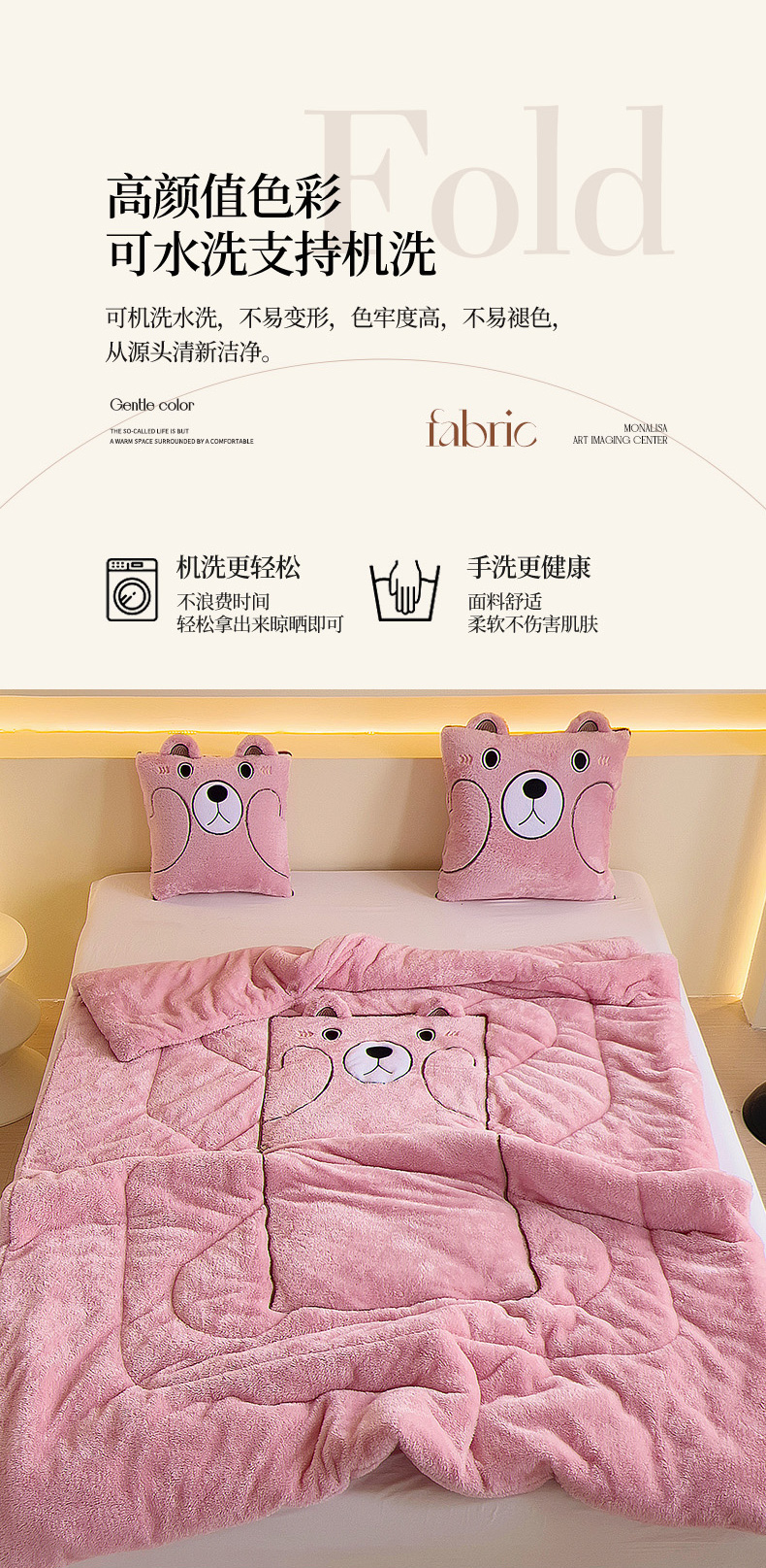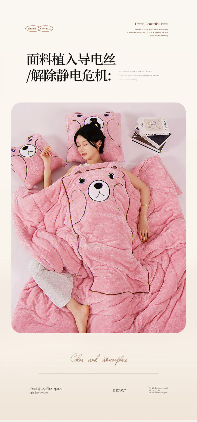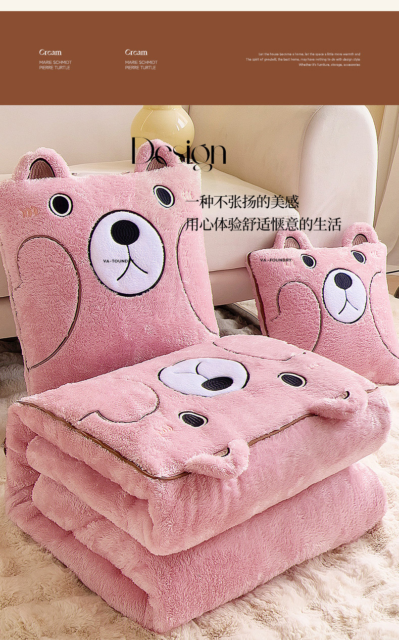 商品名称:阳光依佰抱枕被 2024秋冬新款北极绒乖乖熊多功能抱枕被 乖乖熊-樱花粉