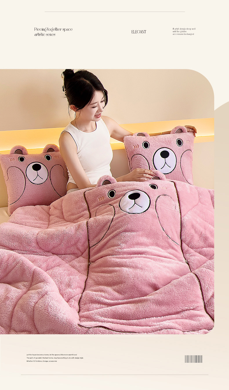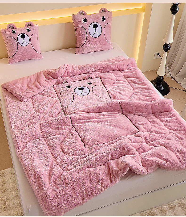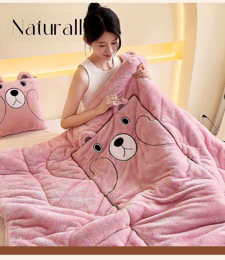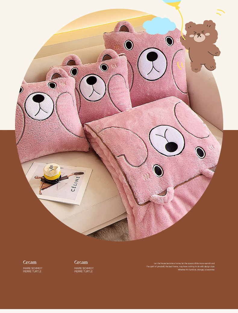 阳光依佰抱枕被 2024秋冬新款北极绒乖乖熊多功能抱枕被 乖乖熊-樱花粉