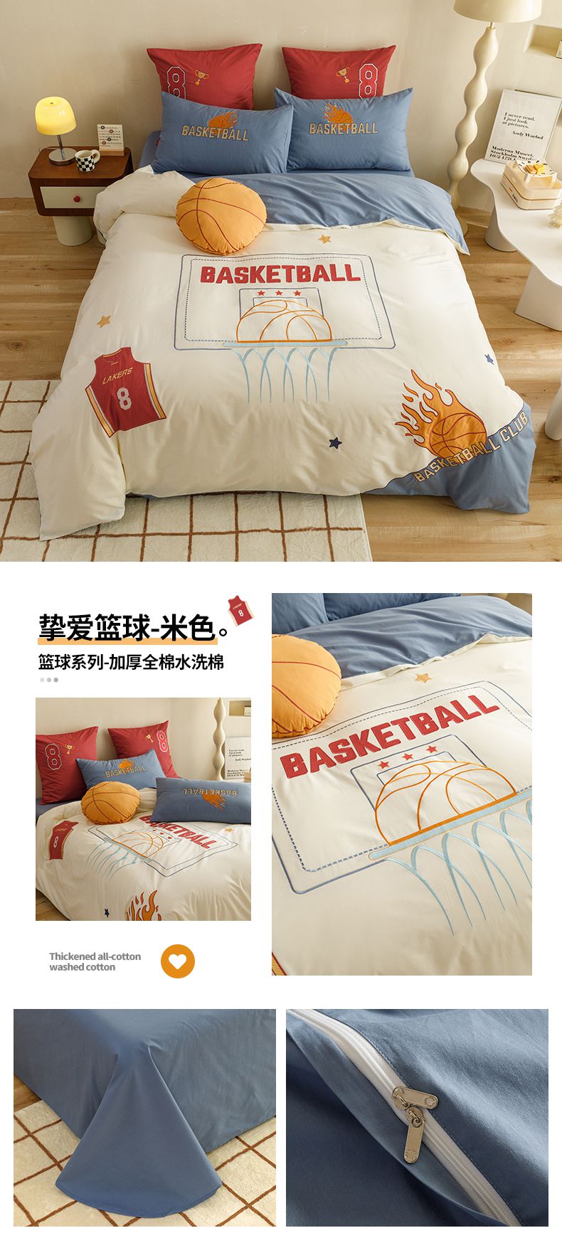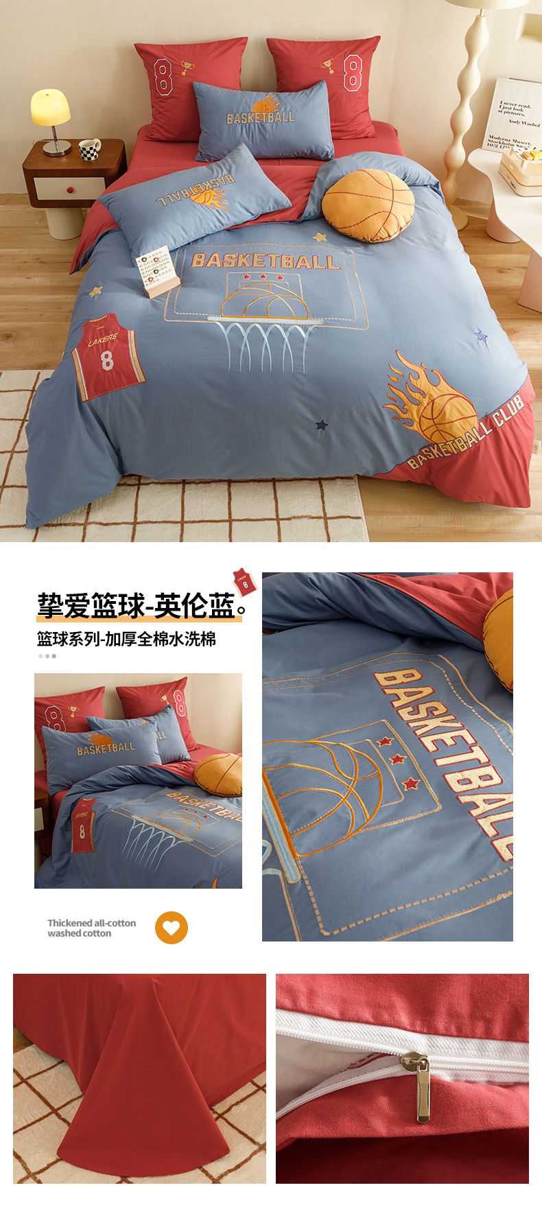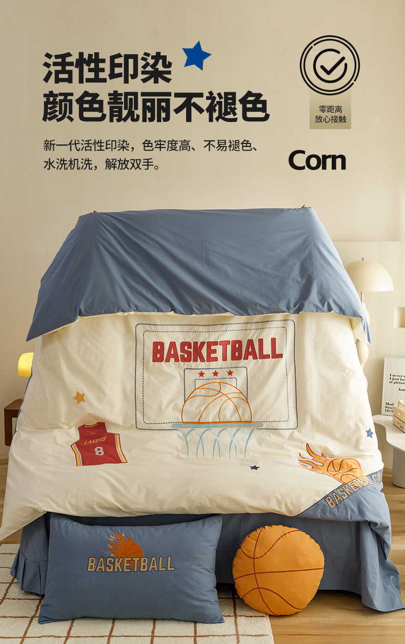 当前位置: 91家纺网 > 商品网购 > 床品套件 > 四件套 > 水洗棉四件套 > (总)绒梦里2025款A类纯棉水洗棉贴布绣四件套全棉卡通儿童三件套上下铺床套件--篮球系列