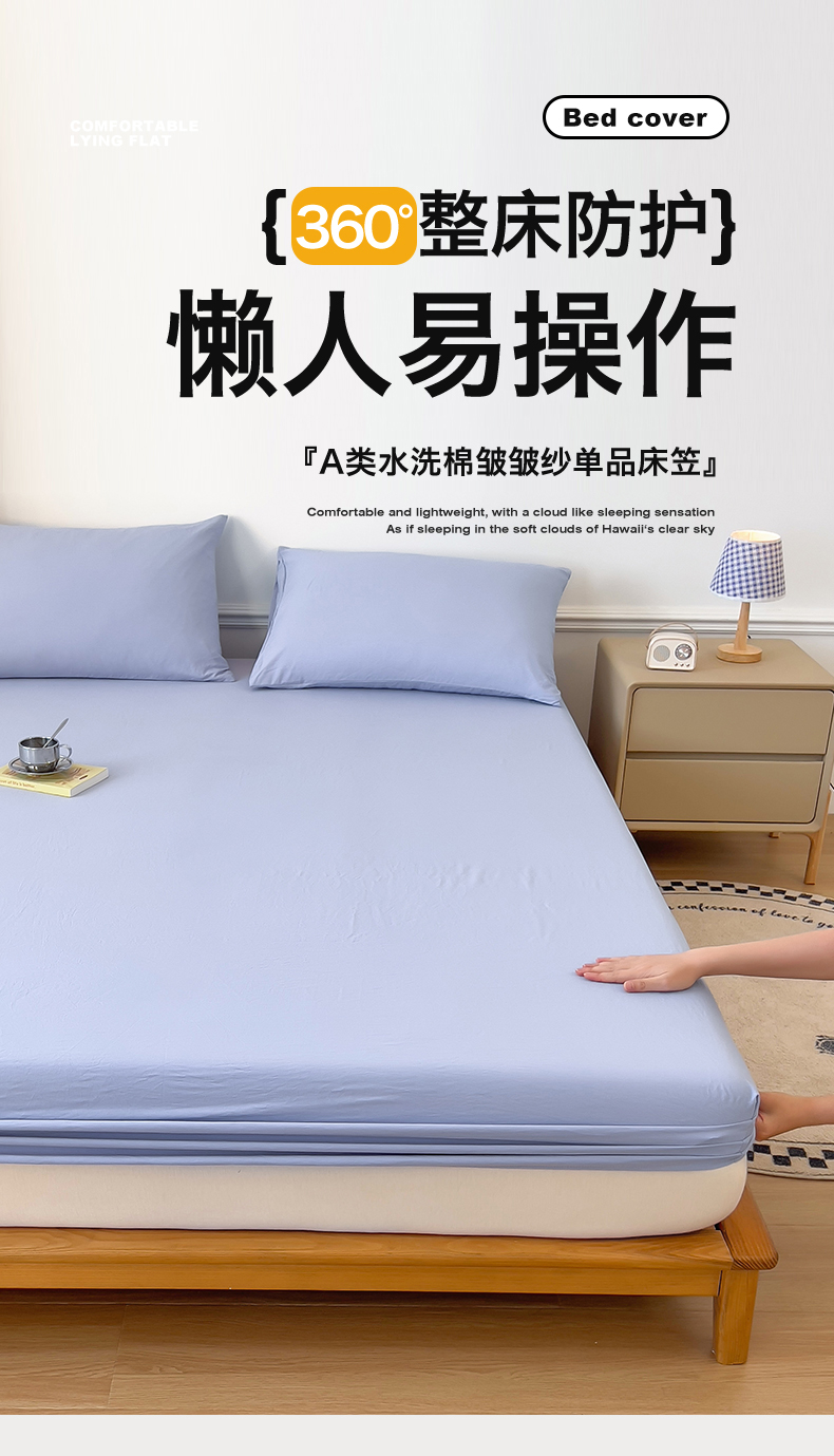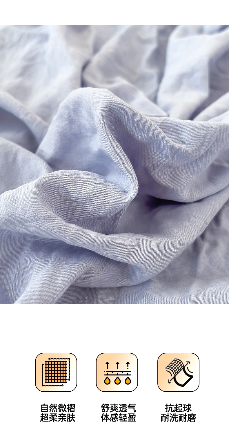 • 91家纺网 家纺一手货源 找家纺 多品 2024新款水洗棉皱皱纱单品床笠 香芋紫