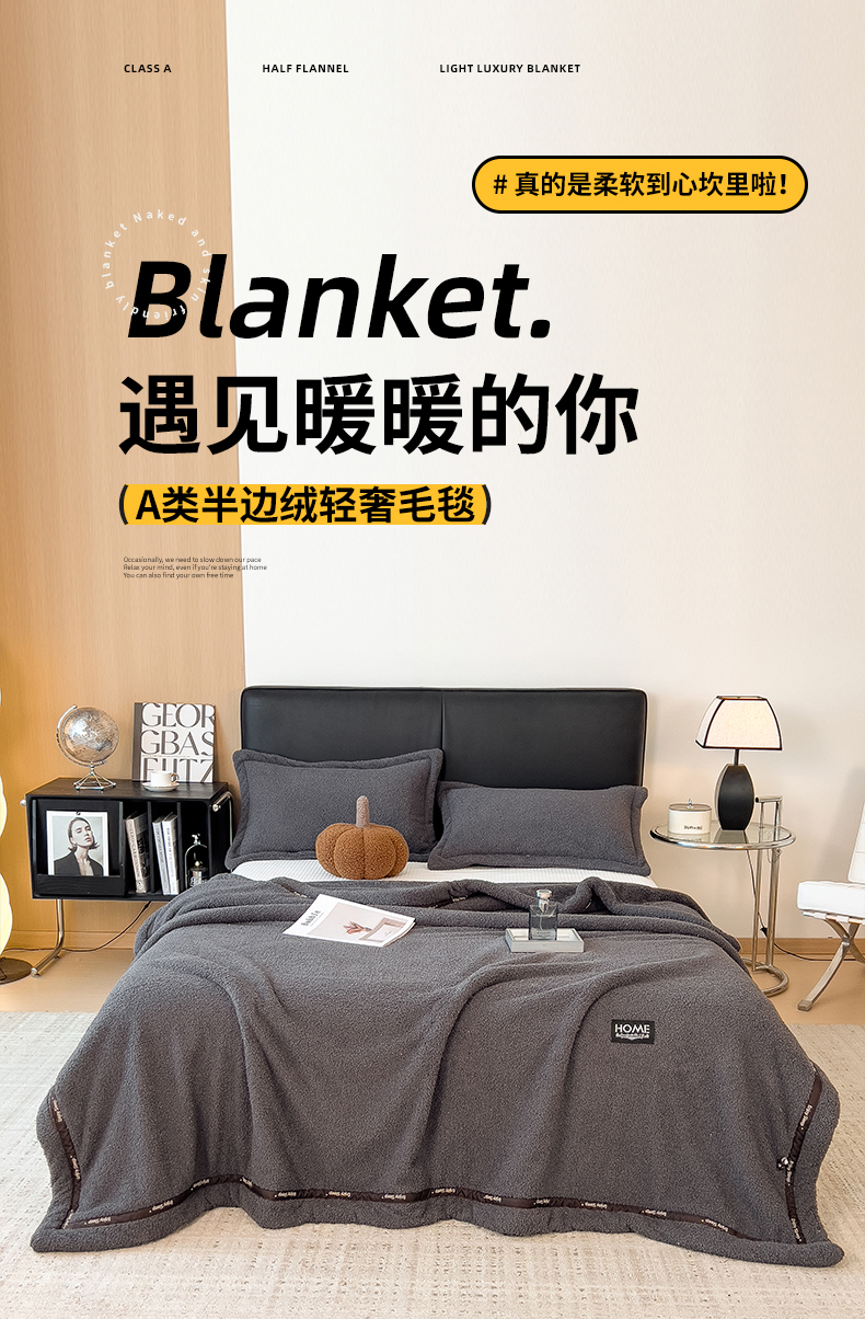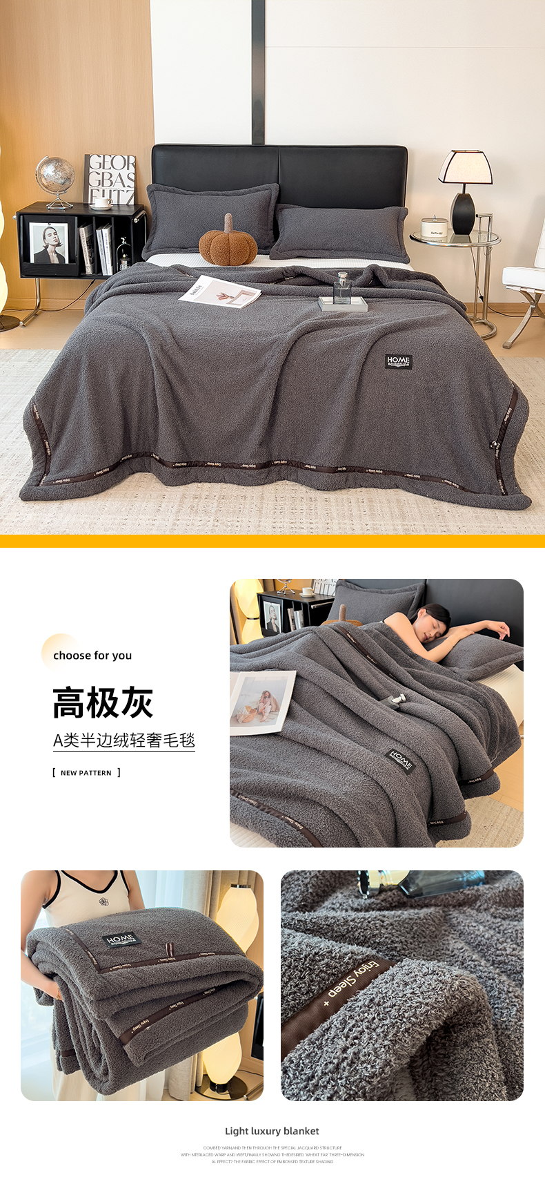 当前位置: 91家纺网 > 商品网购 > 毛毯休闲毯绒毯 > 毛毯 > 慕木家纺 2025新款纯色A类轻奢半边绒多功能毛毯直播爆款 高极灰