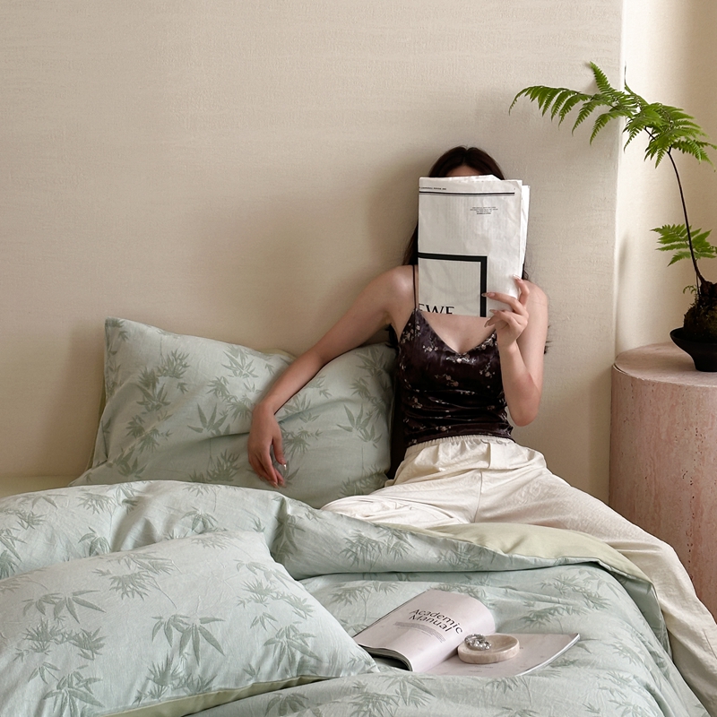 梦享生活家居 2024新款全棉A类色织大提花四件套 提花竹韵绿