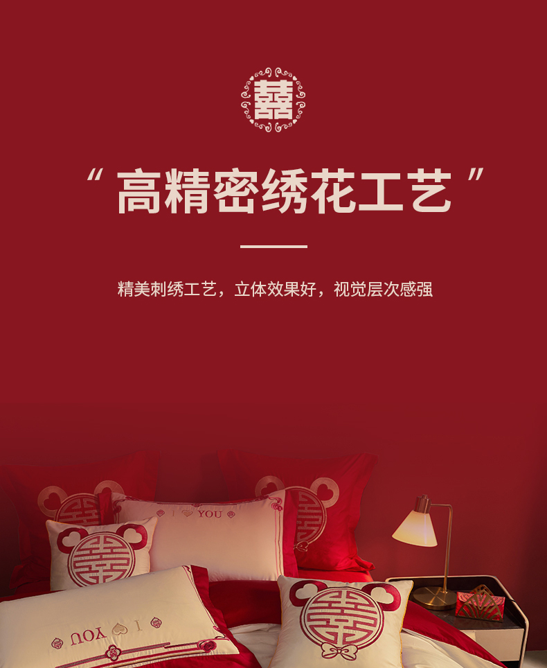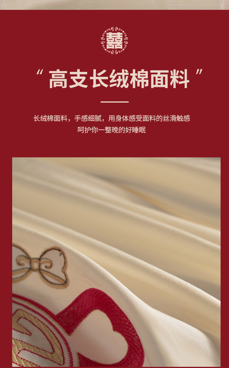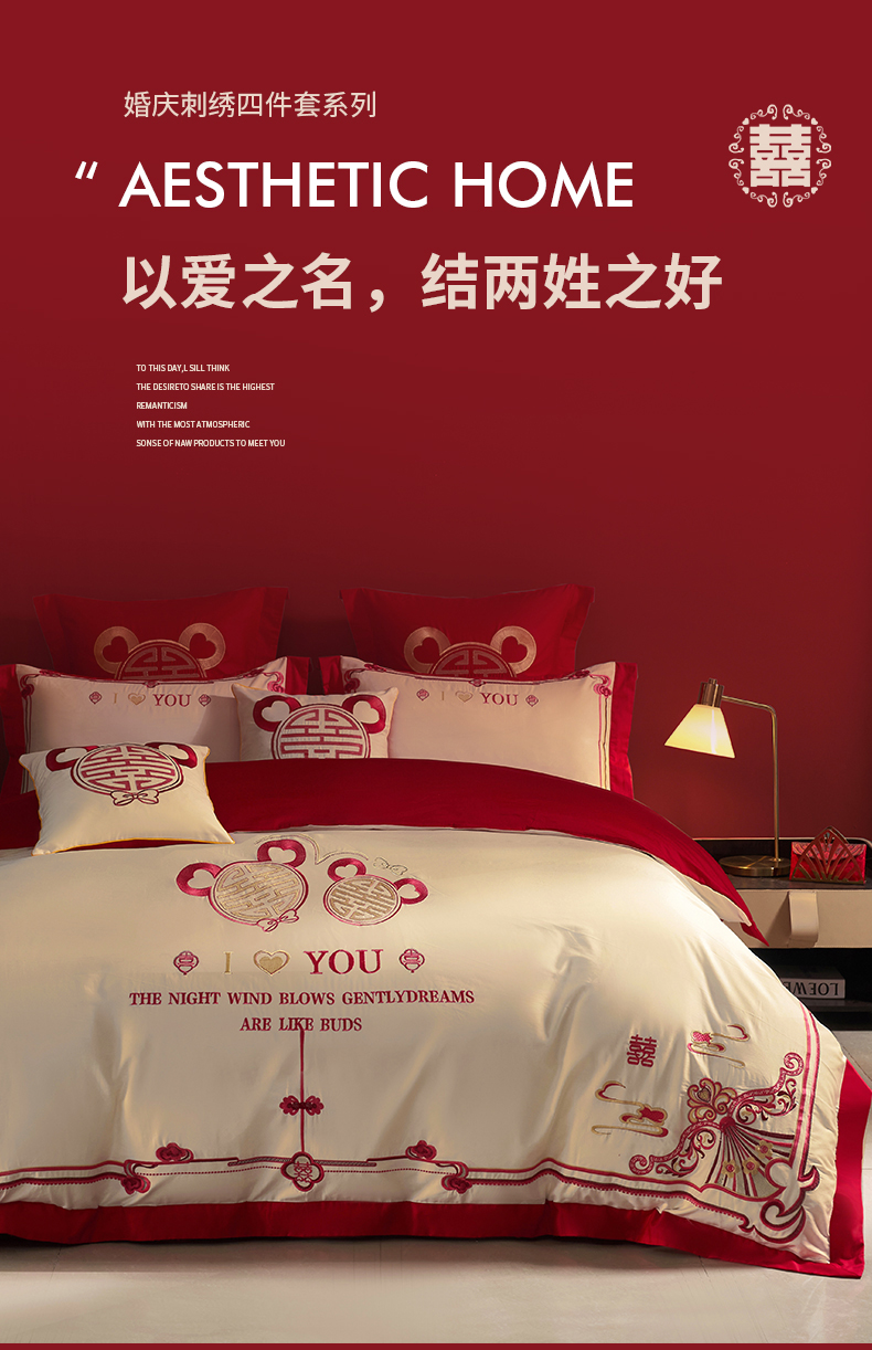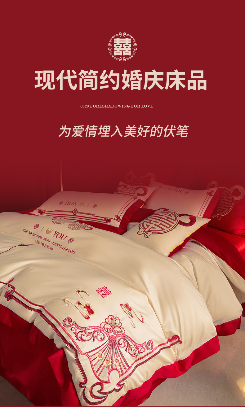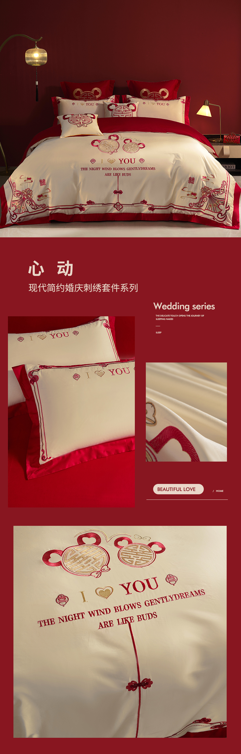 当前位置: 91家纺网 > 商品网购 > 床品套件 > 四件套 > 婚庆四件套 > 玉雅家纺 2025新款60支长绒棉时尚拼色浮雕刺绣婚庆四件套 心动-拍摄2